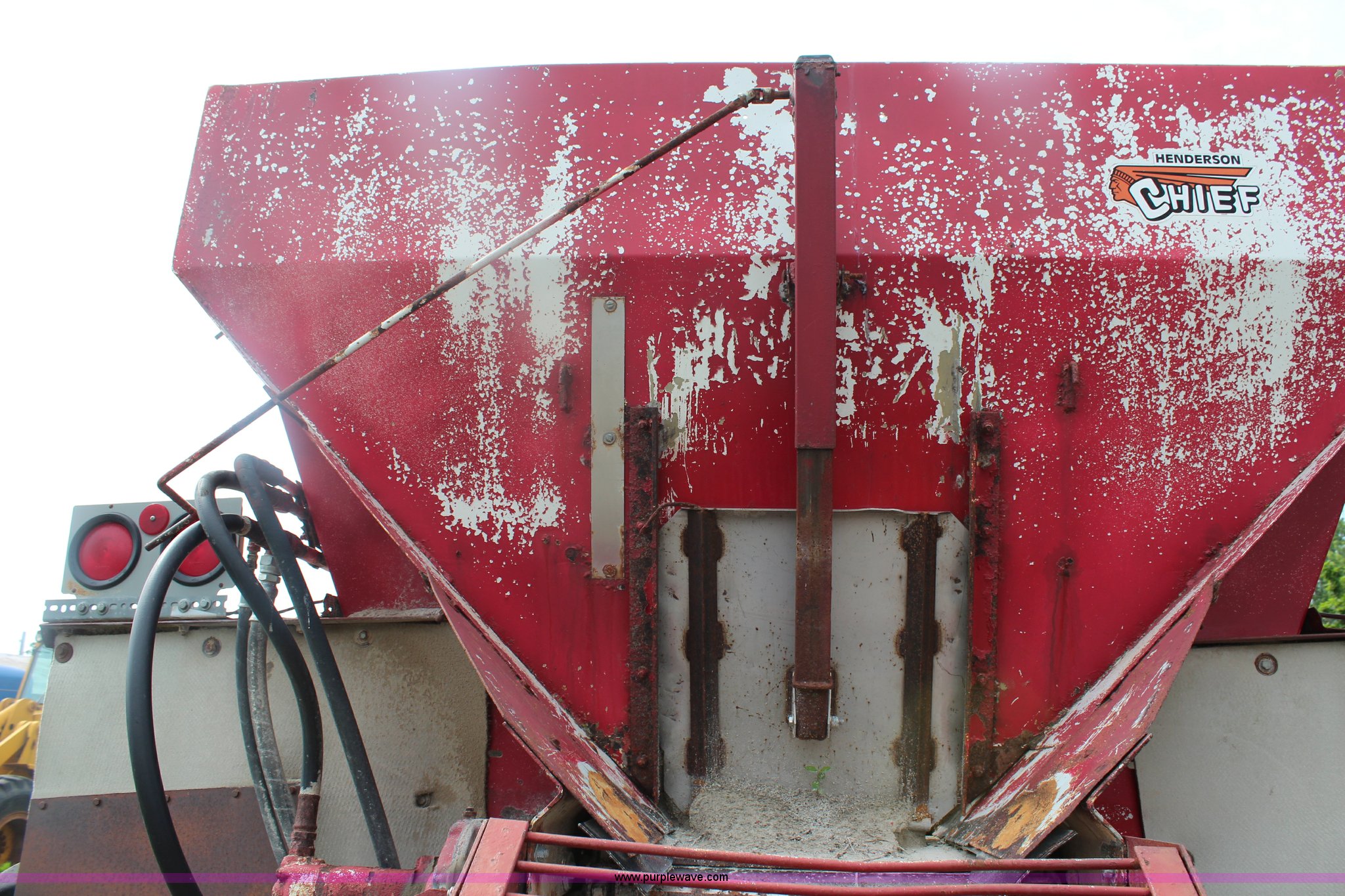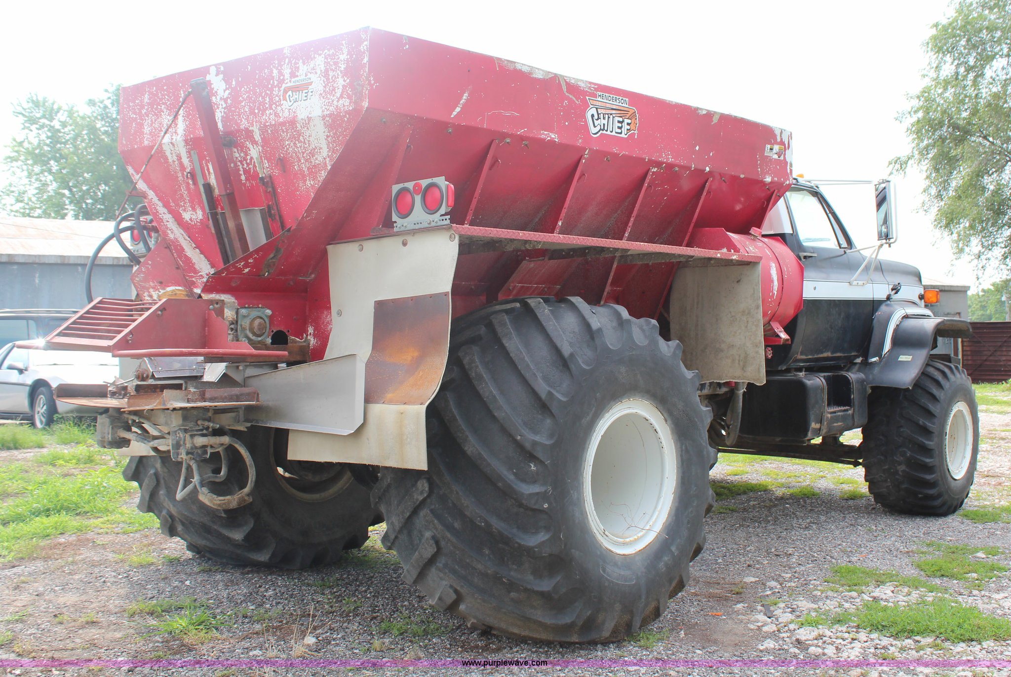 1981 Chevrolet Kodiak floater spreader truck. 96,448 miles on odometer, Detroit Diesel V8 diesel engine, Five speed manual transmission, Two speed rear end, Heat, AM/FM/cassette, Air suspension seat, E-Z Guide 250 light bar, Henderson 12' spreader bed Dual spinners, PTO, Hydraulic brakes, 48x25.00-20 front tires, 66x43.00-25 rear tires, Cracked windshield. 1GBL7D1G5BV112704. Elwood, KS 66024