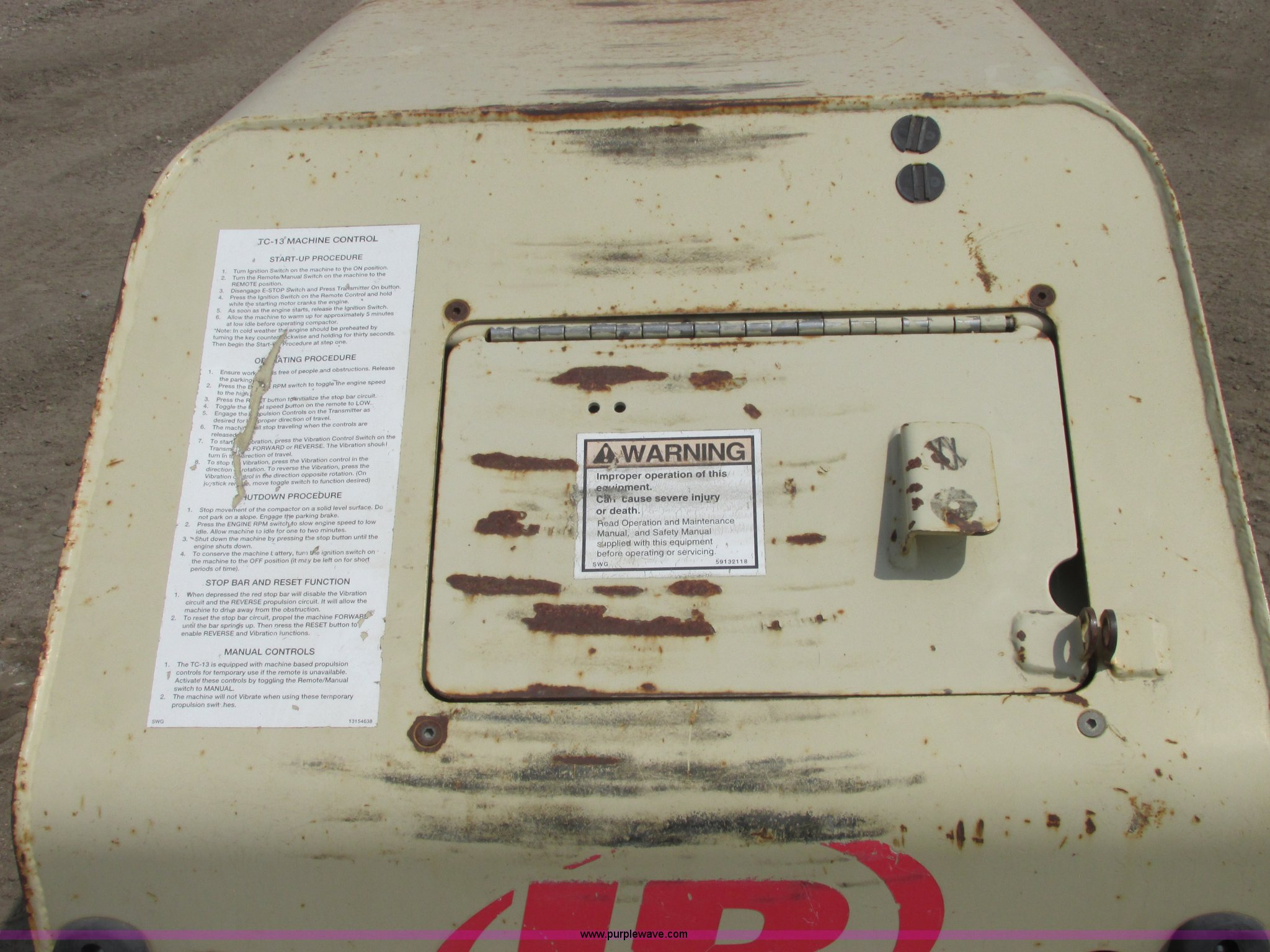 Purple Wave is selling a used Walk Behind Compactor in North Dakota. This item is a Ingersoll Rand TC-13 twin drum trench compactor with the following: 681 hours on meter, Kubota diesel engine, Liquid cooled, Remote control, 33.5" drum