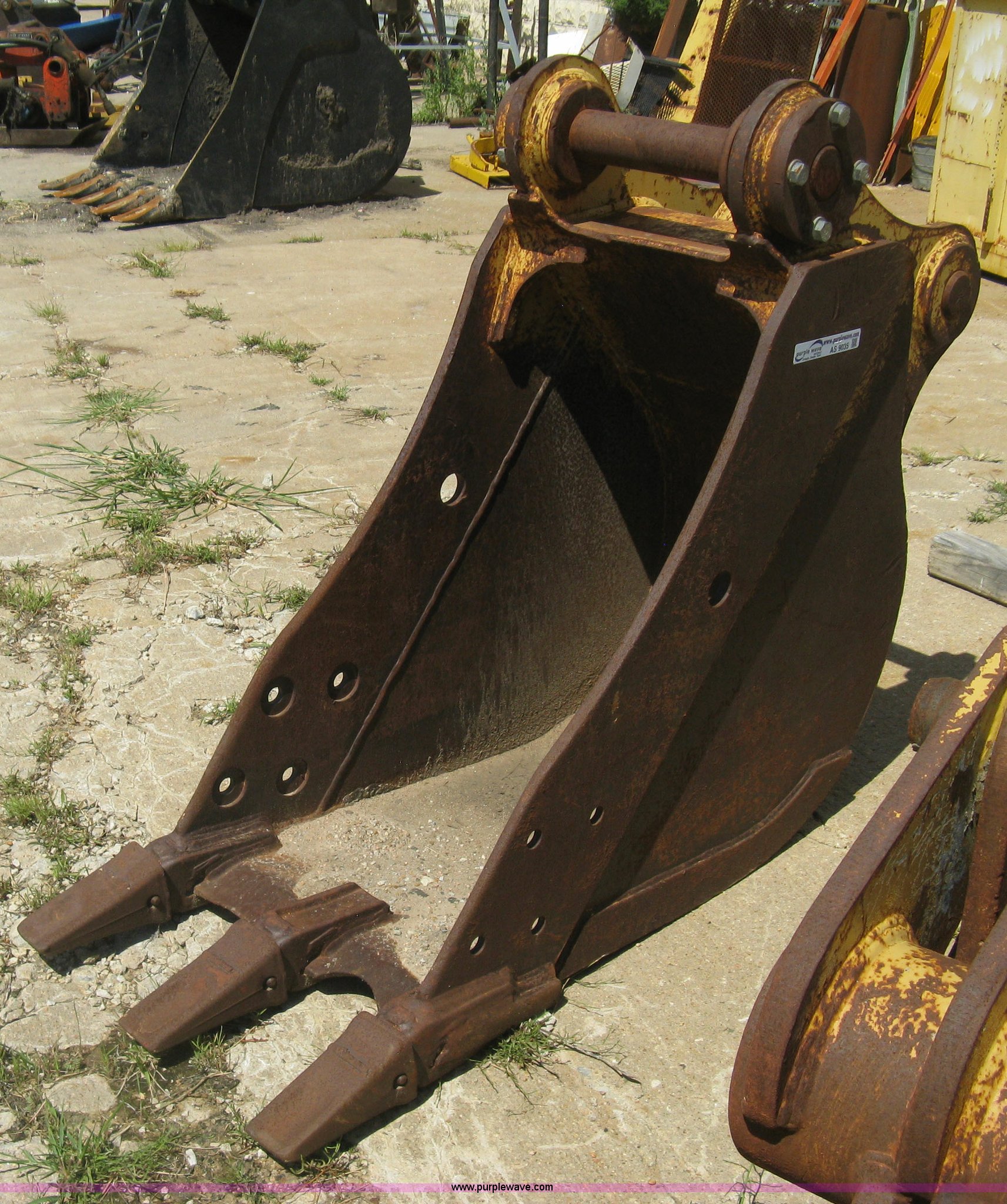 Purple Wave is selling a used Excavator Attach. in Kansas. This item is a 24"W excavator bucket with the following: Three weld-on teeth, Excavator quick attach, Fits JRB quick coupler