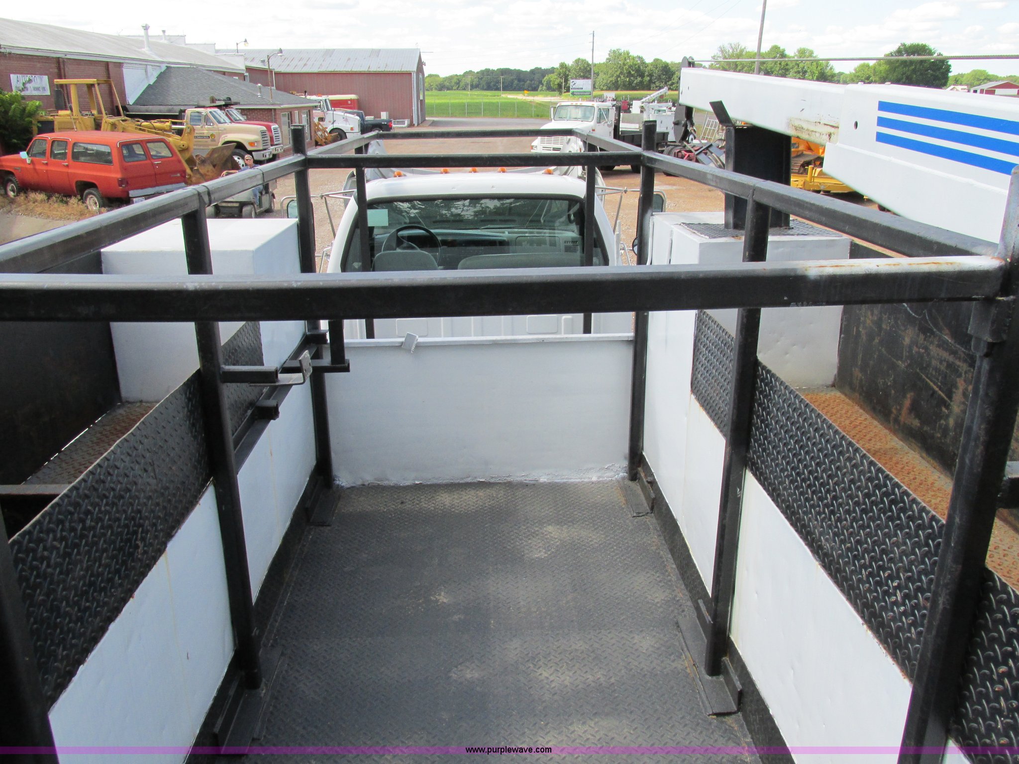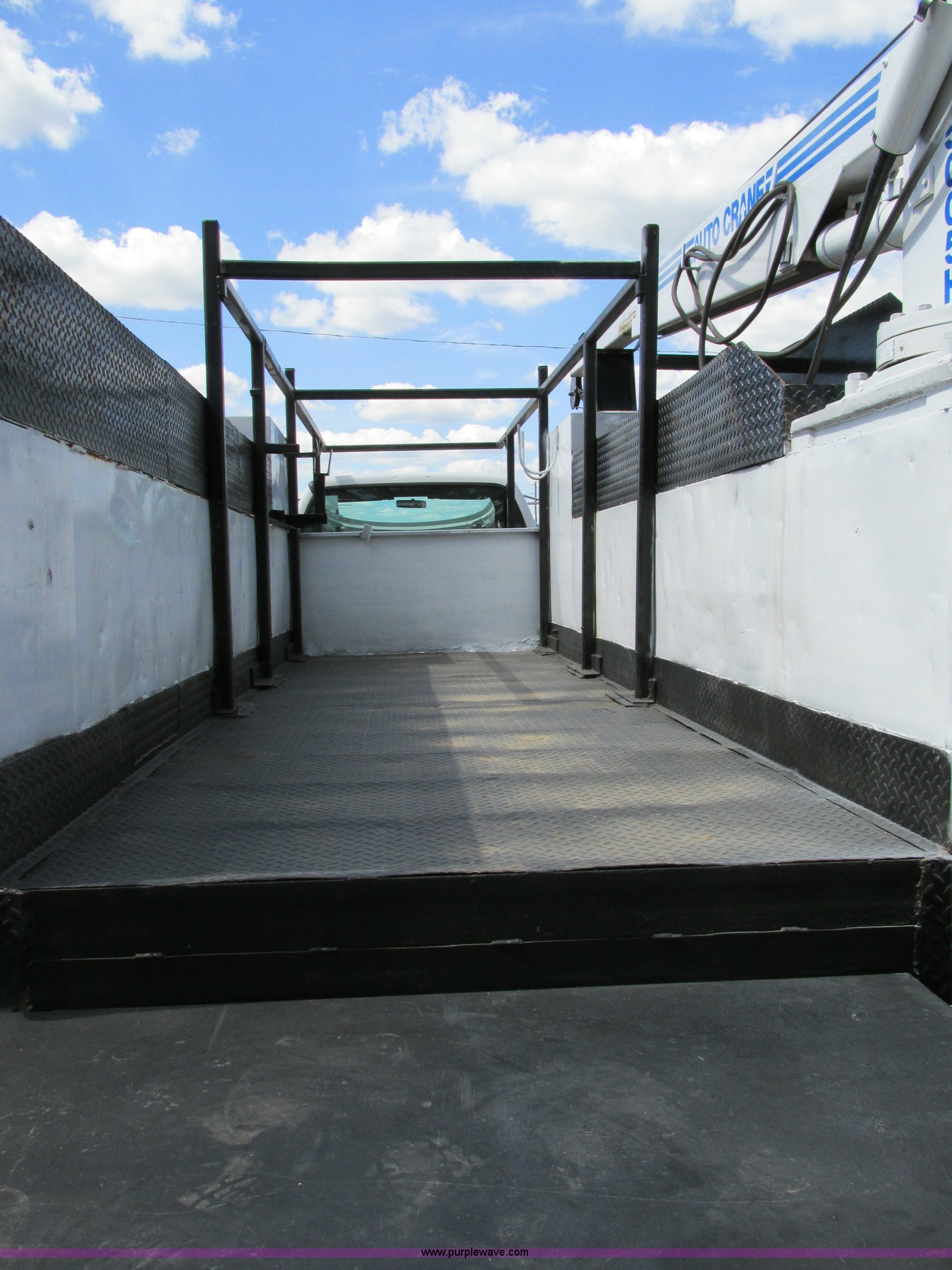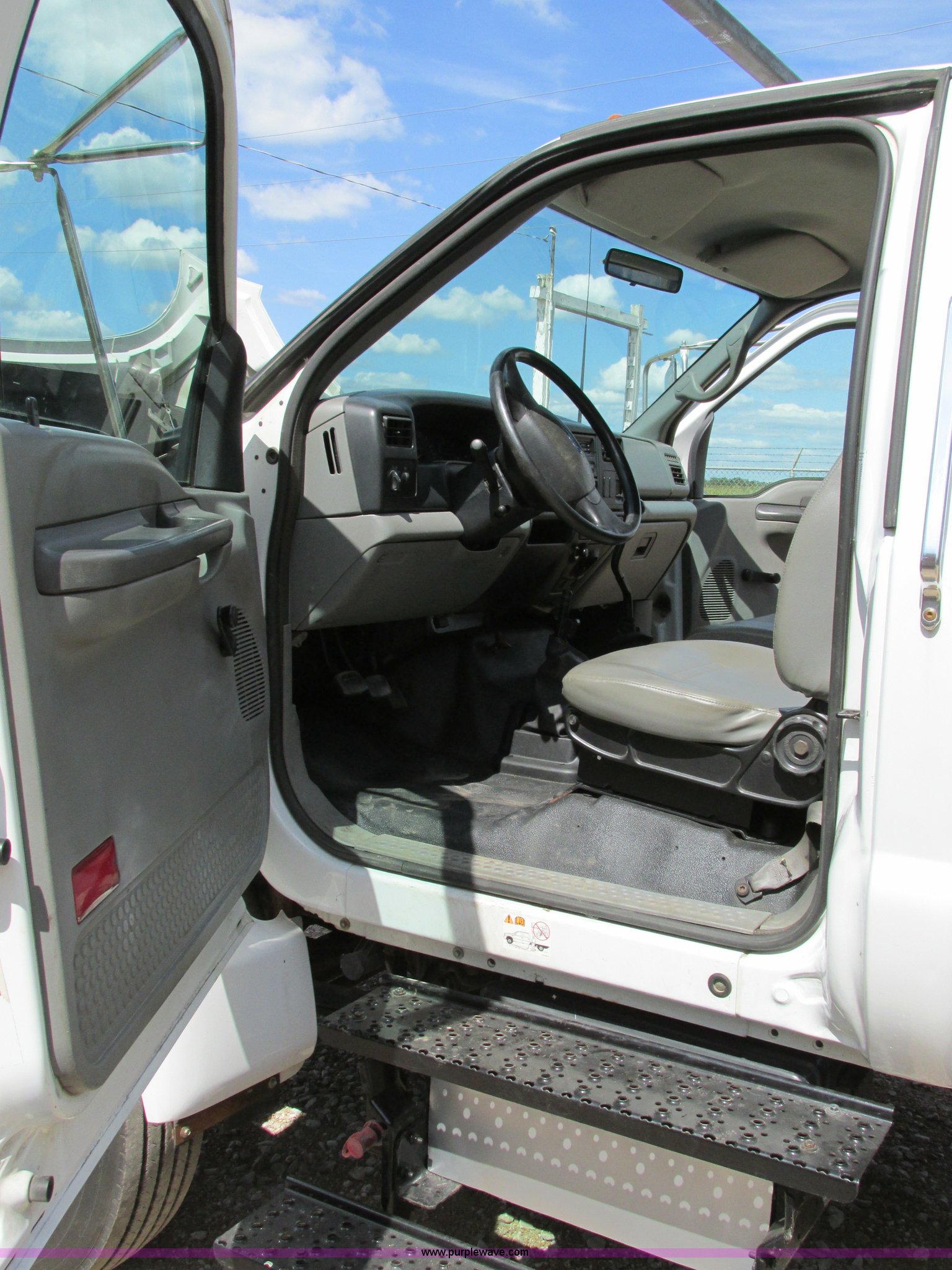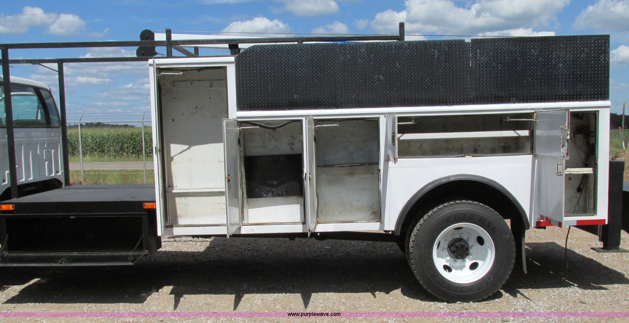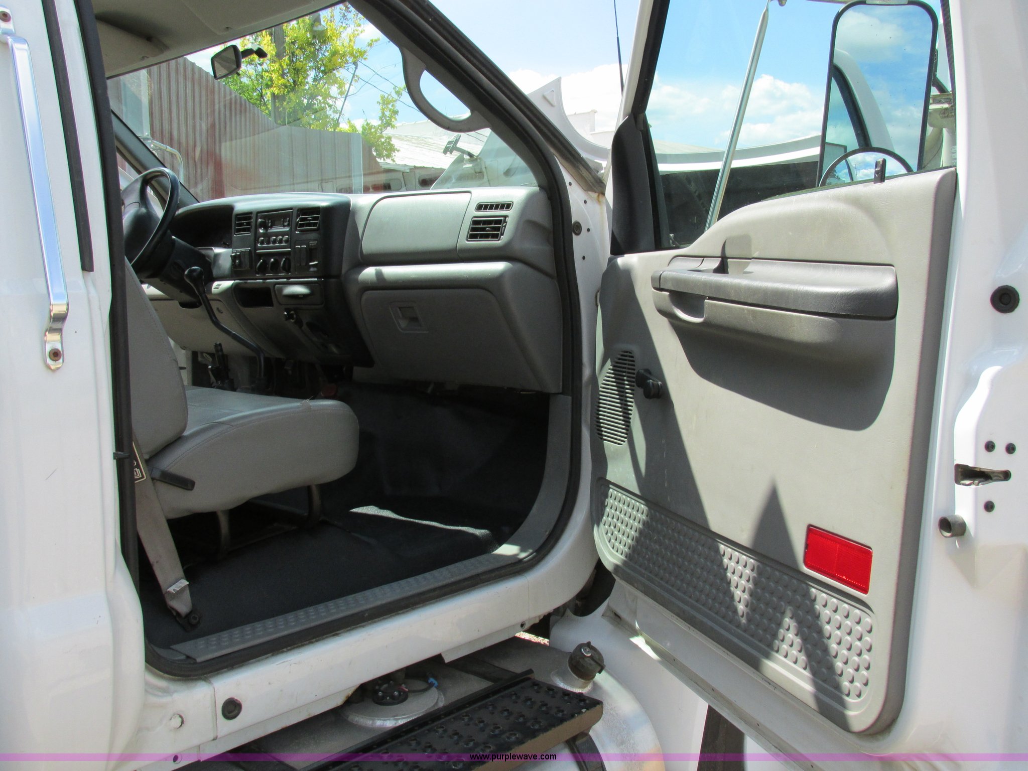 Purple Wave is selling a used Service Truck in Illinois. This item is a 2004 Ford F650 Super Duty XL service truck with crane with the following: 95,465 actual miles, International VT365 6.0L V8 turbo diesel engine, 230 HP, Six speed manual transmission, AC and heat, Tilt, Cruise, AM/FM, Manual windows and locks, Vinyl interior, PTO, Service body, (10) storage compartment, Top side saddle box, Open top, 16'4"L x 55.5"W overhead utility rack, (2) 60" x 17" x 17" under bed boxes, 77" x 66" platform, Steel floor,, Auto Crane 500SH crane, 360 degree rotation, 20'L tethered remote, Serial 44941056-1, Hydraulic outriggers, 98" x 28" rear work platform, Step bumper with vise, 54 gallon fuel tank, Mud flaps, Spring suspension, Hydraulic brakes, Goodyear 10R22.5 tires