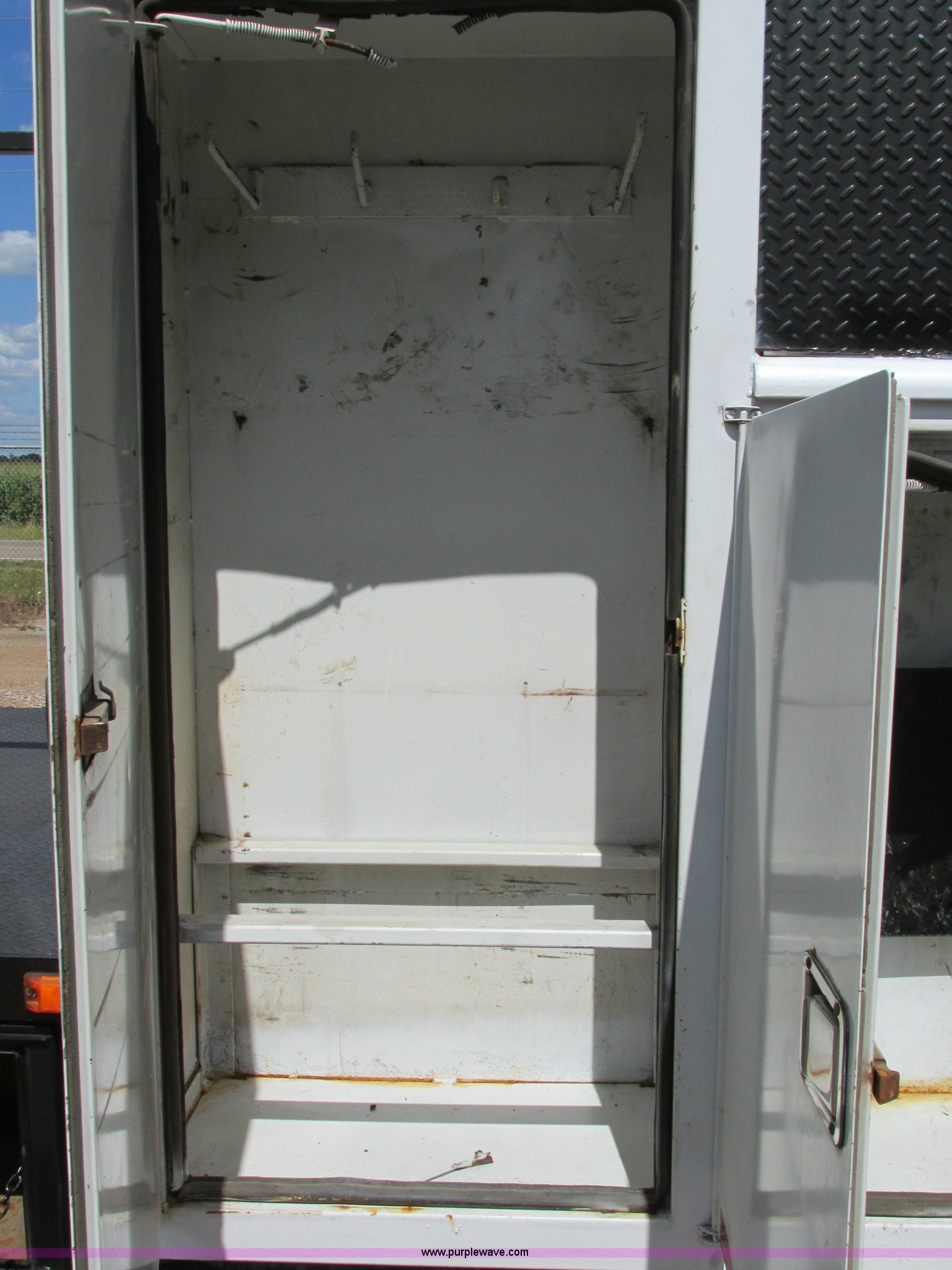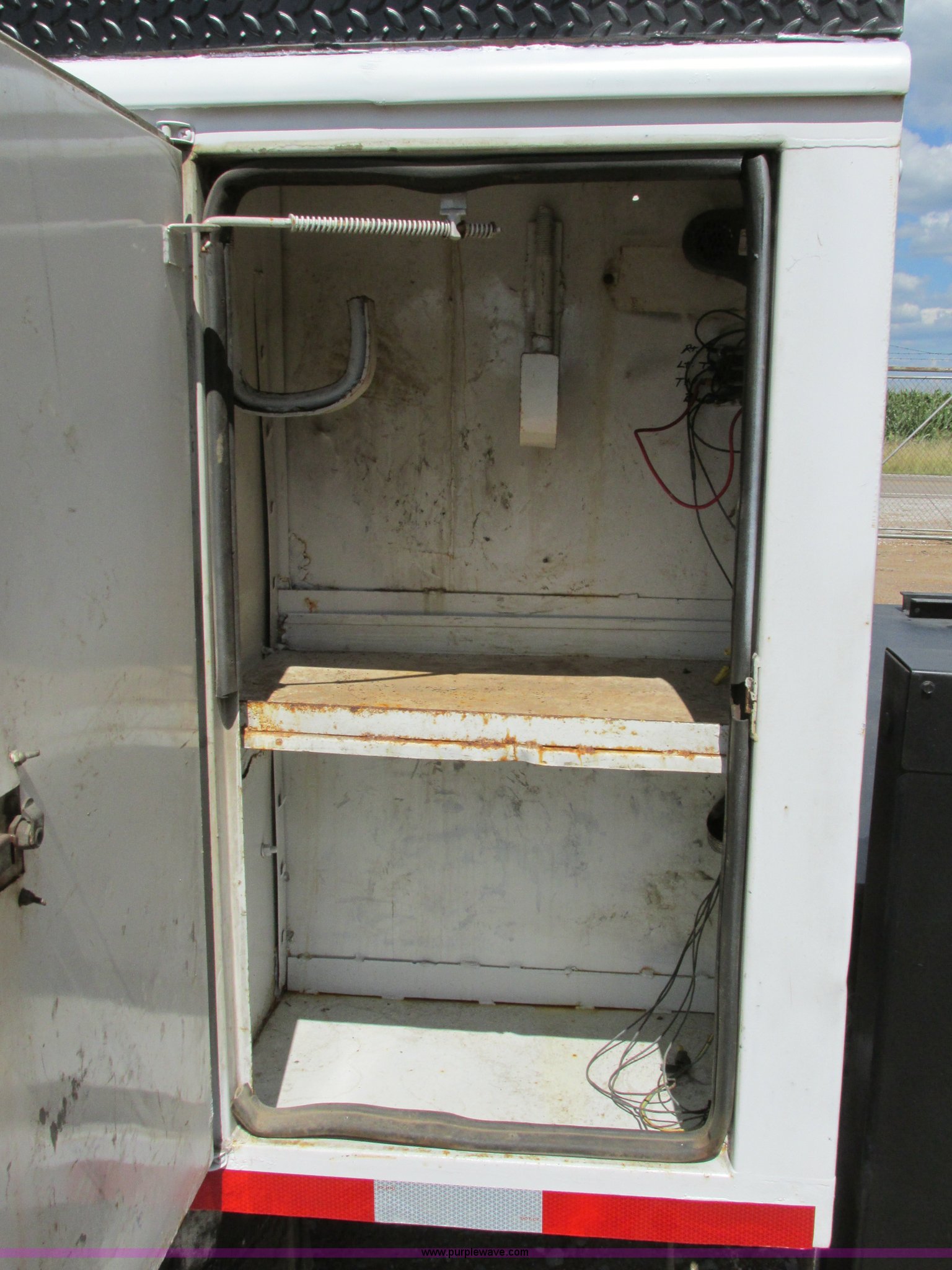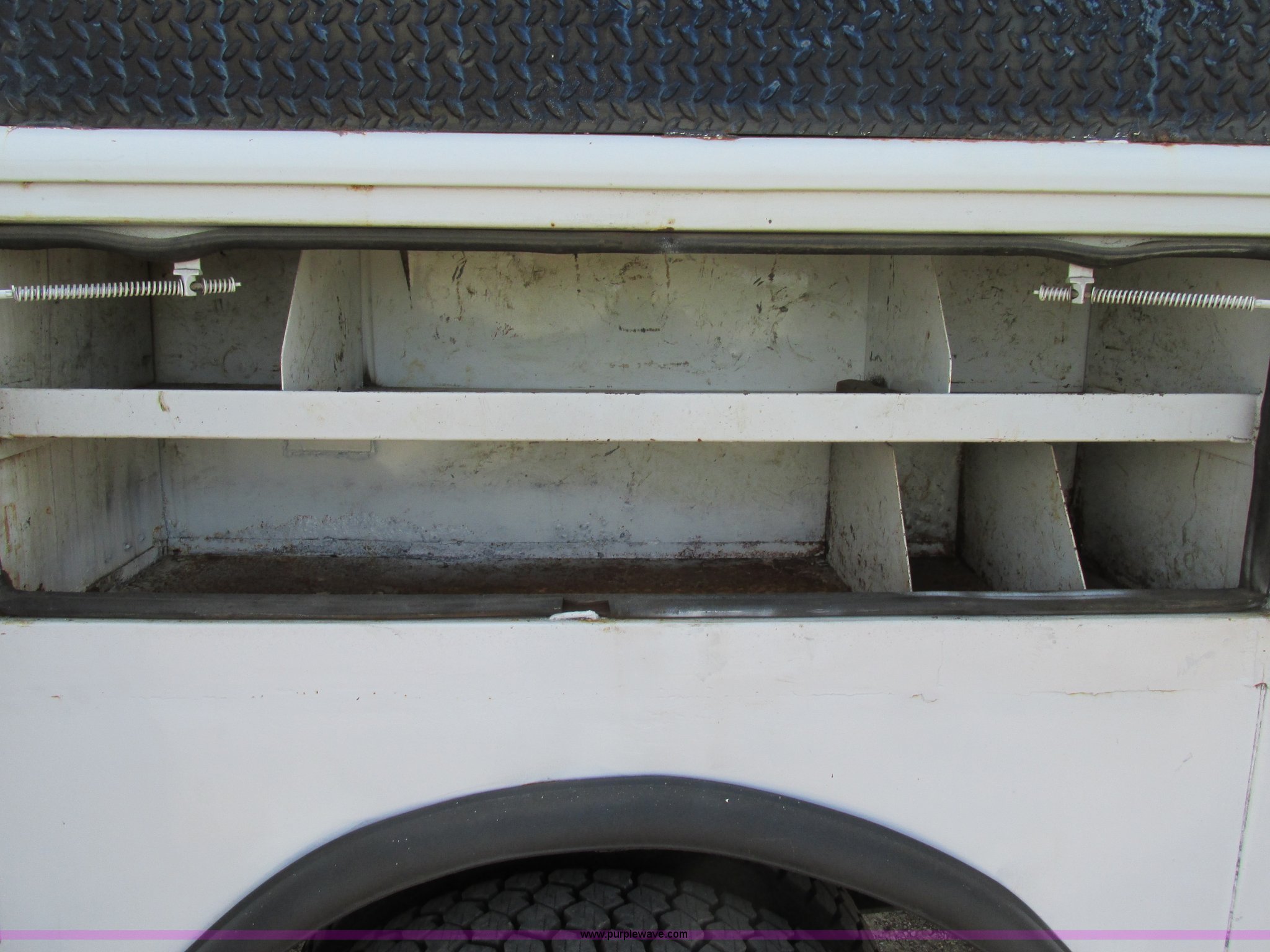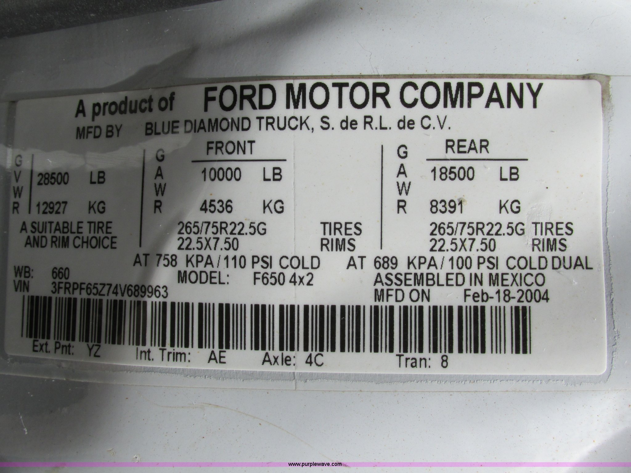 Purple Wave is selling a used Service Truck in Illinois. This item is a 2004 Ford F650 Super Duty XL service truck with crane with the following: 95,465 actual miles, International VT365 6.0L V8 turbo diesel engine, 230 HP, Six speed manual transmission, AC and heat, Tilt, Cruise, AM/FM, Manual windows and locks, Vinyl interior, PTO, Service body, (10) storage compartment, Top side saddle box, Open top, 16'4"L x 55.5"W overhead utility rack, (2) 60" x 17" x 17" under bed boxes, 77" x 66" platform, Steel floor,, Auto Crane 500SH crane, 360 degree rotation, 20'L tethered remote, Serial 44941056-1, Hydraulic outriggers, 98" x 28" rear work platform, Step bumper with vise, 54 gallon fuel tank, Mud flaps, Spring suspension, Hydraulic brakes, Goodyear 10R22.5 tires