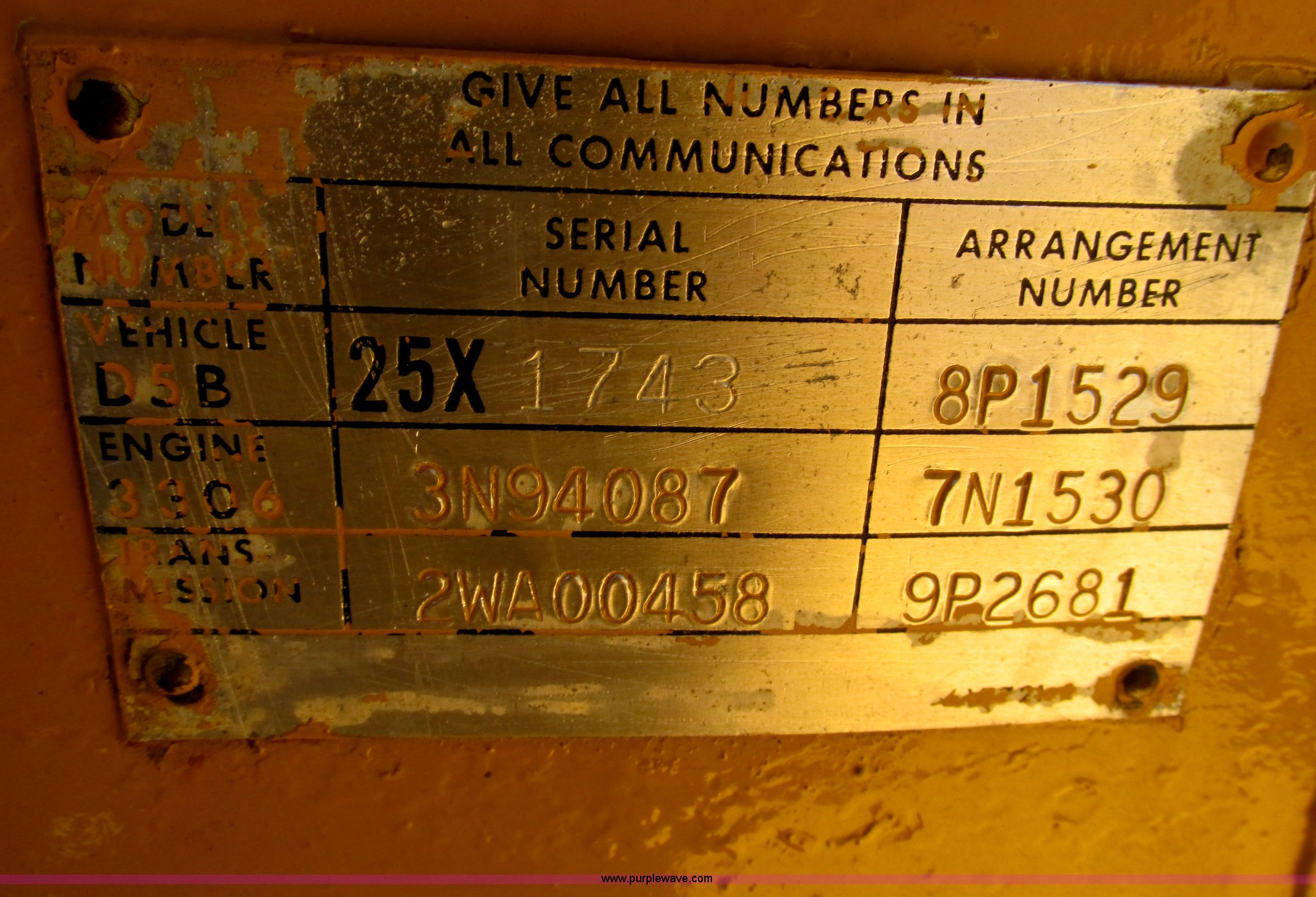 Purple Wave is selling a used Crawler Dozer in Illinois. This item is a 1980 Caterpillar D5B dozer with the following: 2,862 hours on meter, Caterpillar 3306 turbo diesel engine, 105 HP, Powershift transmission, 3F - 3R gears, Canopy, Clutch brake steering, Tilt dozer, 9' 4"W dozer face, Rear hitch, 30"W single grouser track pads, 25,615 lbs. base operating weight, Serial 25X1743