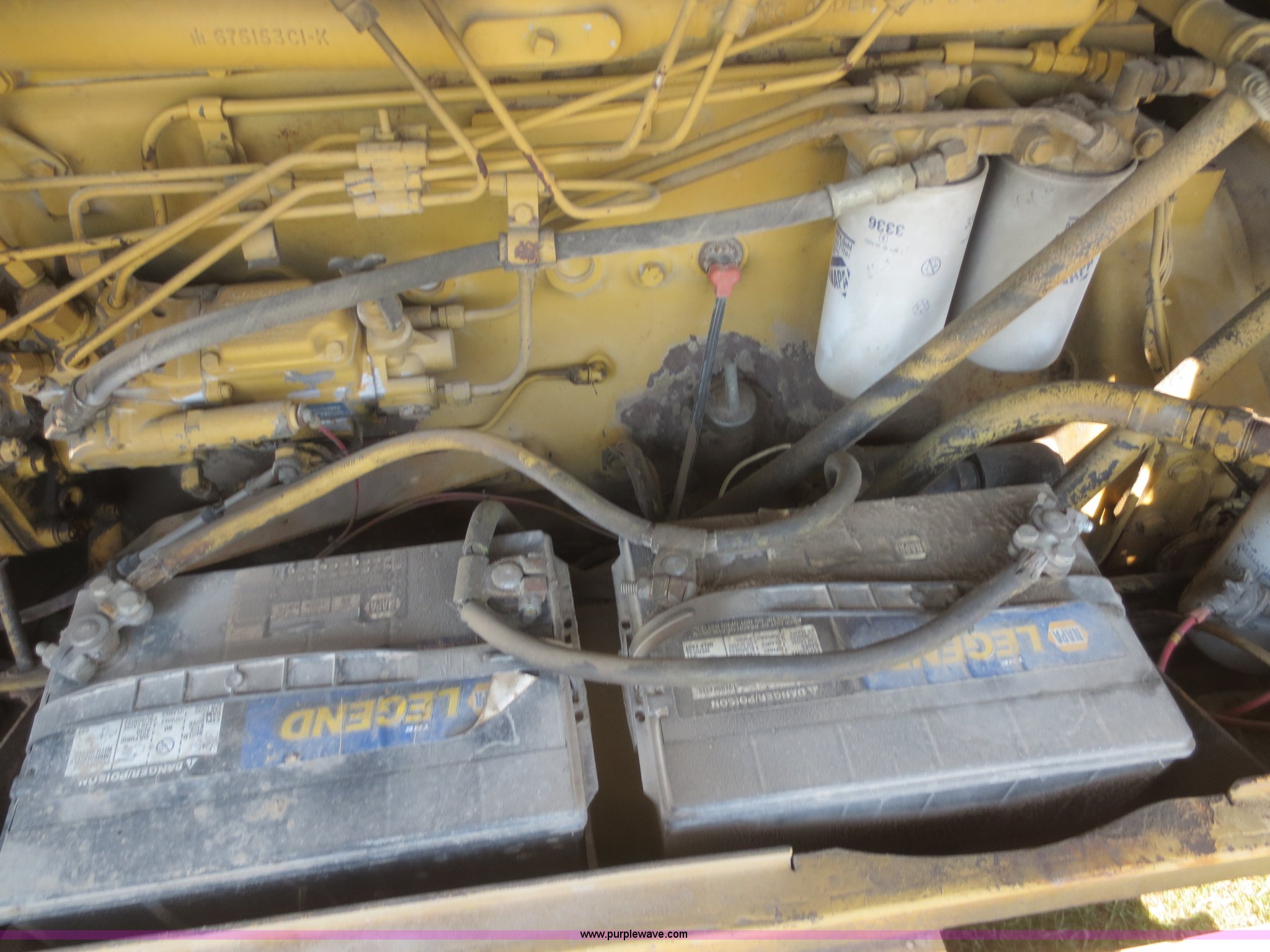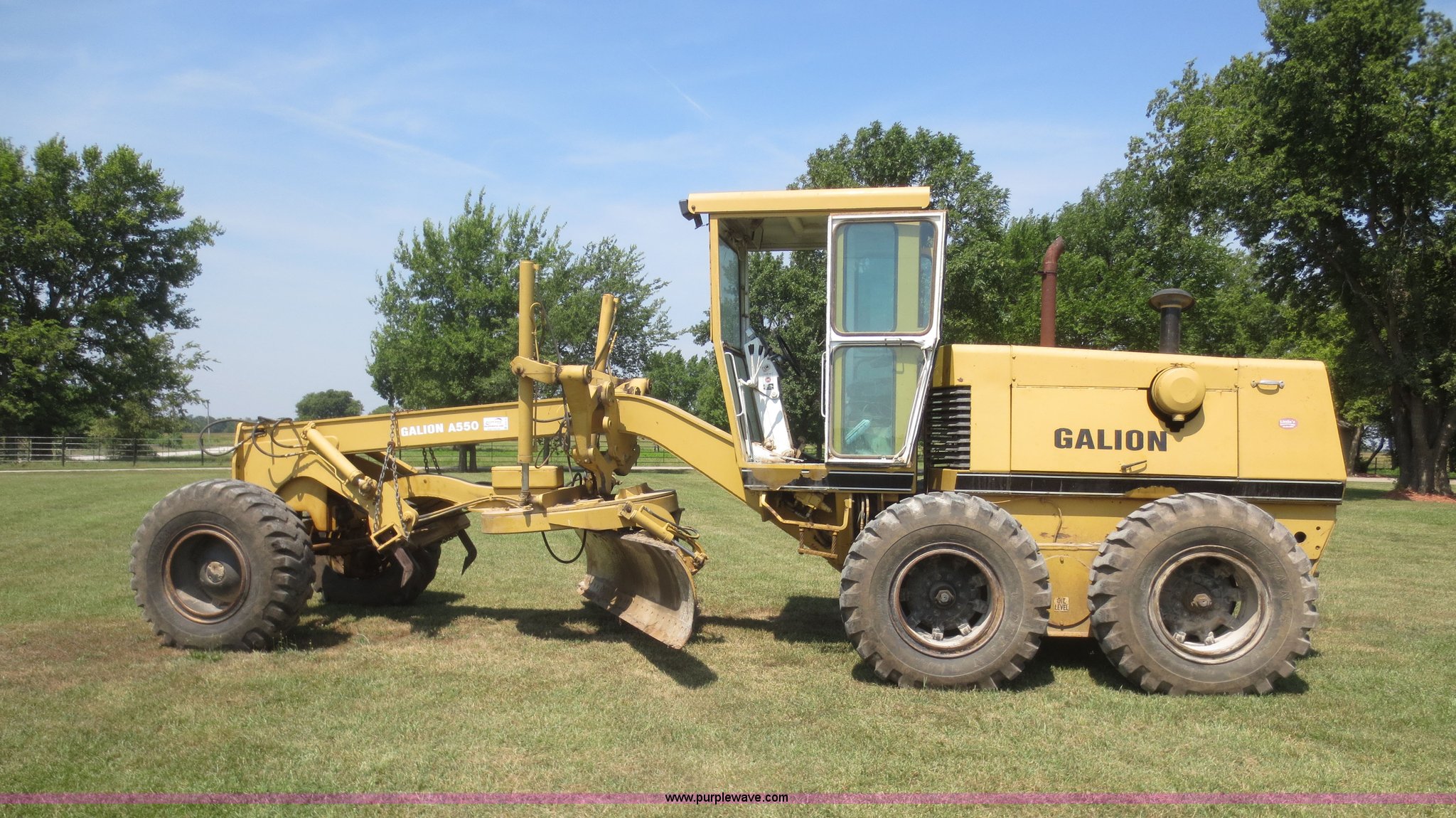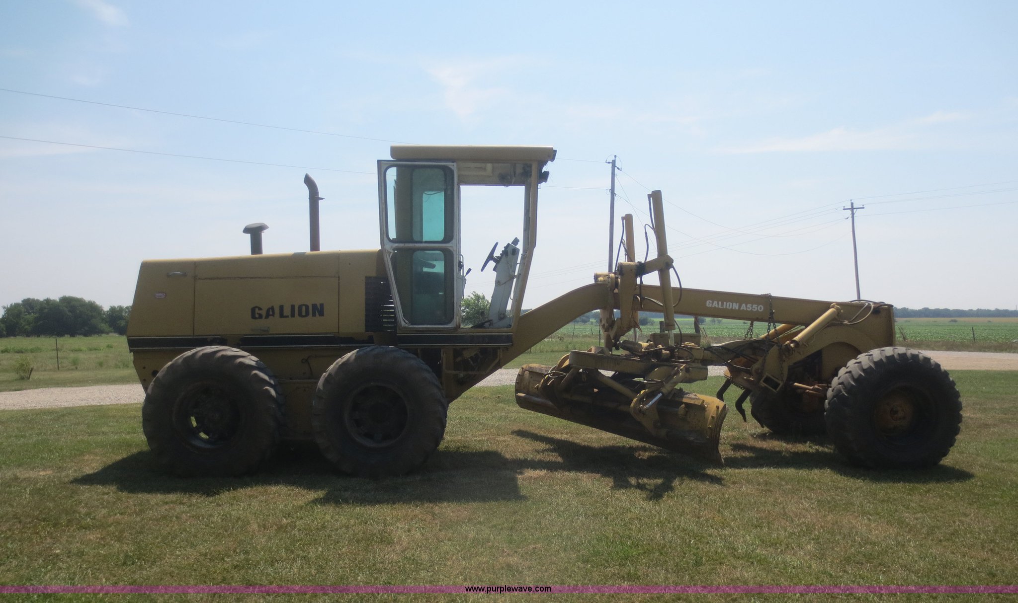Purple Wave is selling a used Motor Grader in Kansas. This item is a 1980 Galion A550 articulated motor grader with the following: 276 hours on meter, Actual hours unknown, International DT466 six cylinder turbo diesel engine, Power shift transmission, 4F-4R gears, Four wheel drive, EROPS, Heat, Suspension seat, High cab profile, Front and rear work lights, 12' moldboard, Tip control, Side shift, Front scarifier, Four teeth, Five additional scarifier teeth, 17.5-25 tires, 32,500 lbs. base operating weight, Non-operational brakes, Four batteries replaced in the last 60 days, Serial IF-09500