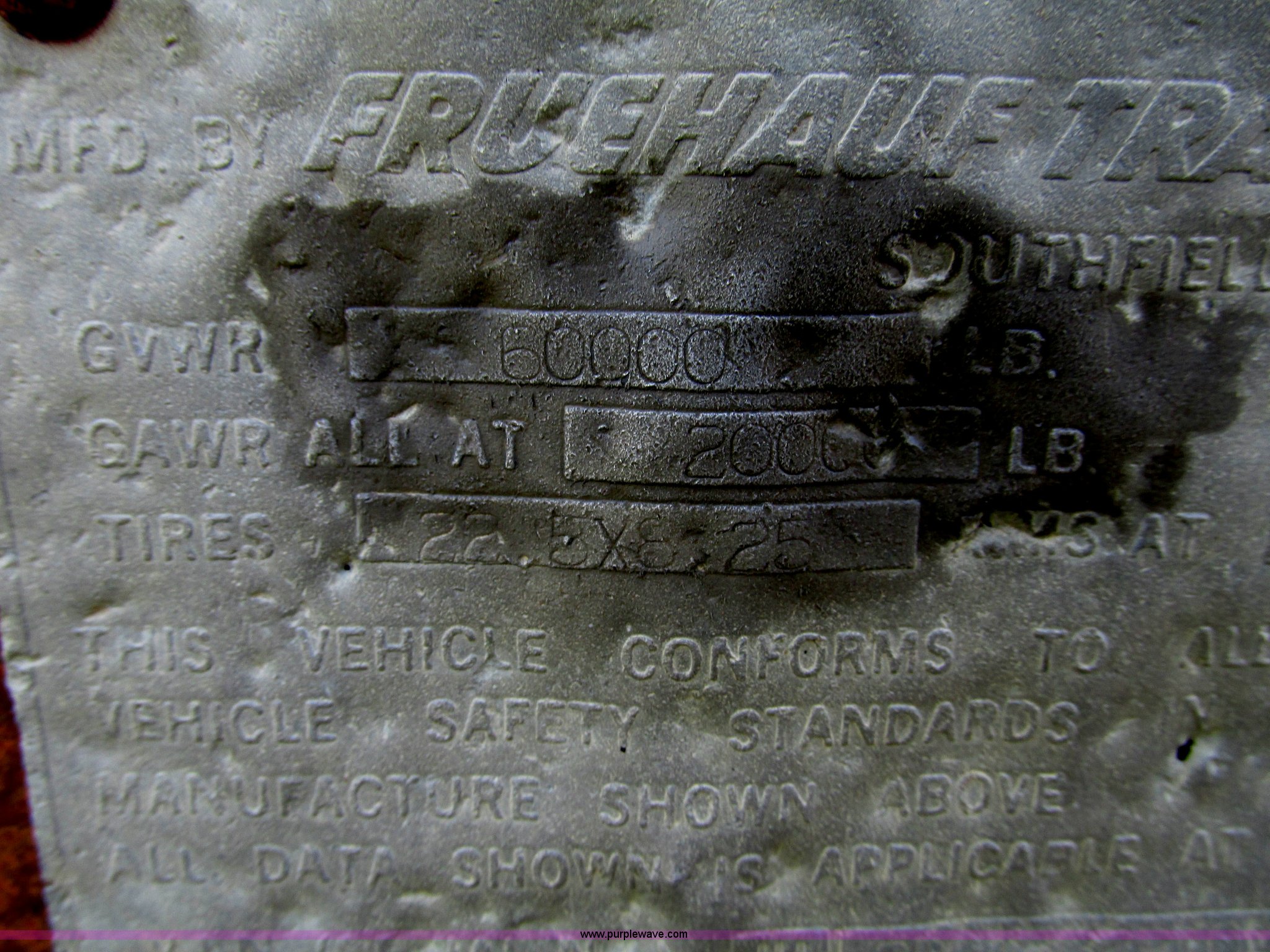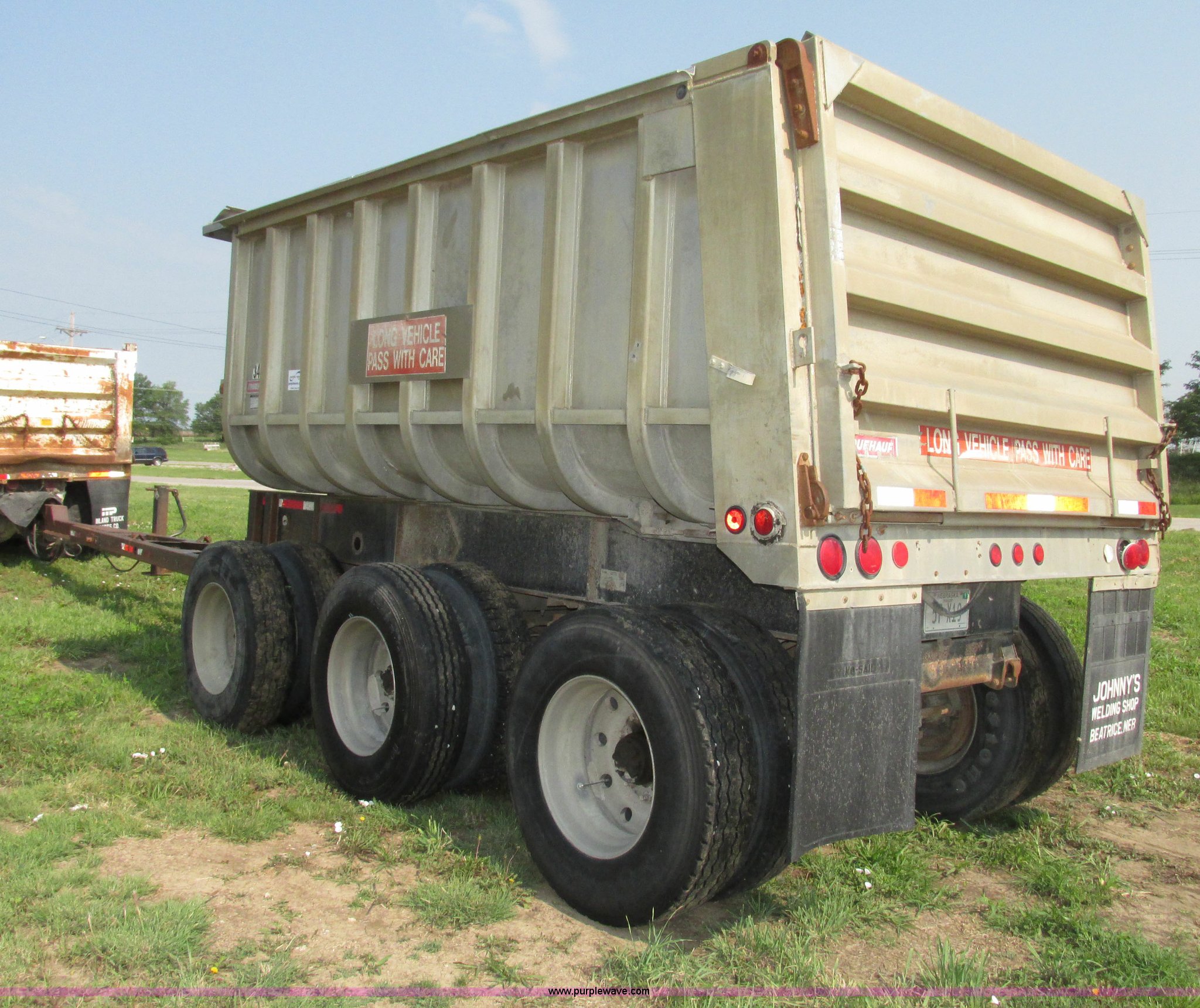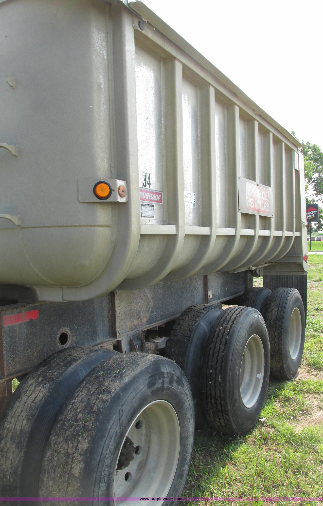 Purple Wave is selling a used Dump Trailer in Nebraska. This item is a 1994 Fruehauf DAX-14-06D-F3-16 aluminum triple axle dump trailer with the following: Approximately 37'L x 96"W overall dimensions, Approximately 14'L x 96"W O.D. dump box, Approximately 54"H sideboards, 16'L chassis, Approximately 104"H from ground to top of sideboards, 21'L tongue, Gladhand electric and hydraulic connections, Adjustable jack stand, 12,000 lbs capacity, Mud flaps, Safety cables with clevis, Spring suspension, Air brakes, Aluminum wheels, 11R22.5 tires, GVWR 60,000 lbs, GAWR 20,000 lbs, Unit# 34