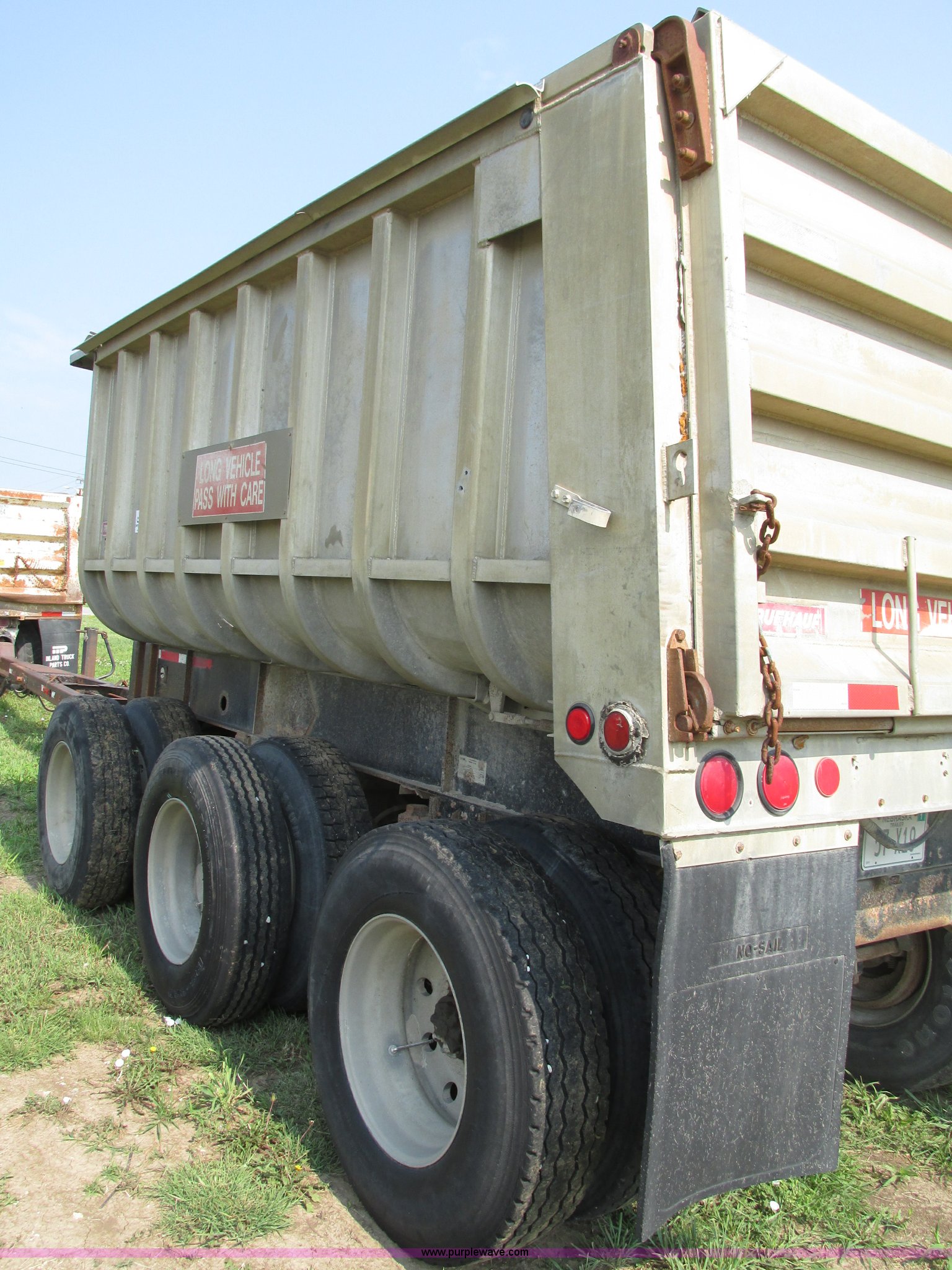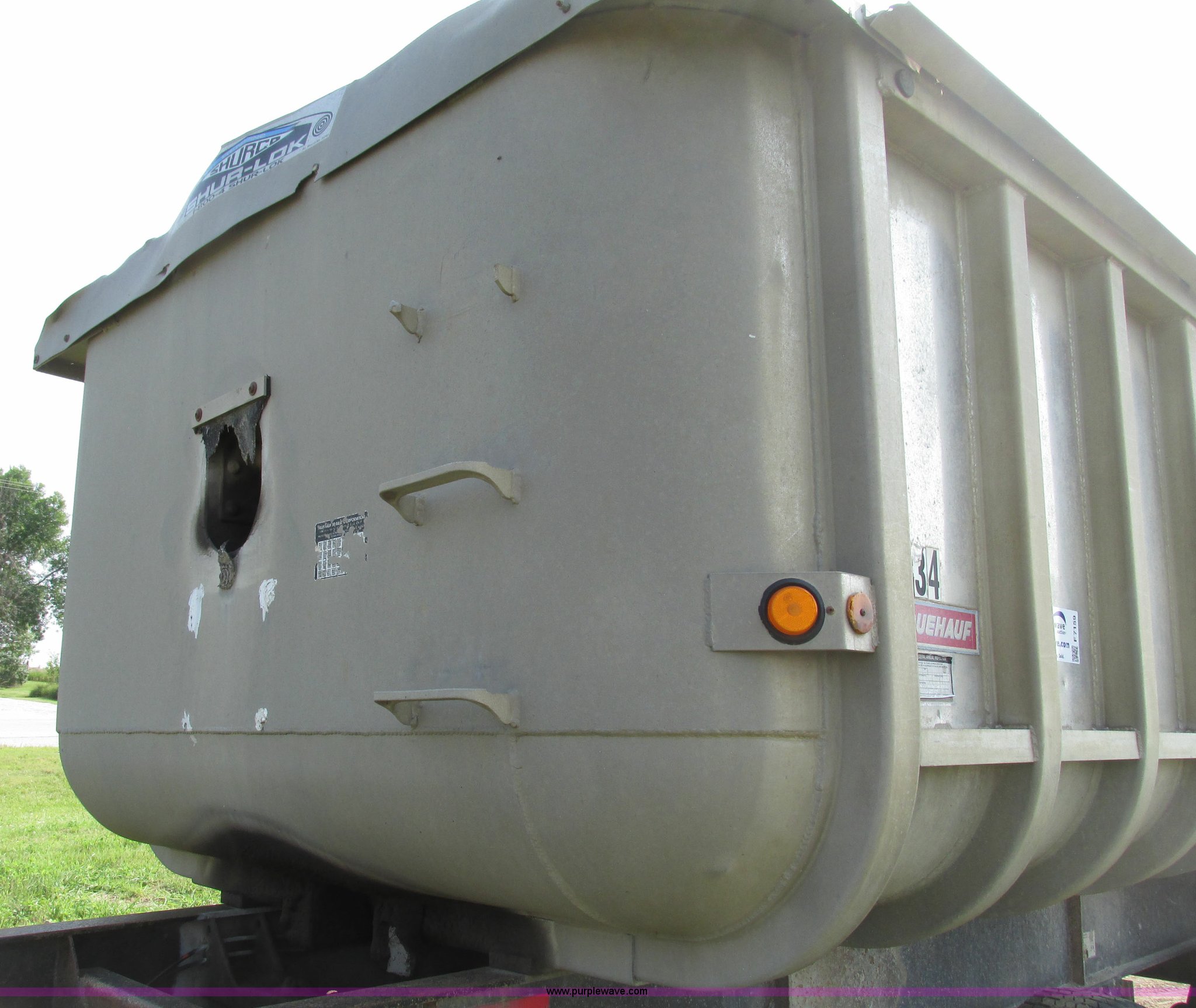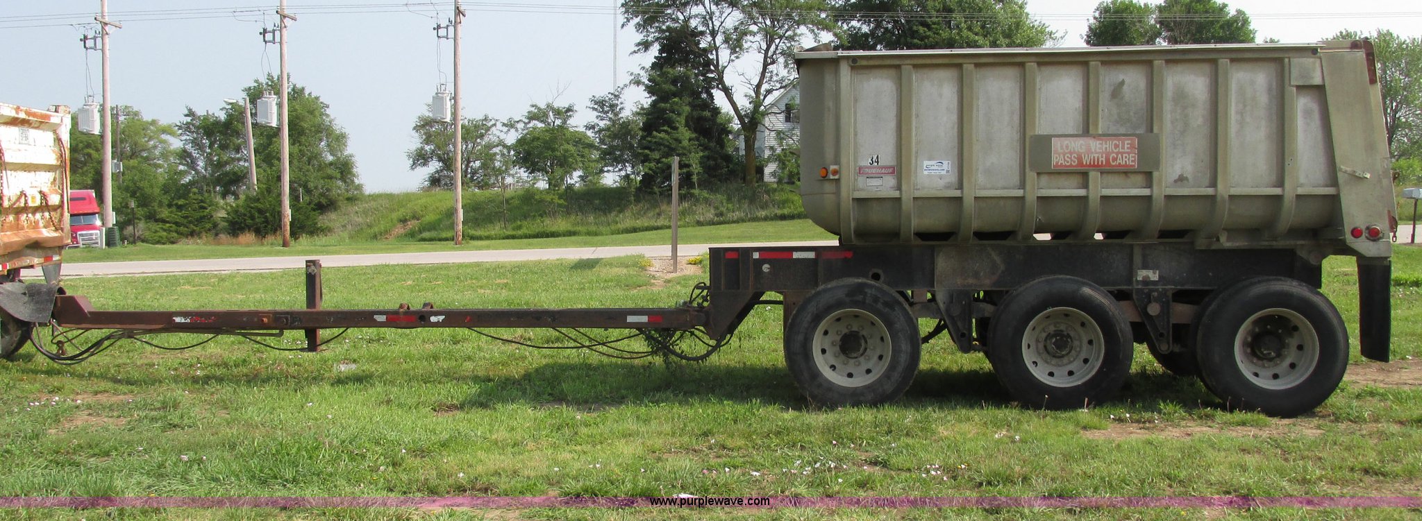 Purple Wave is selling a used Dump Trailer in Nebraska. This item is a 1994 Fruehauf DAX-14-06D-F3-16 aluminum triple axle dump trailer with the following: Approximately 37'L x 96"W overall dimensions, Approximately 14'L x 96"W O.D. dump box, Approximately 54"H sideboards, 16'L chassis, Approximately 104"H from ground to top of sideboards, 21'L tongue, Gladhand electric and hydraulic connections, Adjustable jack stand, 12,000 lbs capacity, Mud flaps, Safety cables with clevis, Spring suspension, Air brakes, Aluminum wheels, 11R22.5 tires, GVWR 60,000 lbs, GAWR 20,000 lbs, Unit# 34