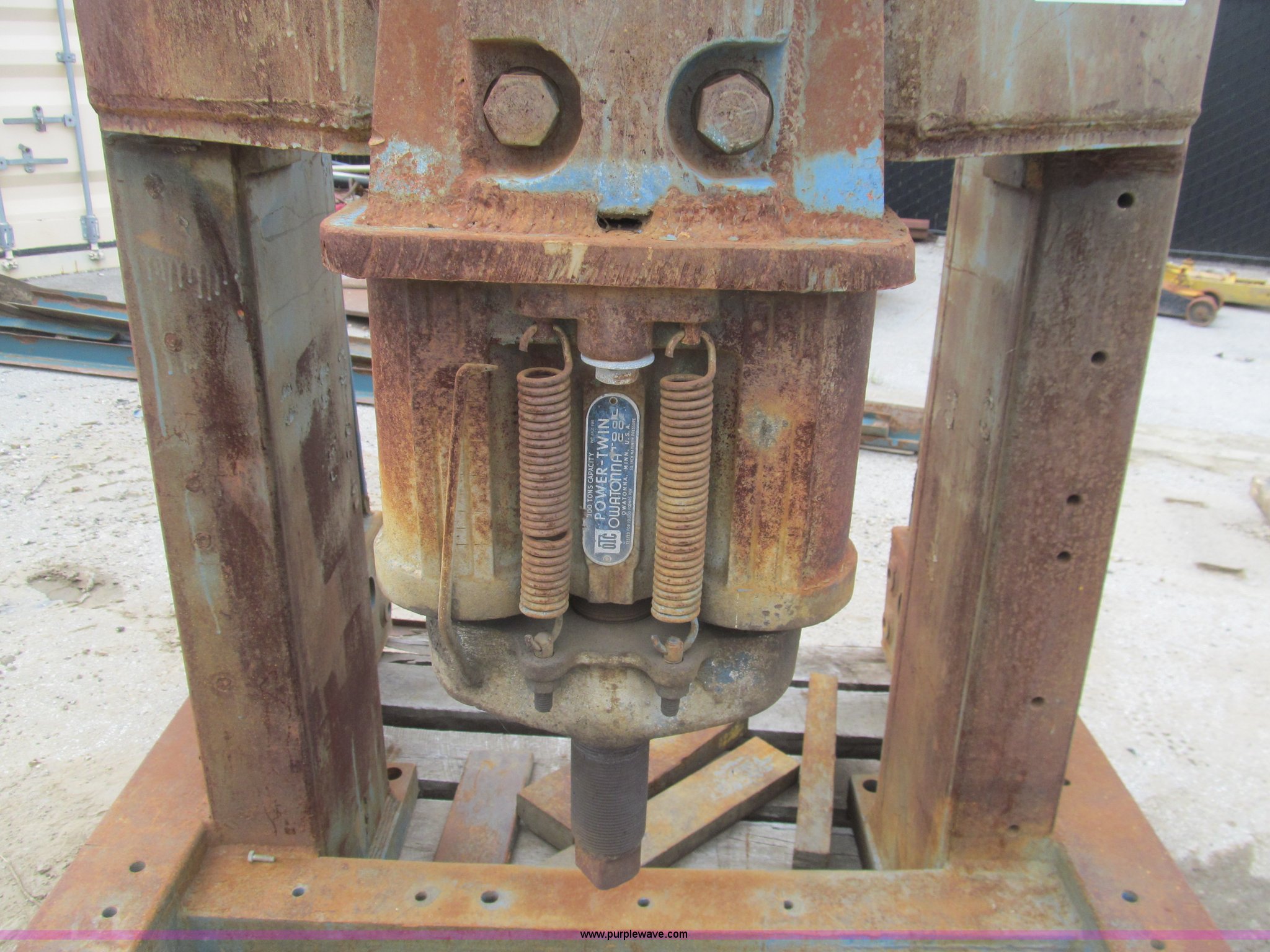 Shop built press. 100 ton capacity, Pump is not included, Steel construction. Kidwell Construction. 15919 S. Kidwell Road. Greenwood, MO 64034