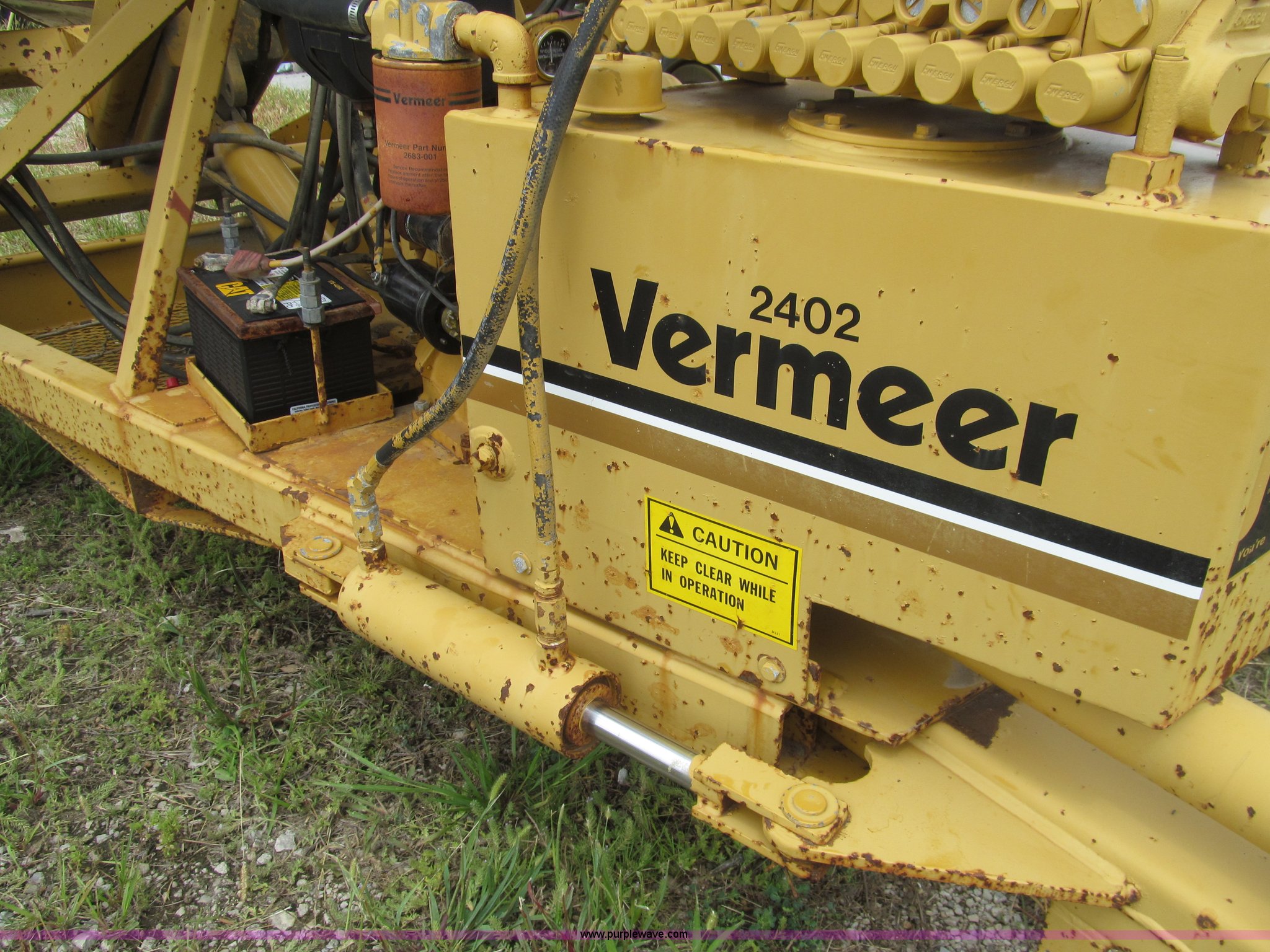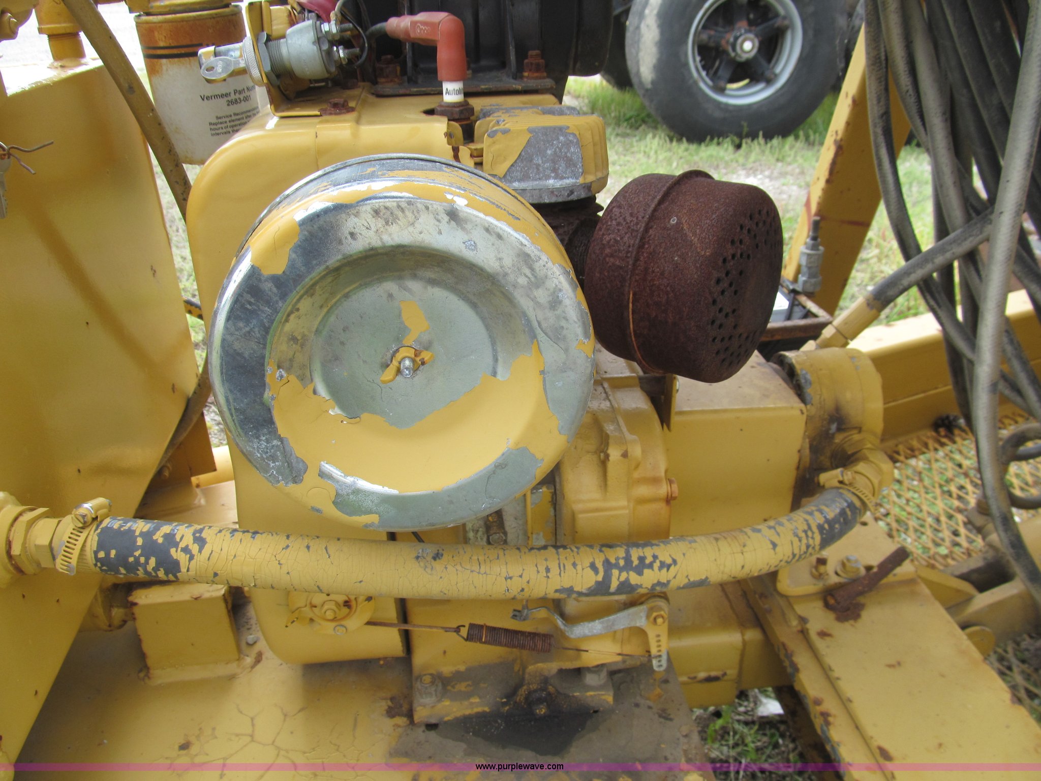 Purple Wave is selling a used Tree Spade in Missouri. This item is a Vermeer TS44A tree spade with the following: Wisconsin single cylinder gas engine, 12V electric start, (12) valve controls, 4" trunk diameter, 44" ball diameter, Hydraulic driven spades, Dual 15 gallon water tanks, Pintle hitch, 12.00 x 16.5 tires, Battery and starter replaced August 2014, Serial 1VRC161P6H1004181