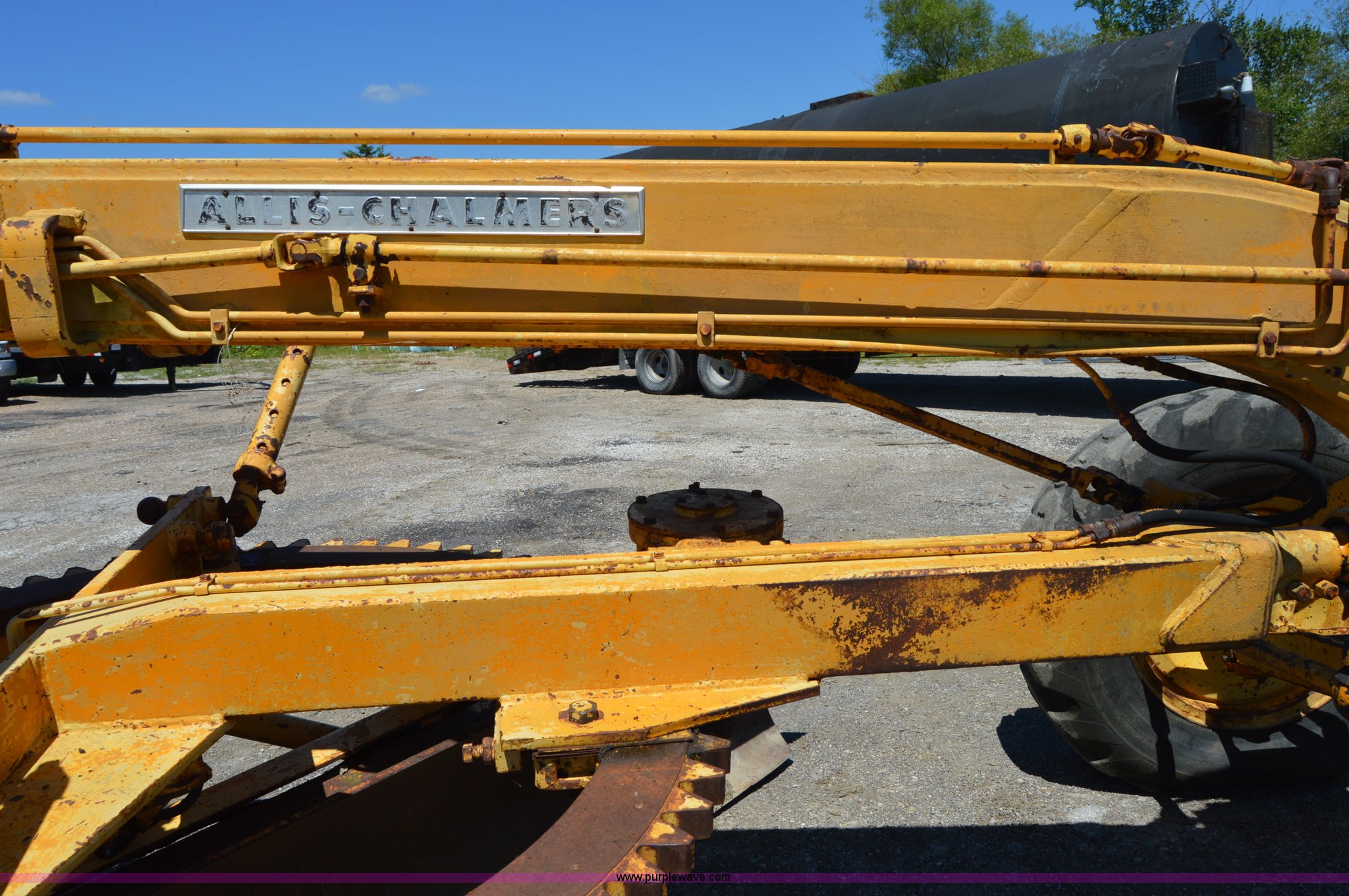 Purple Wave is selling a used Motor Grader in Missouri. This item is a Allis Chalmers M100 rigid motor grader with the following: Allis Chalmers six cylinder diesel engine, 3F gears, EROPS, Heat, 12'L moldboard, 13-24 tires, Glass cracked, Serial M100676