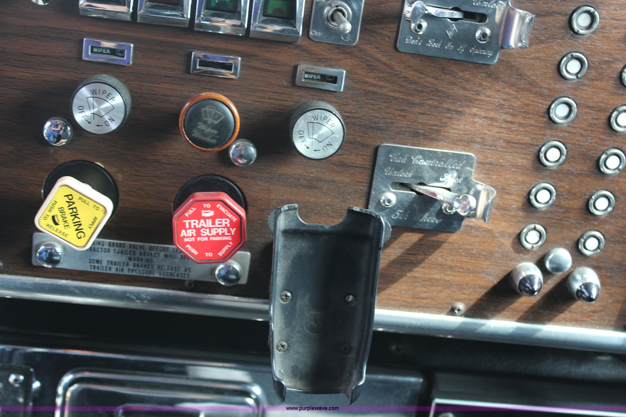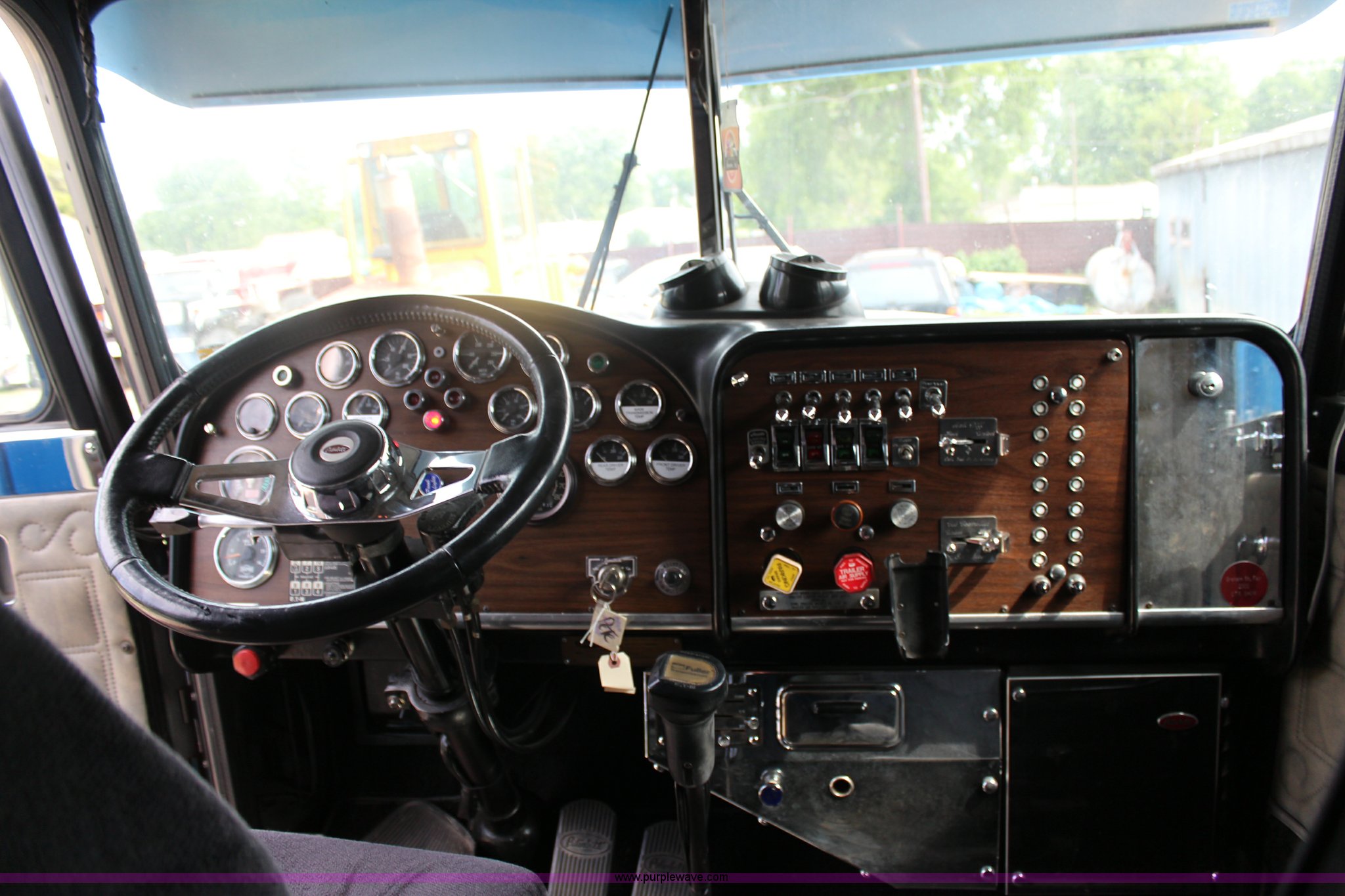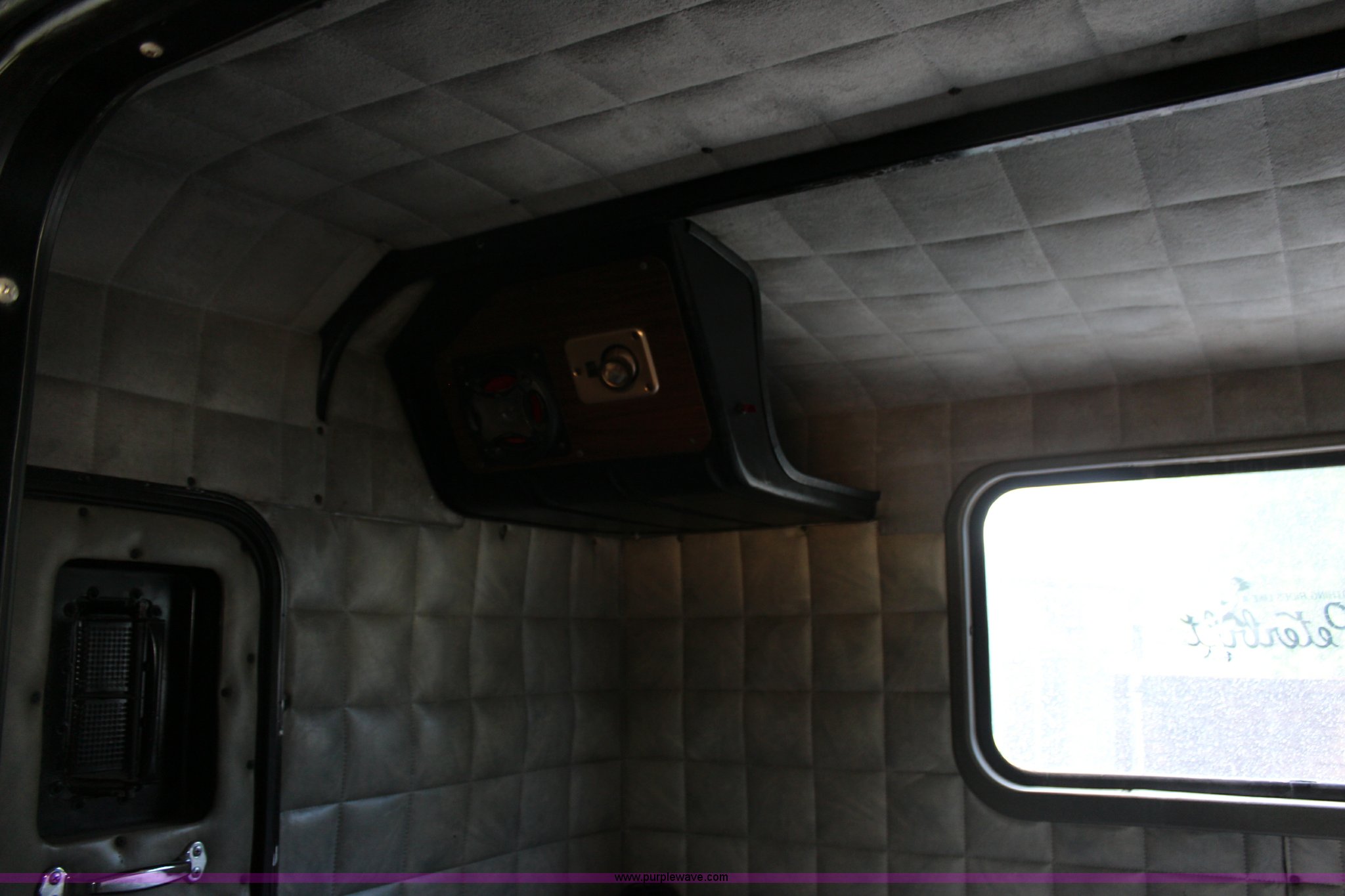 Purple Wave is selling a used Truck Tractor in Kansas. This item is a 1987 Peterbilt 359 Classic semi truck with the following: 352,683 miles on odometer, Caterpillar 3406 14.6L L6 diesel engine, 425 HP, Eaton Fuller 15 speed manual transmission, Twin screw, AC and heat, AM/FM, Heated mirrors, Air suspension seat, 60" sleeper, Spot light, Exterior visor, Chrome bumper, Air slide fifth wheel plate, Dual 100 gallon fuel tanks, Stainless steel quarter fenders, Dual front exhaust stack, Aluminum deck plate, Dump valves, Air suspension, Air brakes, Jake brake, Aluminum wheels, Wheel nut covers, 11R24.5 tires, GVWR 50,000 lbs, FAWR 12,000 lbs, IAWR 19,000 lbs, RAWR 19,000 lbs, Decals will be removed prior to auction