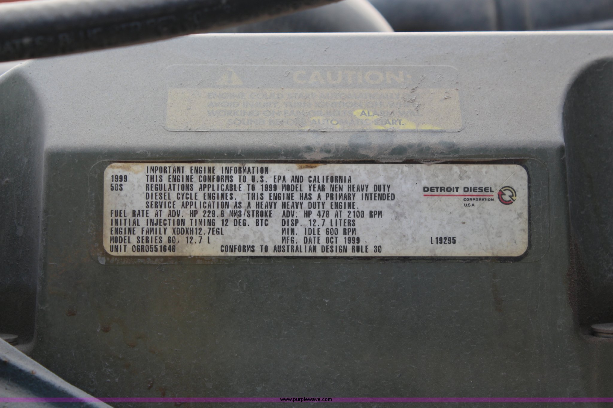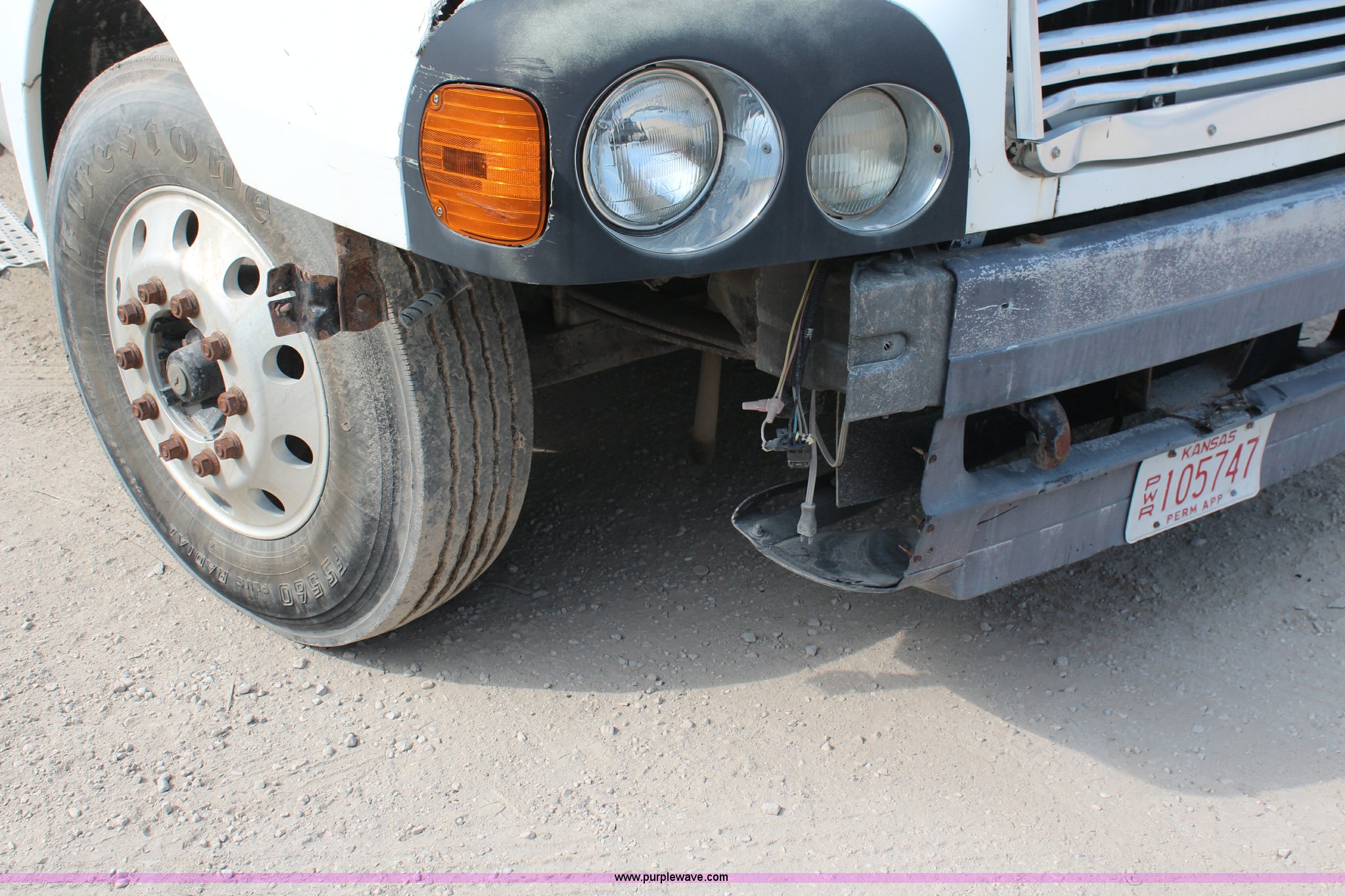 Purple Wave is selling a used Truck Tractor in Kansas. This item is a 2000 Freightliner Century Class semi truck with the following: 93,800 miles on odometer, Actual miles unknown, Detroit Diesel 12.7L diesel engine, 360 HP, Rockwell 10 speed manual transmission, Undefined clutch issue, Twin screw, AC and heat, Cruise, AM/FM, Passenger daylight door, Air suspension seat, Air ride cab, Dual 100 gallon fuel tanks, Headache rack, Storage, Single rear exhaust stack, Air suspension, Air brakes, Jake brake, 295/75R22.5 tires, GVWR 50,000 lbs, FAWR 10,000 lbs, IAWR 20,000 lbs, RAWR 20,000 lbs, Interior/exterior cosmetic damage, ABS light is on, Undefined clutch issue