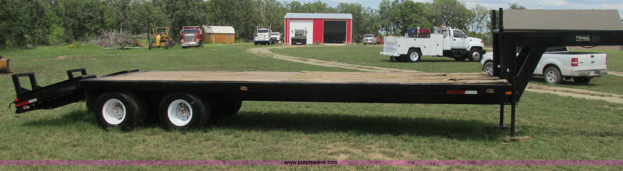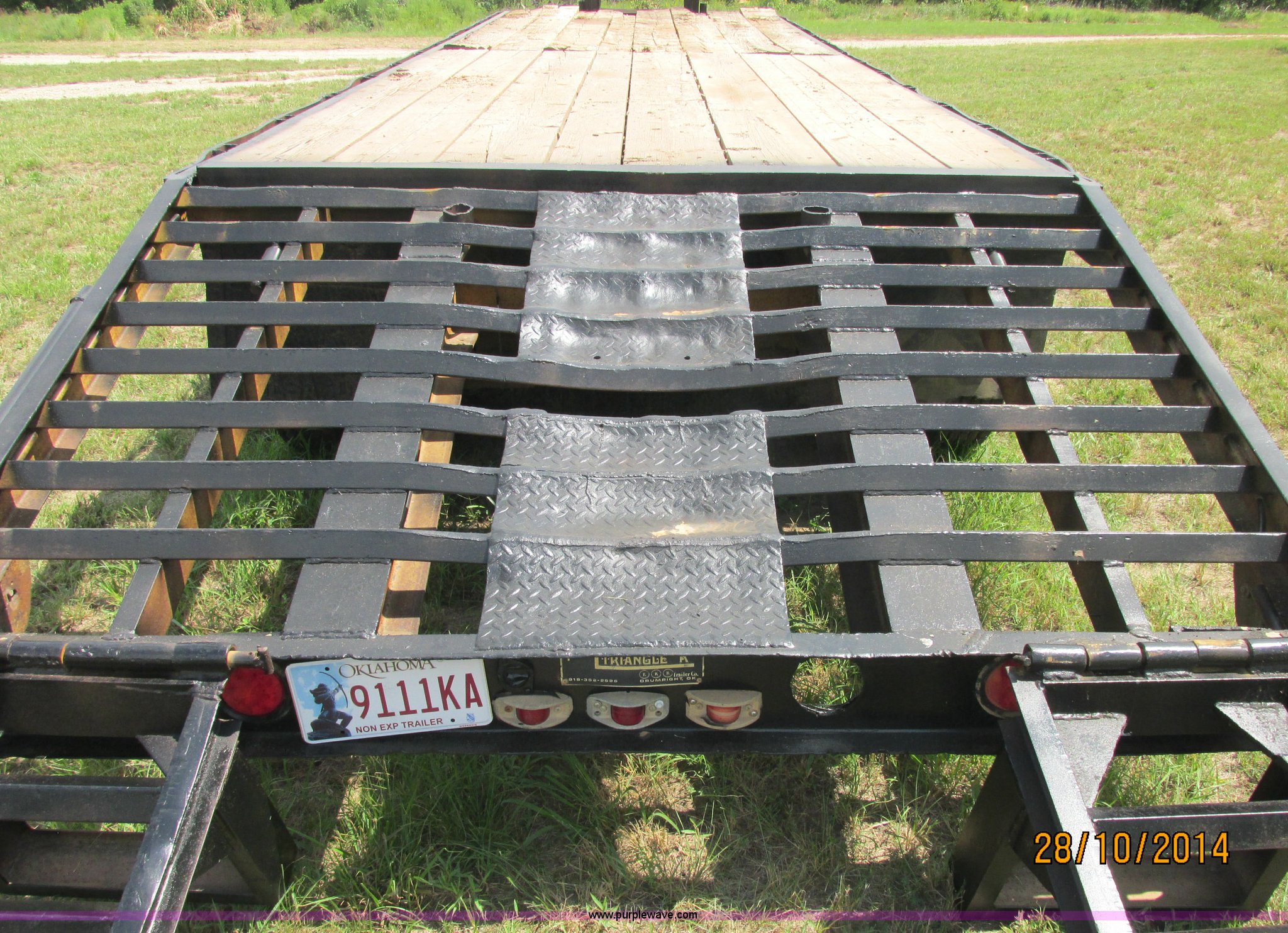 Purple Wave is selling a used Equip. Trailer in Oklahoma. This item is a 1981 Triangle gooseneck trailer with the following: 24'L x 7.5'W wood deck, 5'L dovetail, 5'L x 19"W ramps, Storage, Holland FW0001 hitch, Serial 5213U26I0007, Nuway suspension, Air brakes, Oil bath hubs, 8.25R15 tires