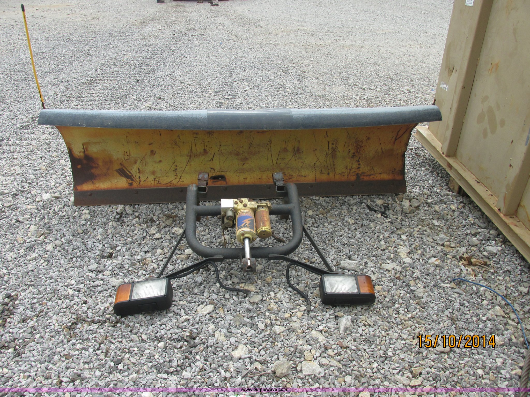 Purple Wave is selling a used Truck Part and Attach. in Oklahoma. This item is a Meyer C8 snow plow with the following: 8'W blade, Part No. 09286, Meyer 647 touch snow plow control, Exterior light, Mounting bracket