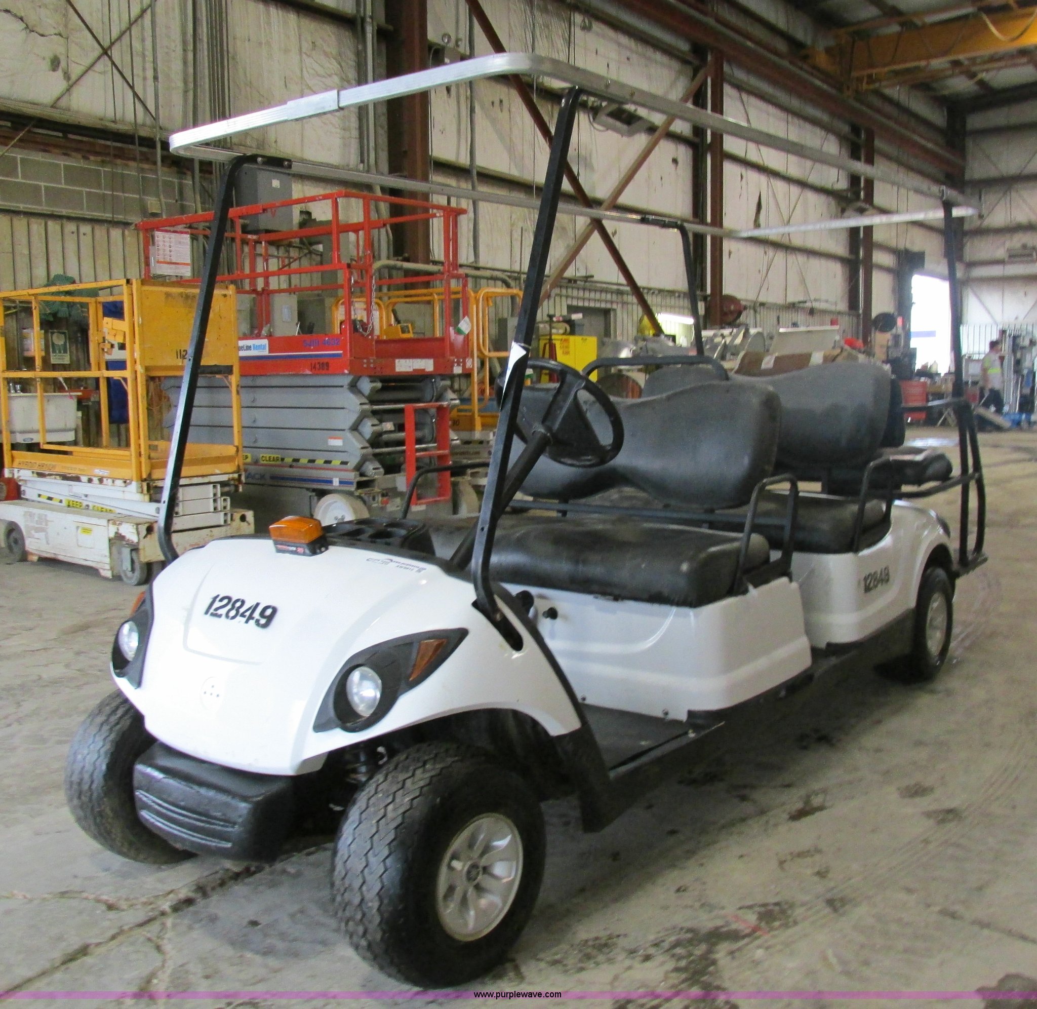 Purple Wave is selling a used Golf Cart in Missouri. This item is a 2009 Yamaha golf cart with the following: Gas engine, Automatic transmission, Centrifugal, Canvas cab enclosure, Six passenger capacity, Holen 13x8.50 tires, Cosmetic damage, Low oil alarm system included, Hard top roof missing, Serial 12849, Unit# 12849