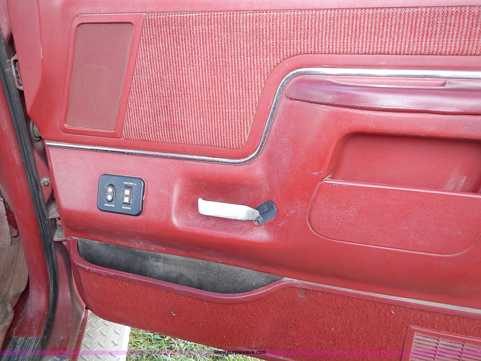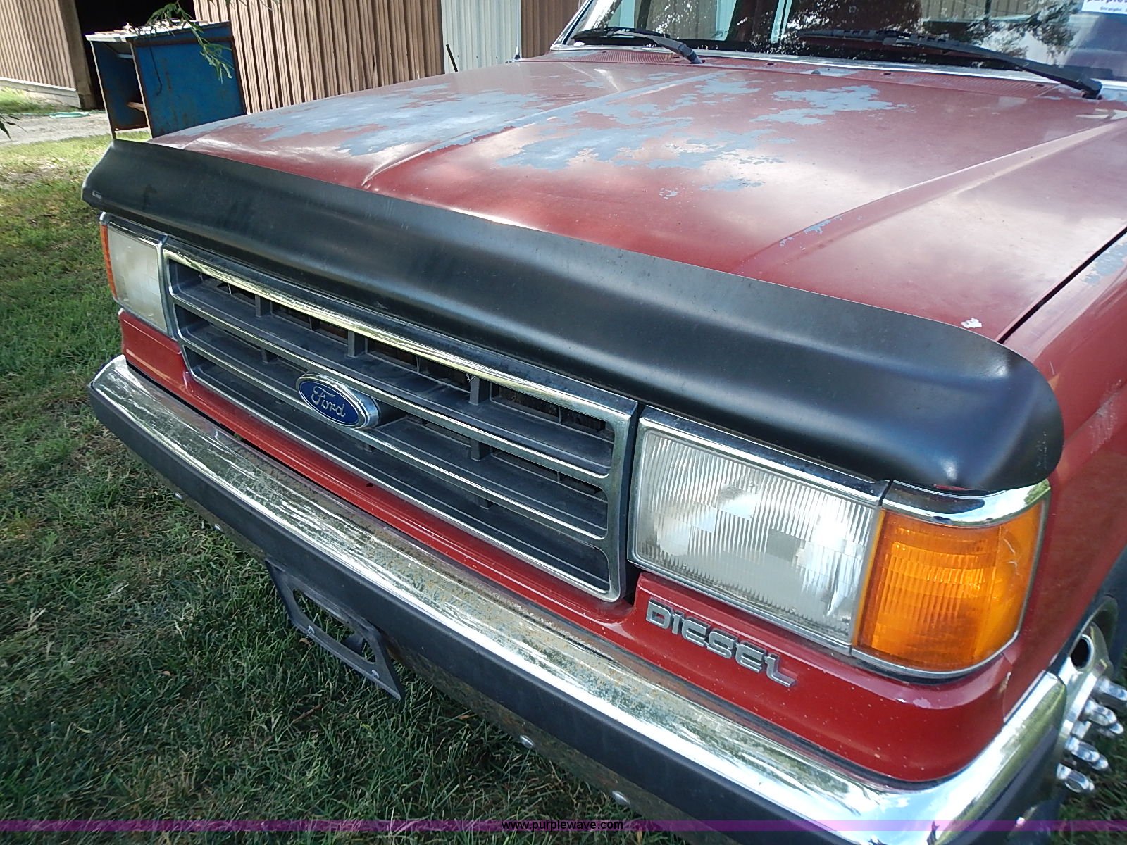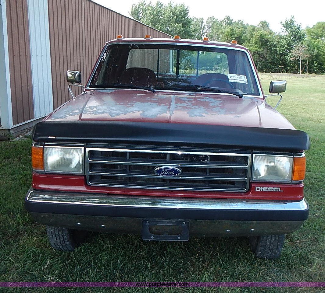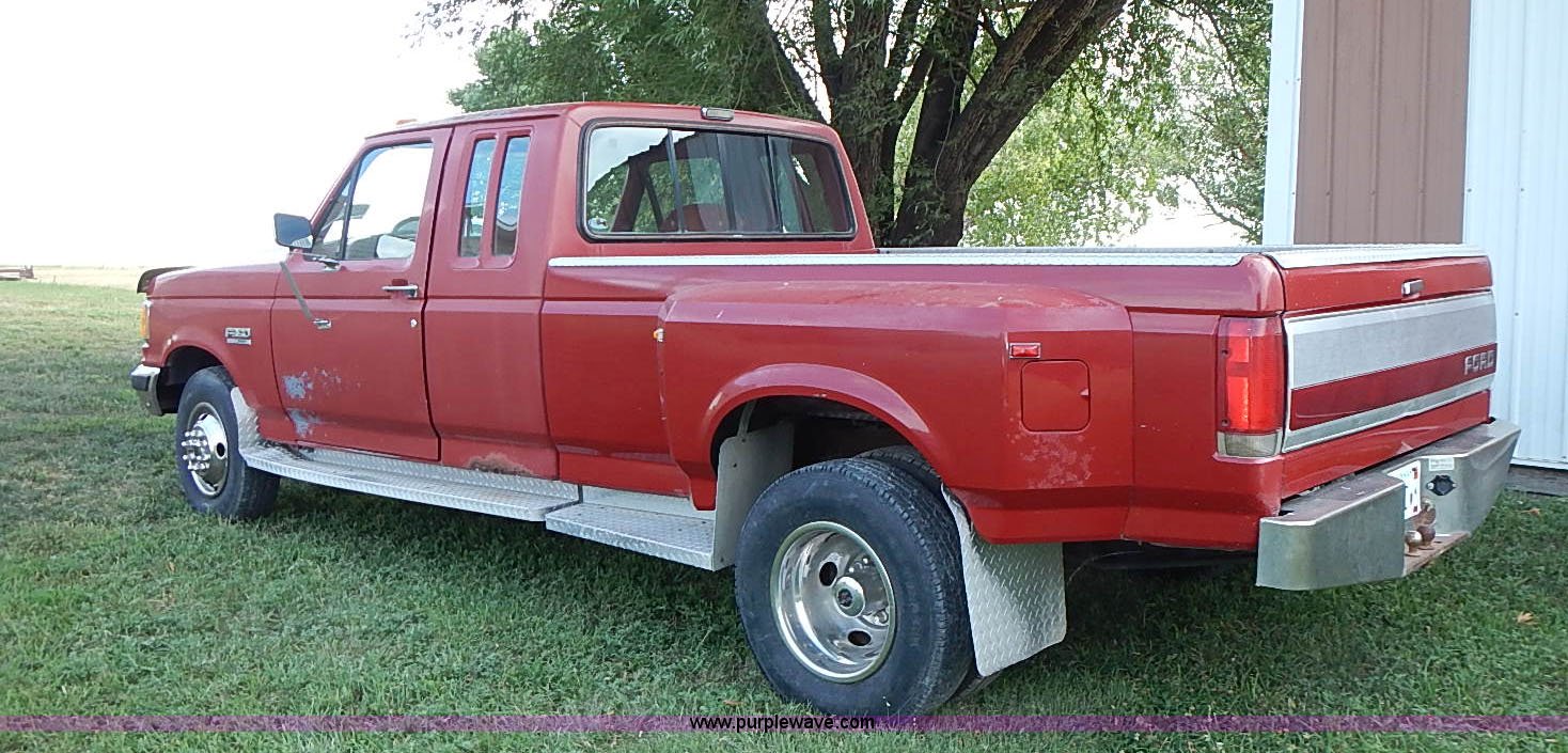 Purple Wave is selling a used 3/4 or 1 Ton Pickup or Van in Kansas. This item is a 1991 Ford F350 XLT Lariat Crew Cab pickup truck with the following: 45,946 miles on odometer, 7.3L V8 OHV 16V turbo diesel engine, Automatic transmission, AC and heat, AC needs charged, Tilt, Cruise, AM/FM/cassette, Power windows and locks, Cloth interior, Running boards, Bug deflector, Gooseneck hitch, Ball hitches, Trailer wiring, Nut covers, 215/85R16 tires, Recently replaced battery and master cylinder, Transmission replaced at 123,000 miles, Paperwork included, Engine replaced at 157,000 miles, Paperwork included, Engine hood latch needs replaced, Vacuum pump needs replaced, Cracked windshield, Paint peeling/faded, Rust, Rear view mirror missing
