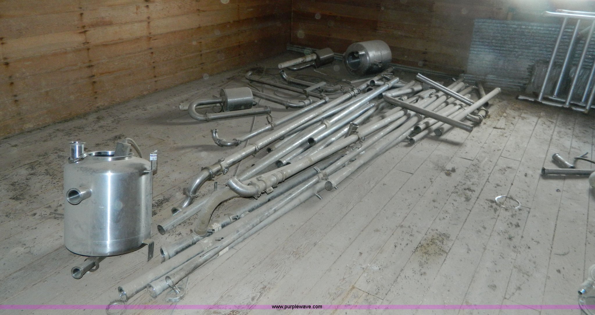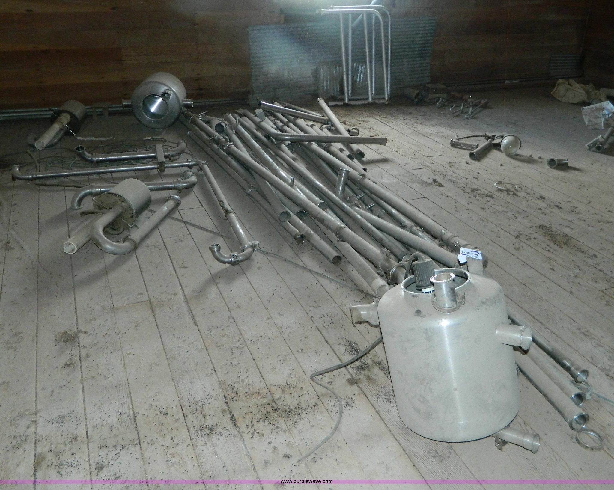 Purple Wave is selling a used Livestock Equip. in Kansas. This item is a Assorted stainless steel pipe and cans with the following: Assorted stainless steel pipe and cans. Fort Hays State Dairy. 1422 US 183 AIT. Hays, KS 67601