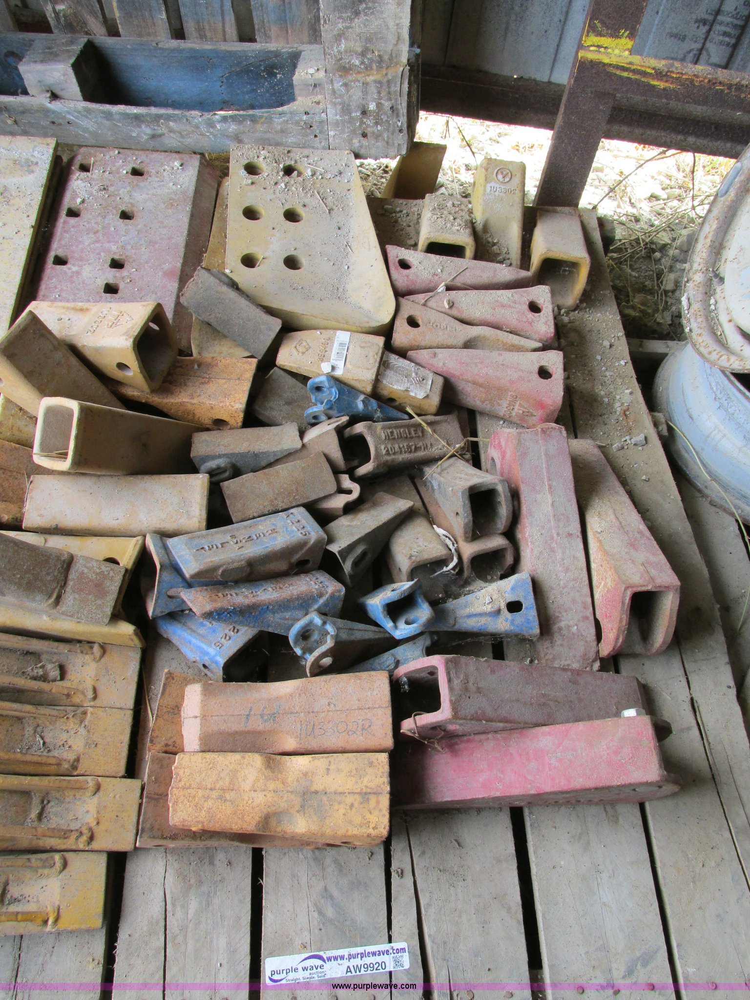 Assorted bucket attachments. (50) assorted bucket teeth, (5) cutting edges, (2) corner edges. Franklin County, Missouri. 400 E Locust RM 206. Union, MO 63084