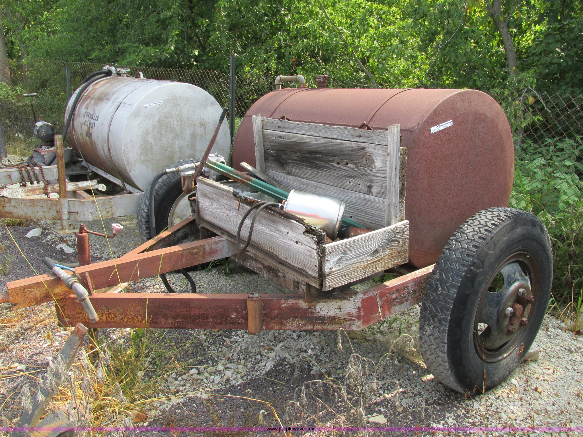 Purple Wave is selling a used Fuel and Lube in Missouri. This item is a Shop built off road 275 gallon fuel tank with the following: Jack, Pintle hitch, Manual fuel pump, Nozzle, 10.00x20 tires