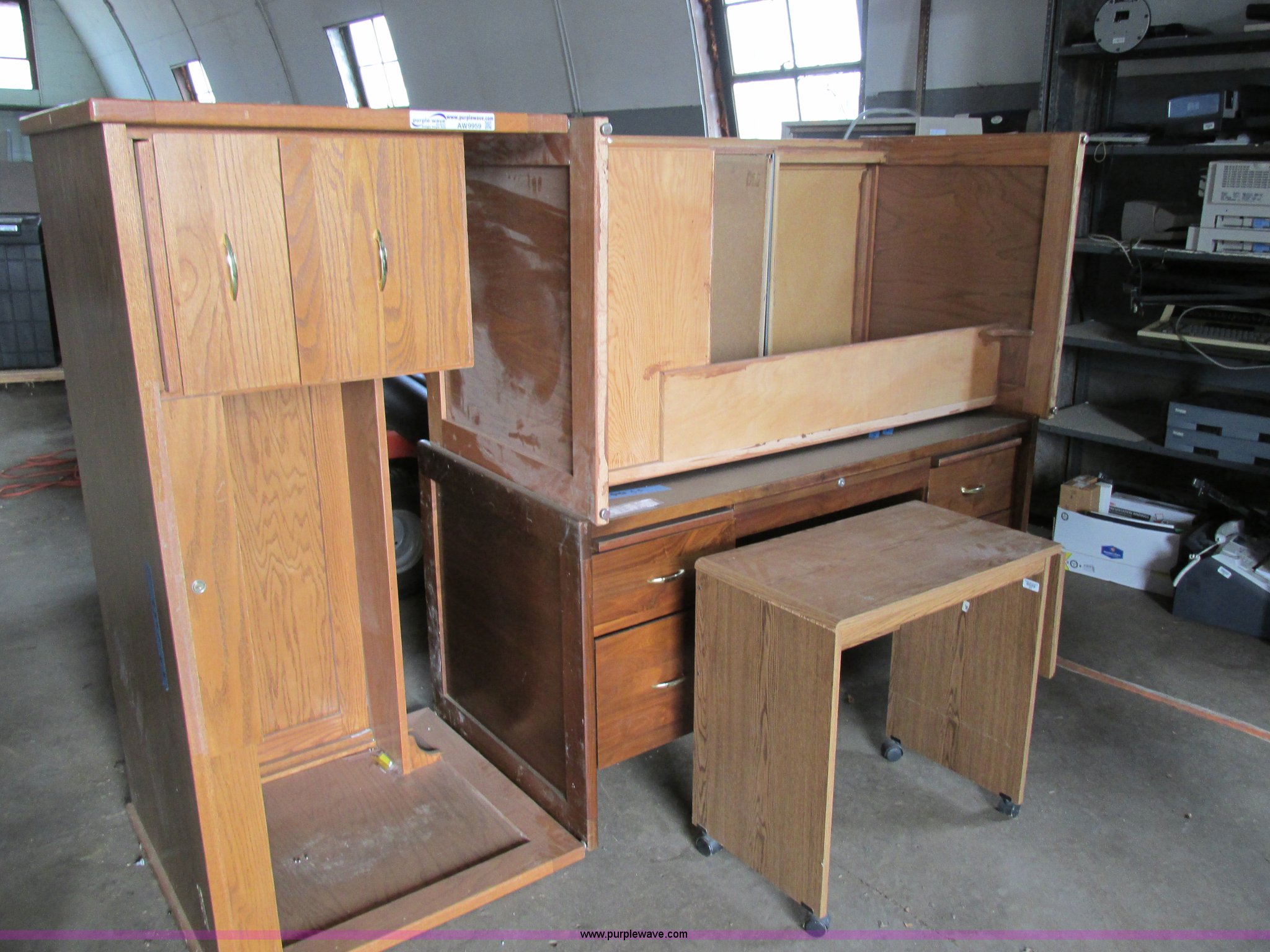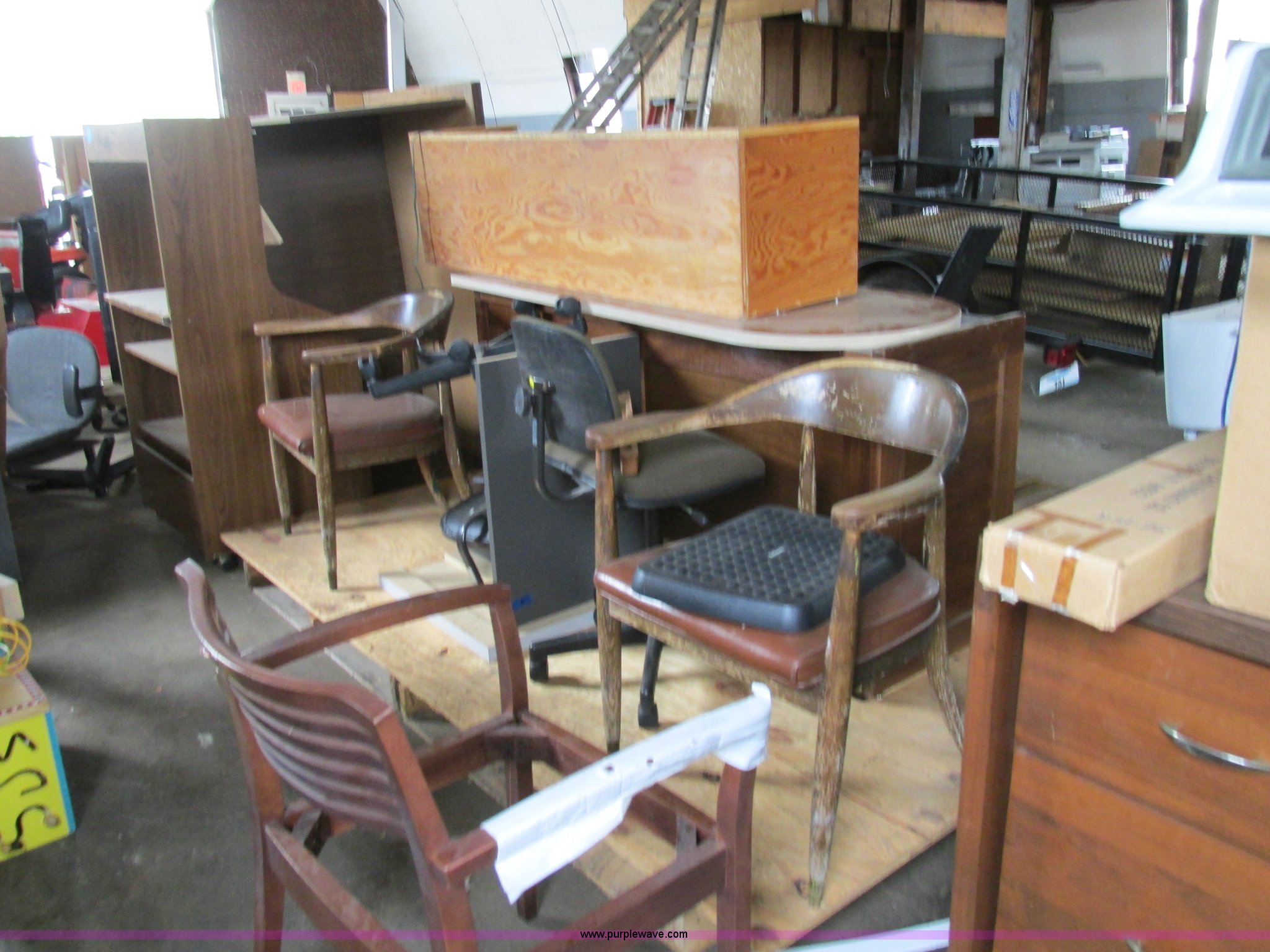 Purple Wave is selling a used Office Supplies and Equip. in Missouri. This item is a Assorted office equipment with the following: (4) wood desks, (2) returns, (2) credenzas, Book shelf, Assorted office chairs, One damaged, (3) televisions, Sanyo 26", True Color 14" television, Built-in VHS player,, Phillips 20" television, Remote
