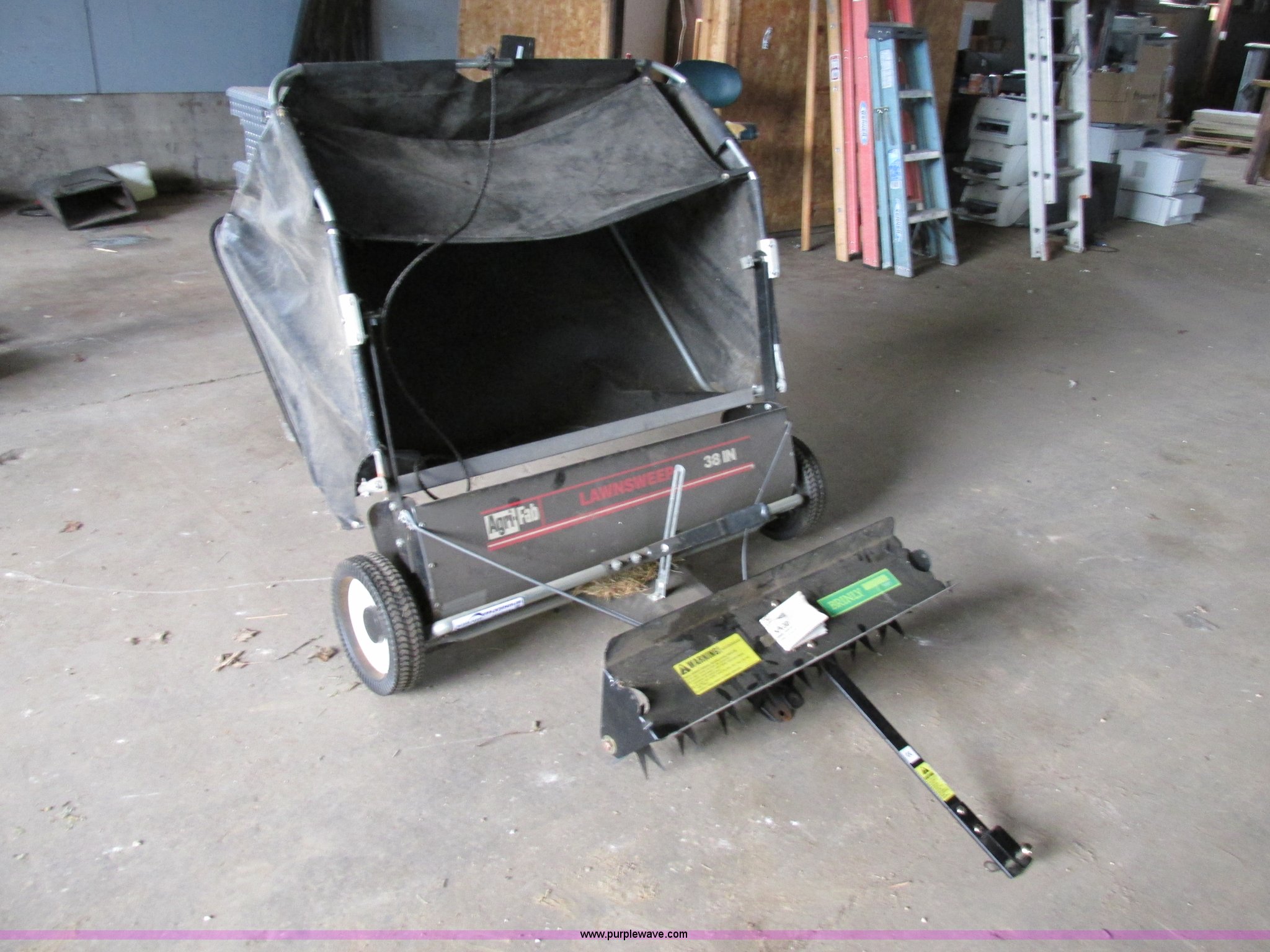 Purple Wave is selling a used Lawn and Garden in Missouri. This item is a Agri-fam lawn sweeper with the following: 38"W sweeper, 30" lawn thatcher