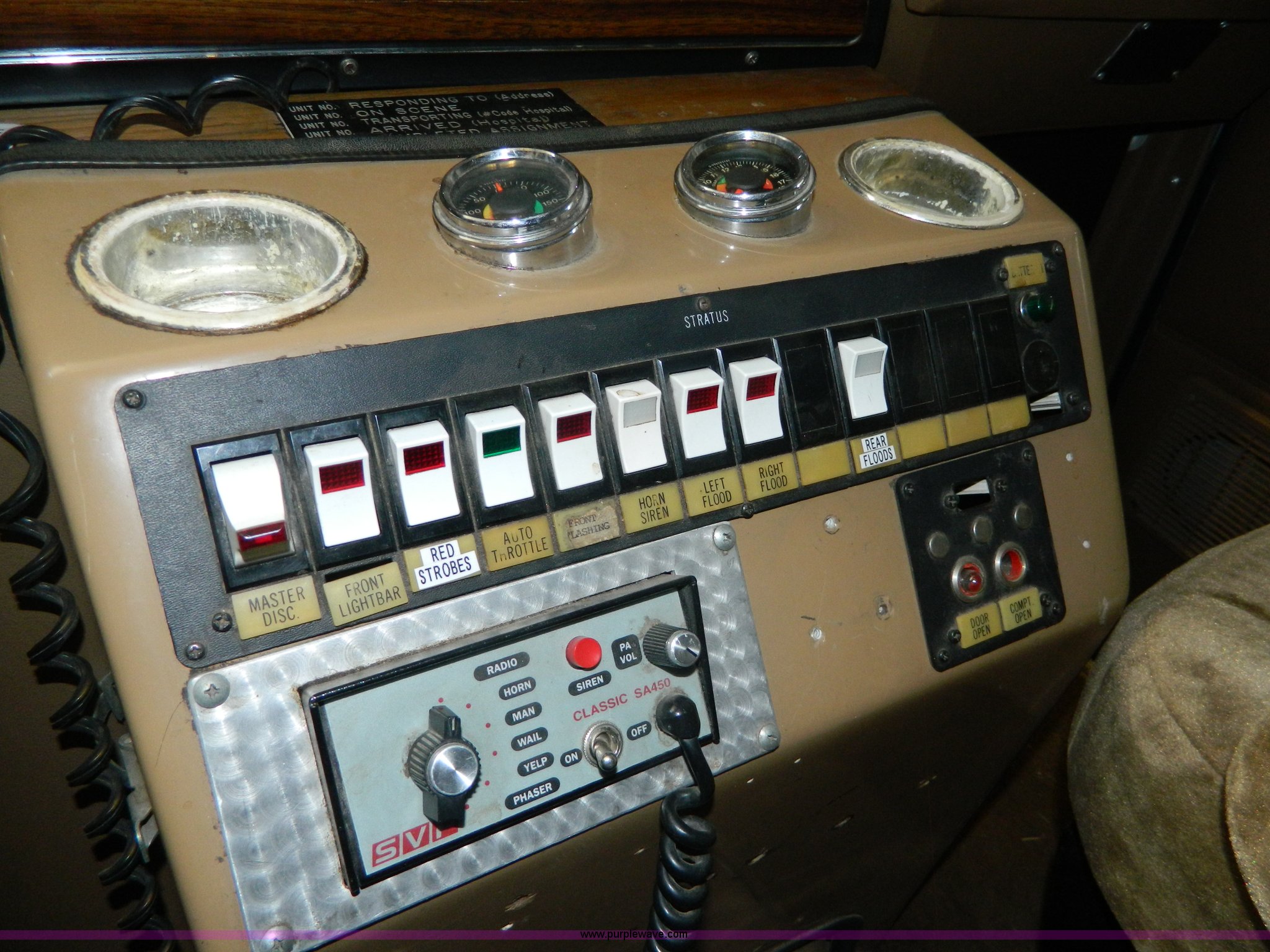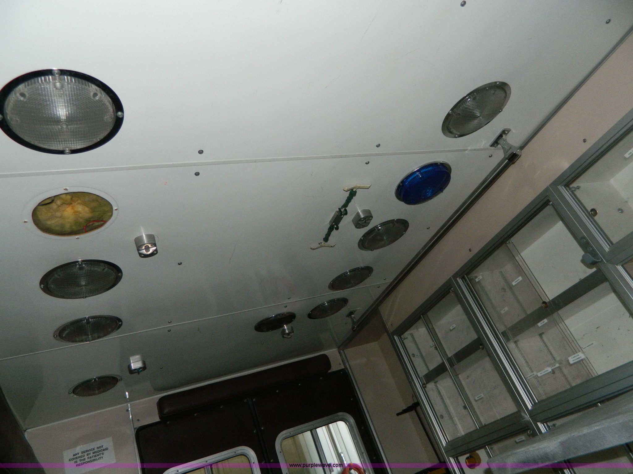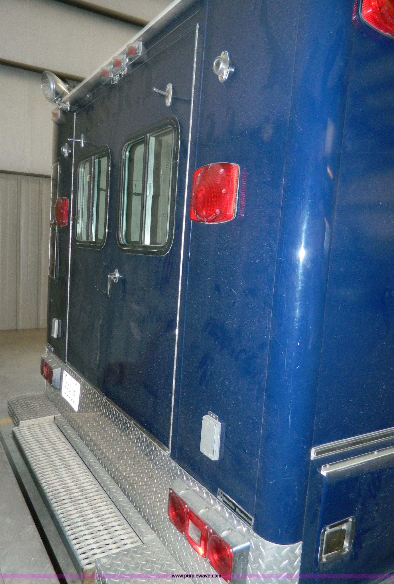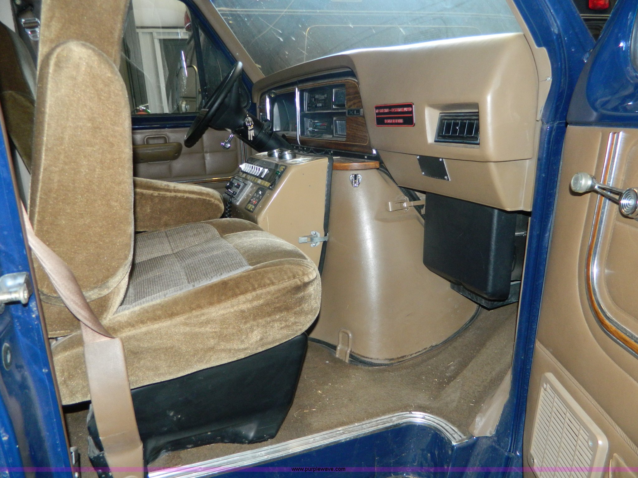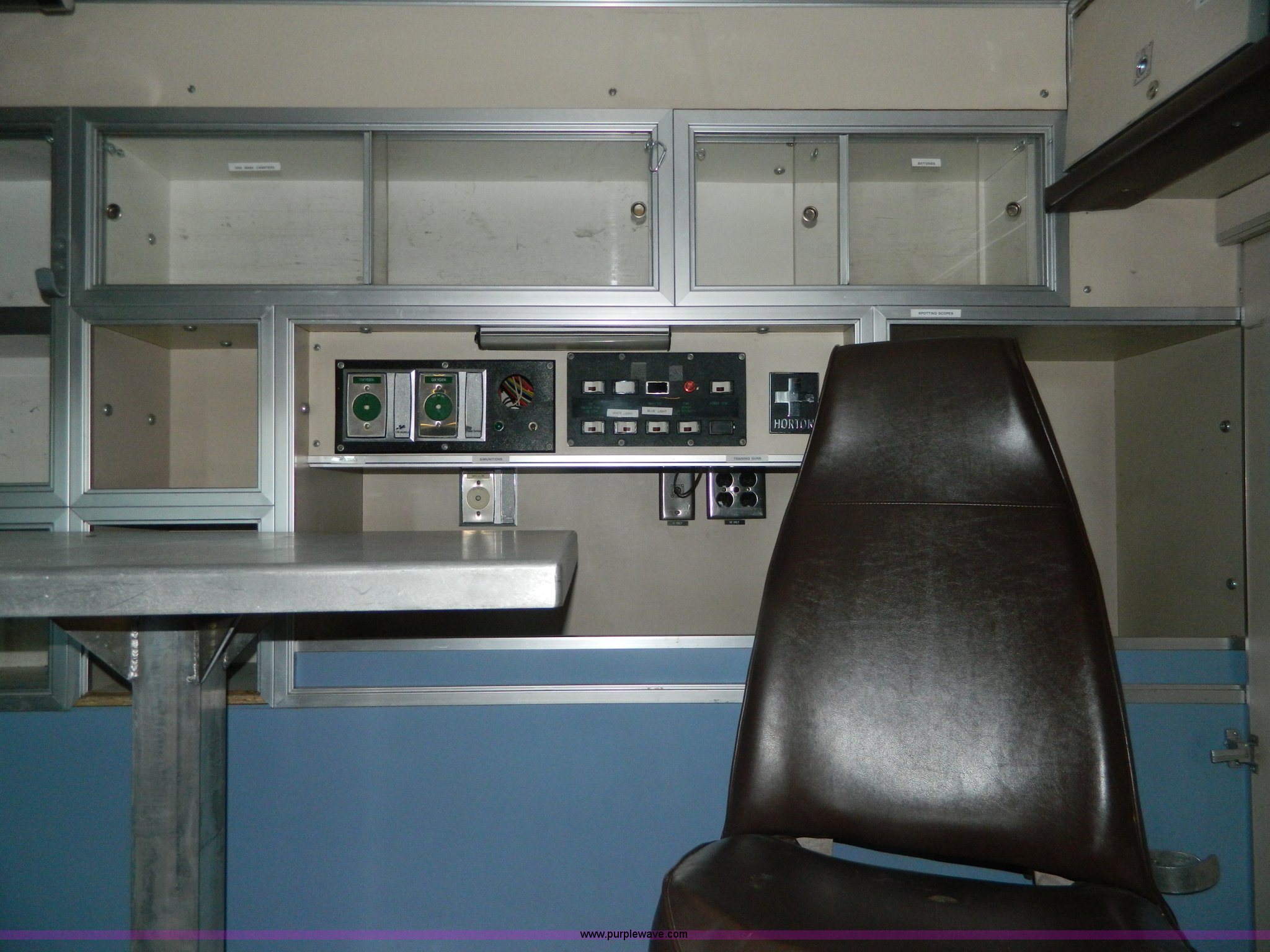 Purple Wave is selling a used Fire Truck or Emergency Vehicle in Kansas. This item is a 1989 Ford Econoline E350 ambulance with the following: 47,928 miles on odometer, Actual Mileage Unknown, 7.3L V8 OHV 16V diesel engine, Automatic transmission, AC and heat, Cruise, AM/FM/cassette, Manual windows and locks, Cloth interior, Vanner Series 30 charger, 500 MR conversion, SVP electronic siren, Code 3 light bar, LT215/85R16 tires, GVWR 10,000 lbs, Engine has fuel leak when running, Hard to start, Unknown fuel issue, Aluminum center table not included, Decal residue