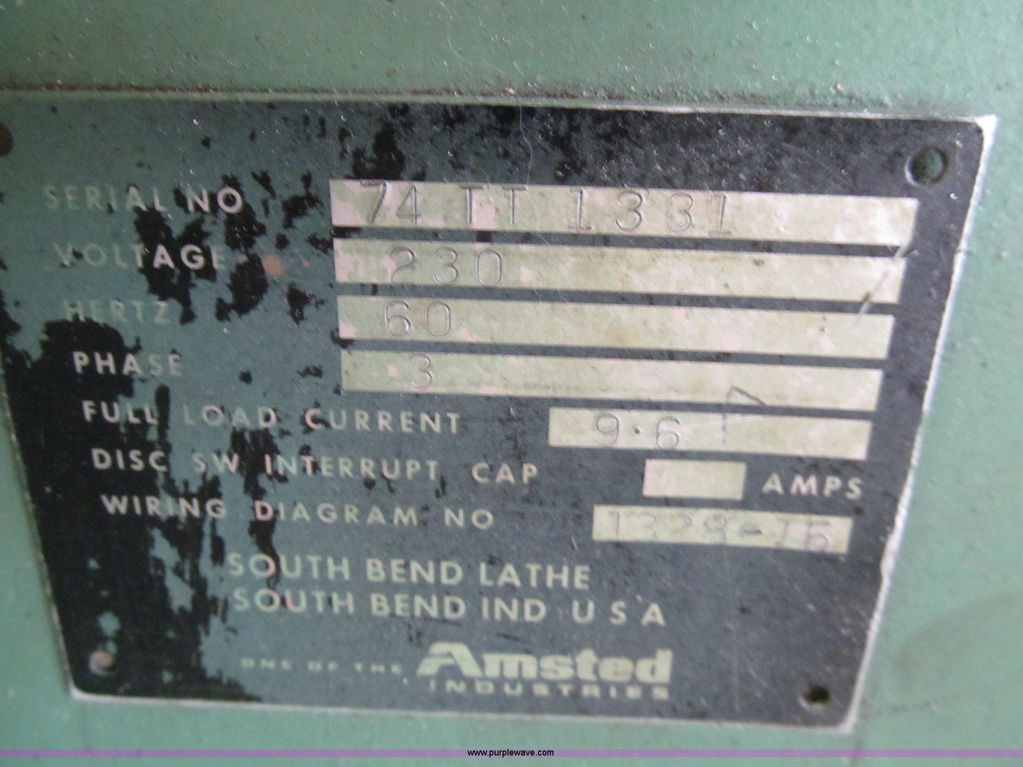 Purple Wave is selling a used Lathe CNC in Kansas. This item is a 1975 South Bend Fourteen metal lathe with the following: 230V, 60 Hz, Three phase, Serial 74TT1331
