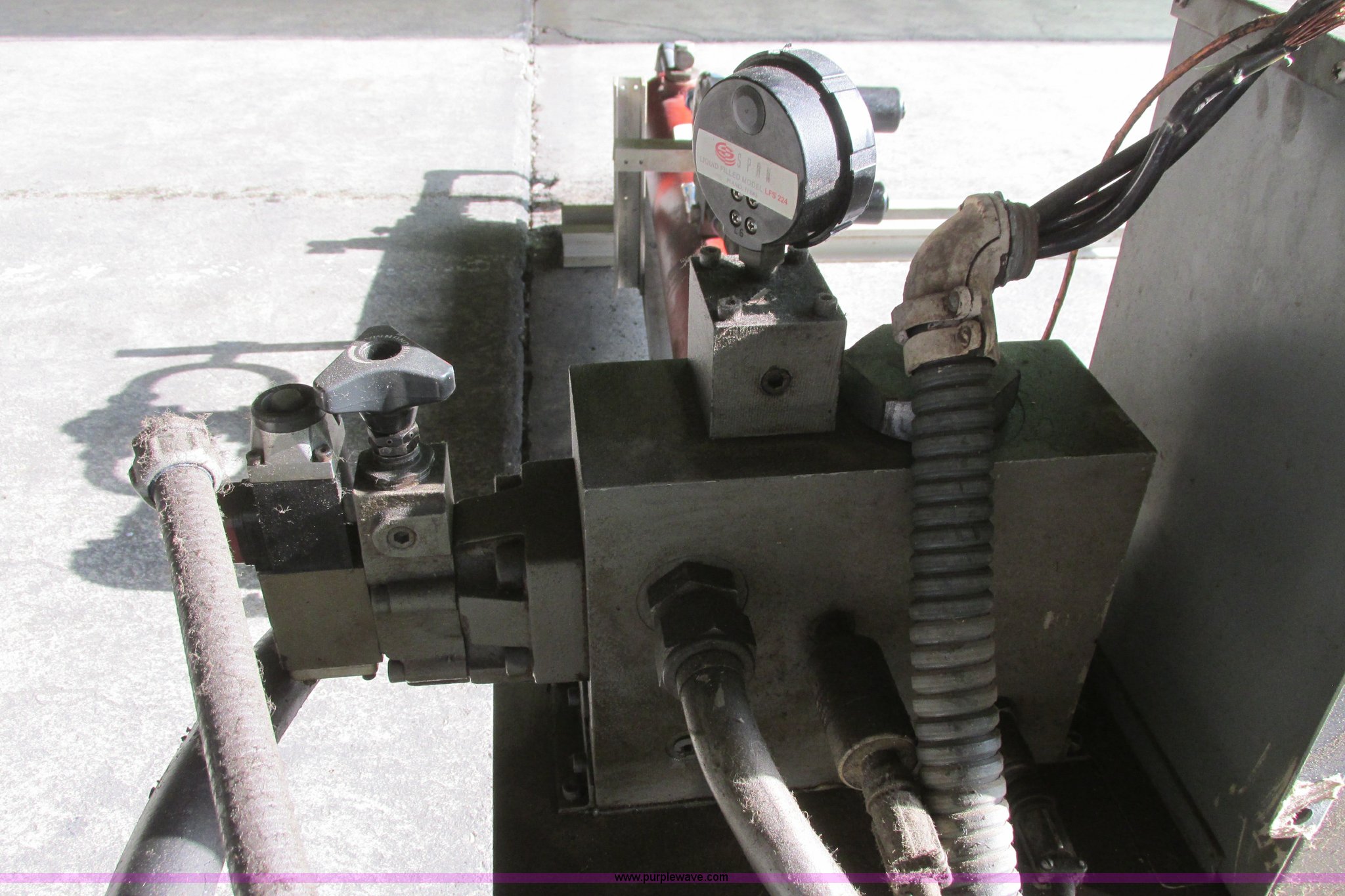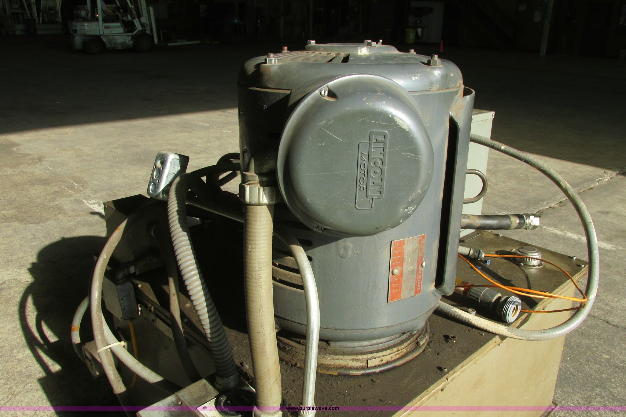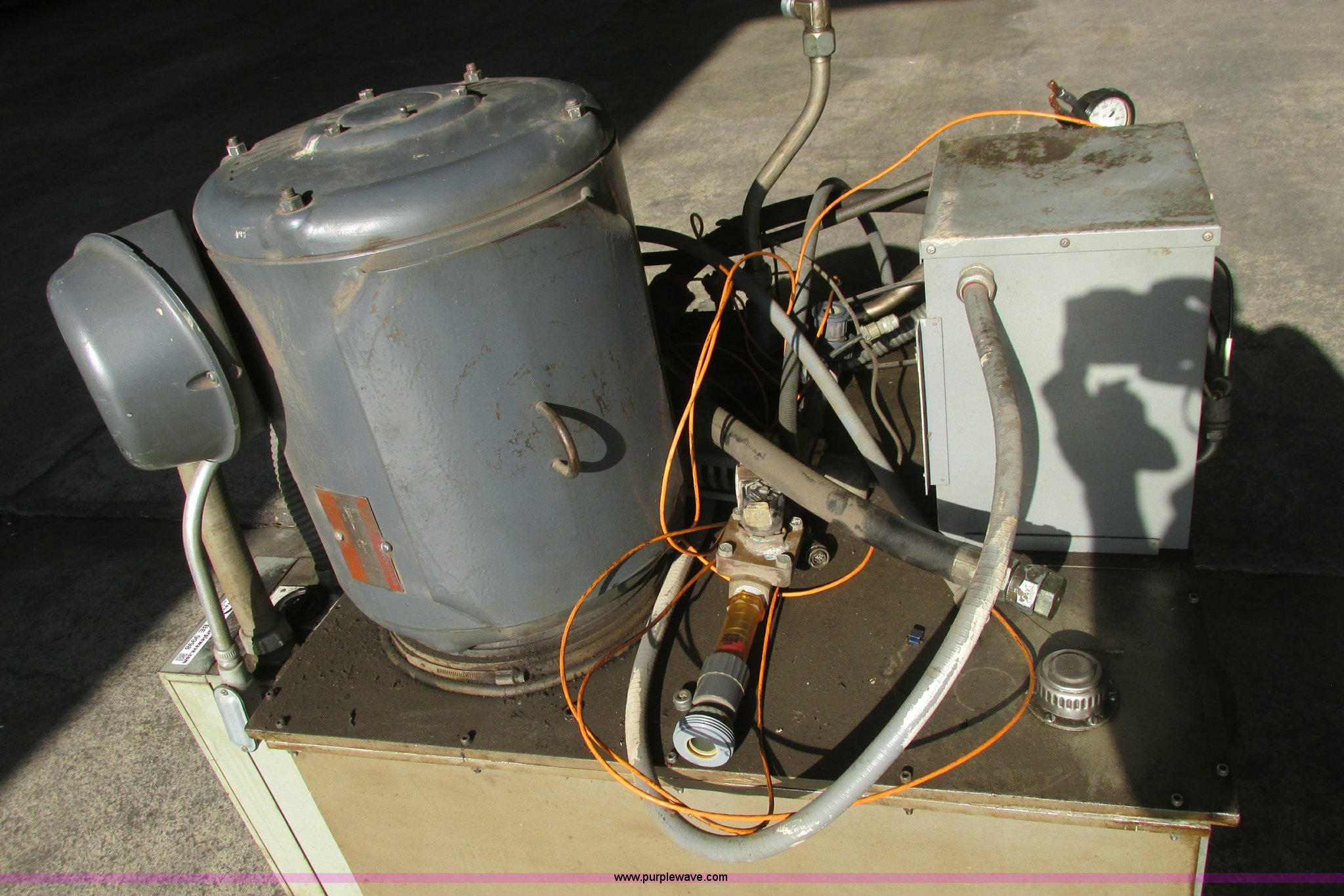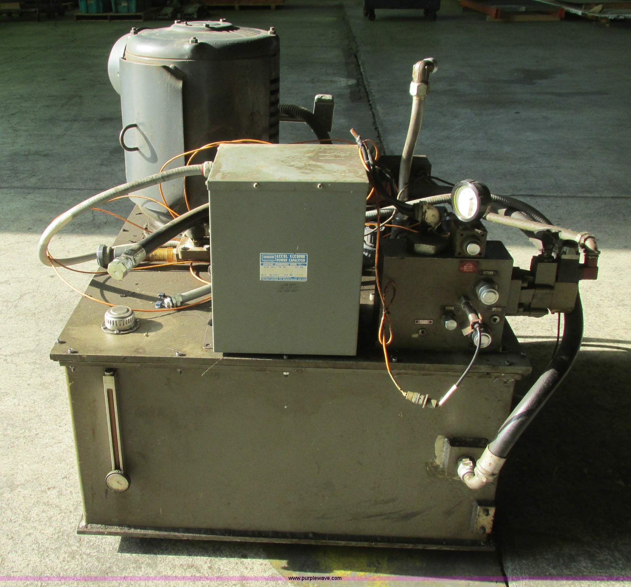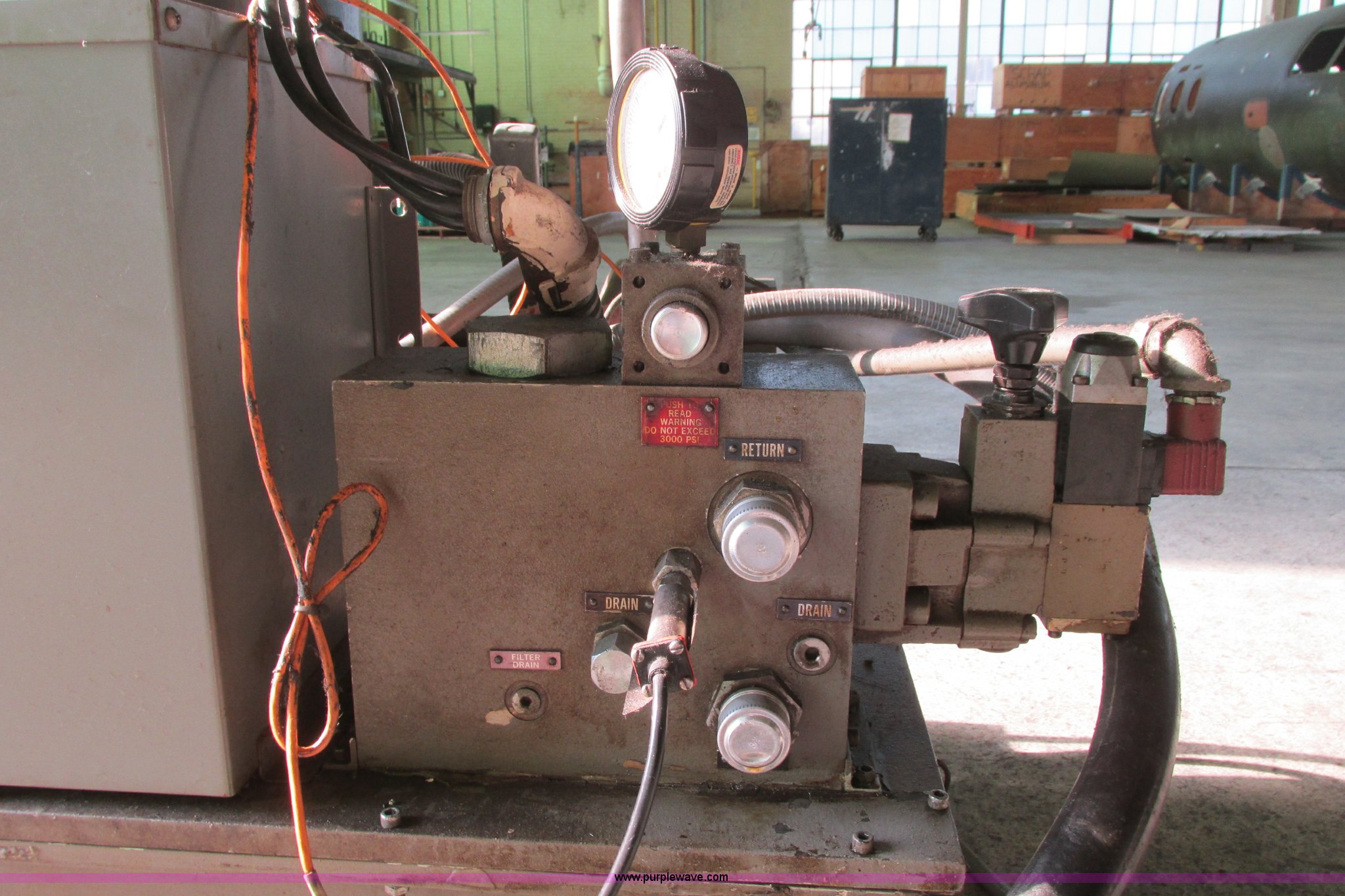 Purple Wave is selling a used Tools in Kansas. This item is a Instron hydraulic power supply with the following: Model 210-20, 22,943 hours on meter, Lincoln 40 HP motor, 230/460V, Three phase, 1,765 RPM, 100/50 amp, Lincoln code TV-3594, Serial 2281053, GE Control 200 Line starter, 80 gallon hydraulic reservoir, Basco head exchanger, Size 06048, Shell 300, Tube 150, Max WIP psi, 300 degree Fahrenheit max temperature, P/N 2A05A06048, Operational when removed from service in 2013
