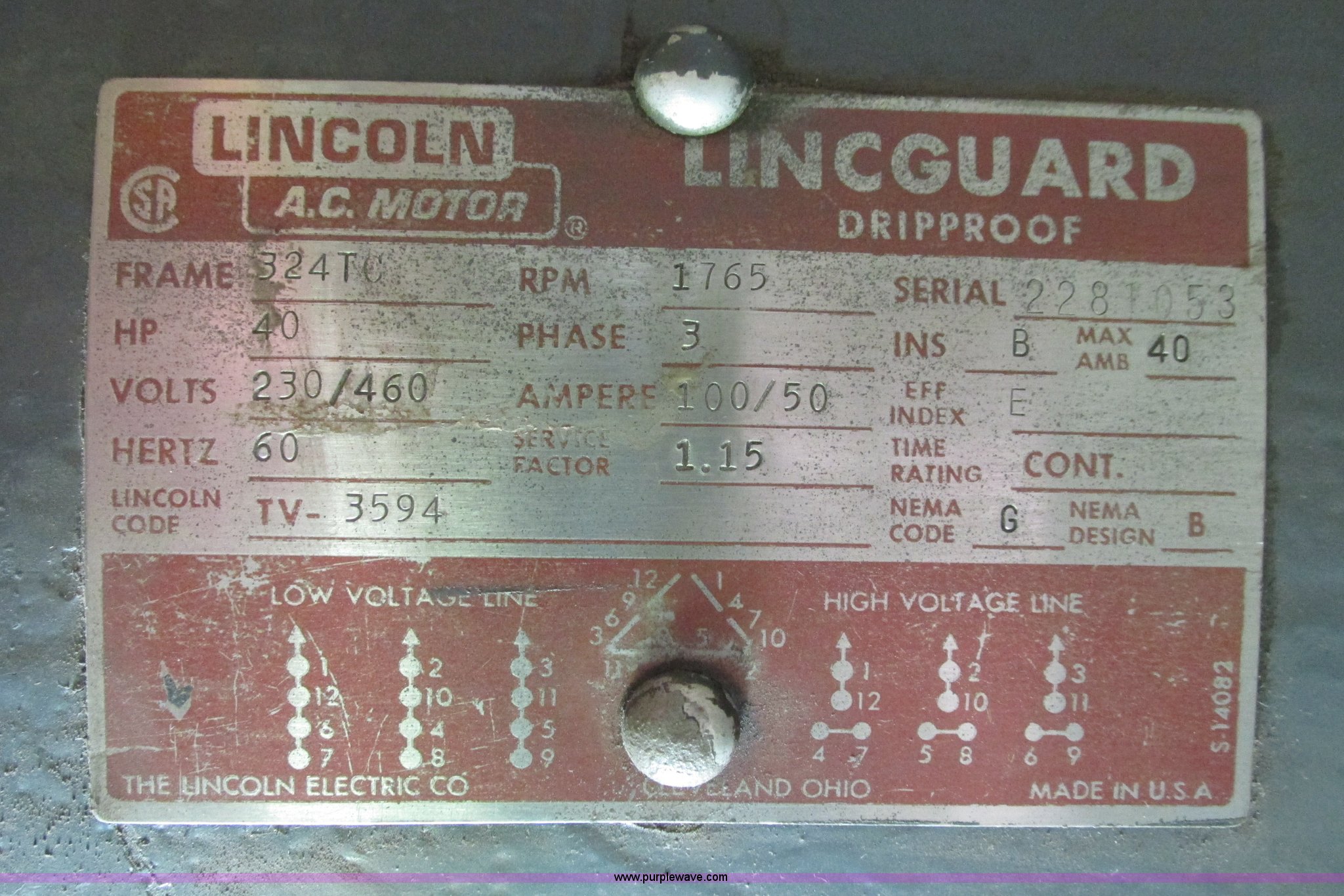 - Lincoln 40 HP motor