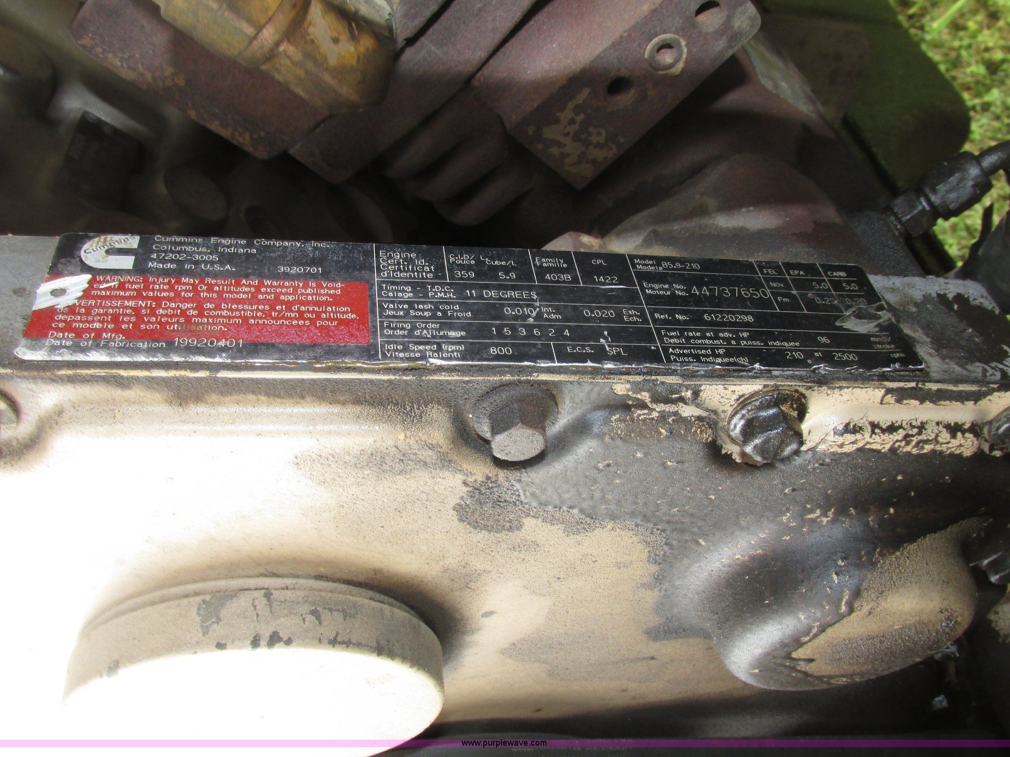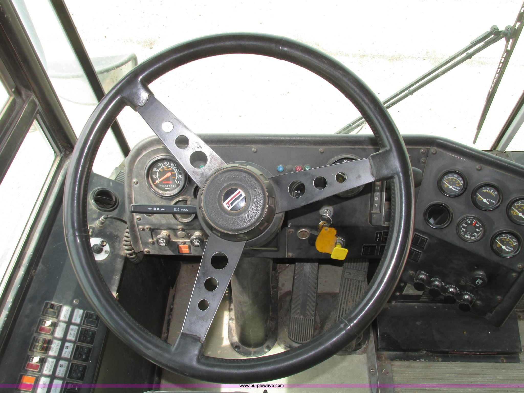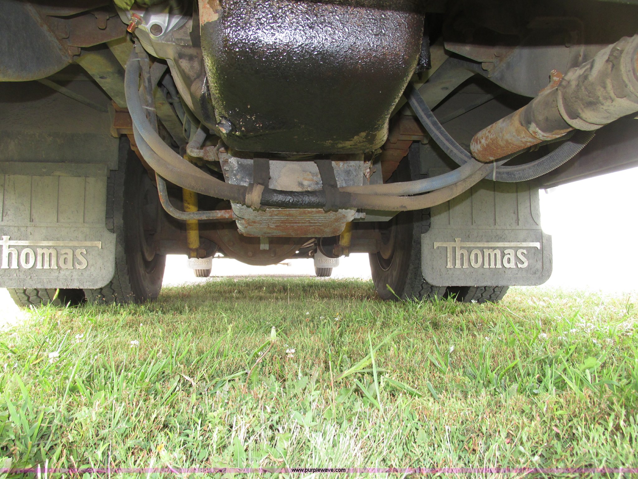 1992 Thomas Built Saf-T-Liner MVP school bus. 232,812 miles on odometer, 8,370 hours on meter, Cummins 210 5.9L L6 turbo diesel engine Serial 44737650, Allison MT643RM automatic transmission Re-manufactured, Serial 9208075271, Heat, Tilt, Panasonic B520 AM/FM/cassette, Manual windows, Vinyl interior, Overhead lighting, Air suspension seat, Heated mirrors, (2) recirculation fans, 72 passenger capacity, Bergstrom 12V bus heater 101,000 BTU, Part# 710071, Serial 204001592, Roof vents, (2) roof emergency egress, Rear side emergency egress, (4) side emergency egress, Stop sign, Strobe light, Electrical access entry door, Overhead storage racks, Overhead emergency equipment, First aid kit, Health related supplies and clean up kit, Fire extinguisher , Safety triangles, Mudflaps, Tow hooks, Spring suspension, Air brakes, Thomas F3W-1200 front axle, Eaton 22123 rear axle, 11R22.5 tires, GVWR 30,000 lbs, FAWR 11,000 lbs, RAWR 19,000 lbs, Body ID # 12325-72903-ER-1309S, Interior/exterior cosmetic damage, Extension cord not included, Contents not included. 1T79R4B26N1112325. View equipment video. Holdrege Public Schools. 505 14th Ave. Holdrege, NE 68949