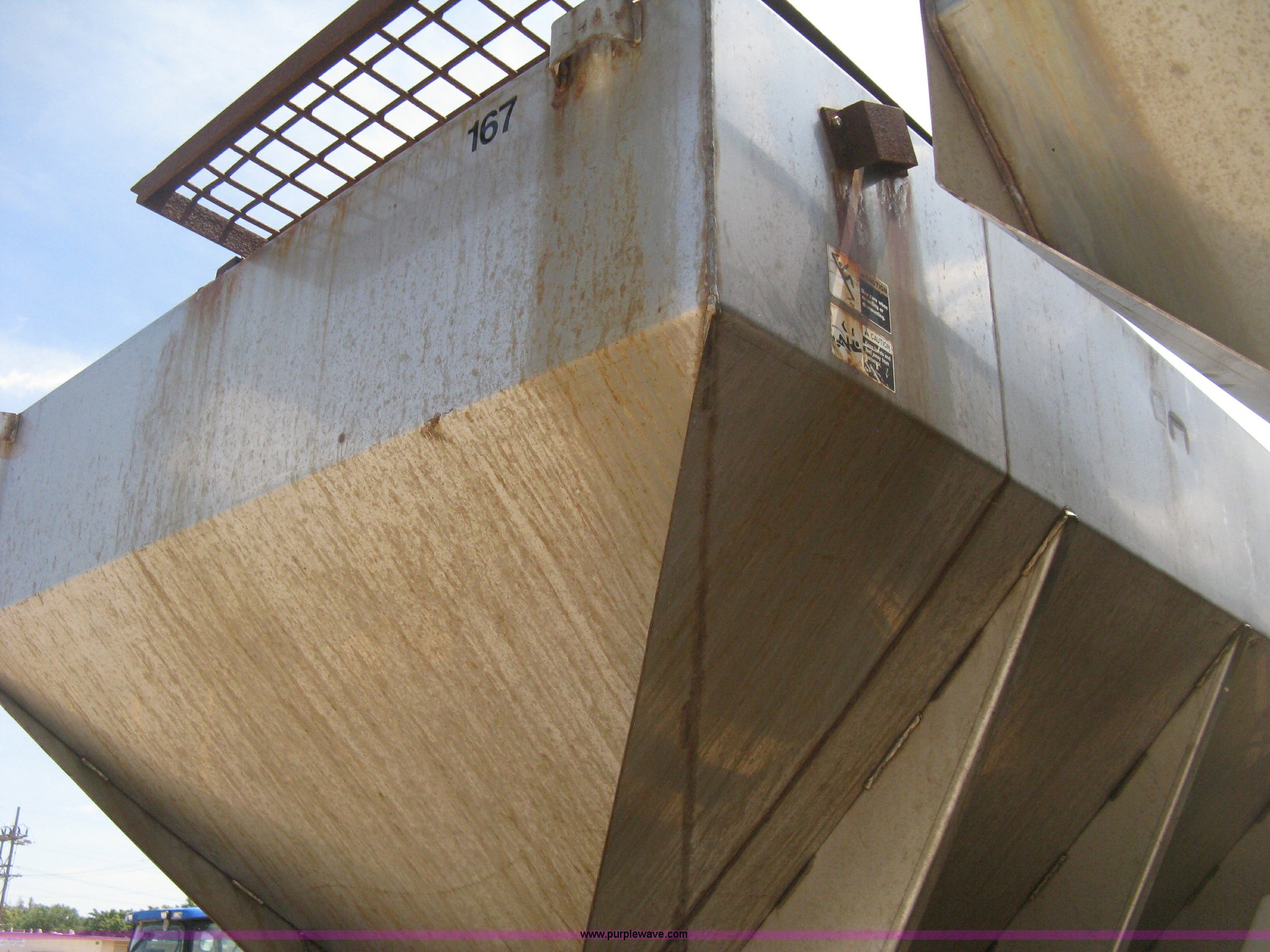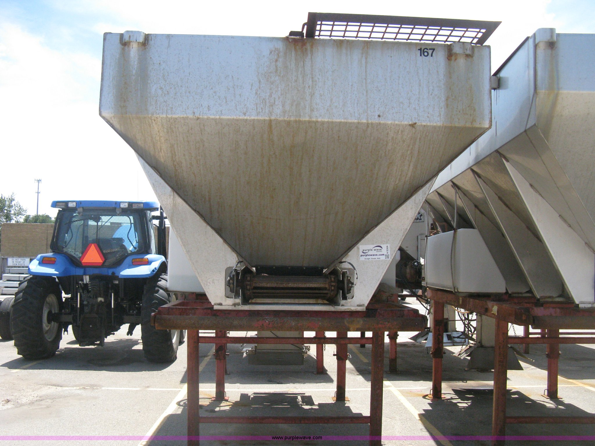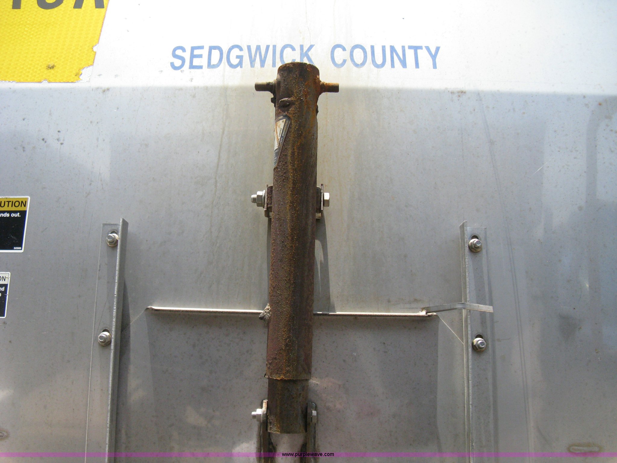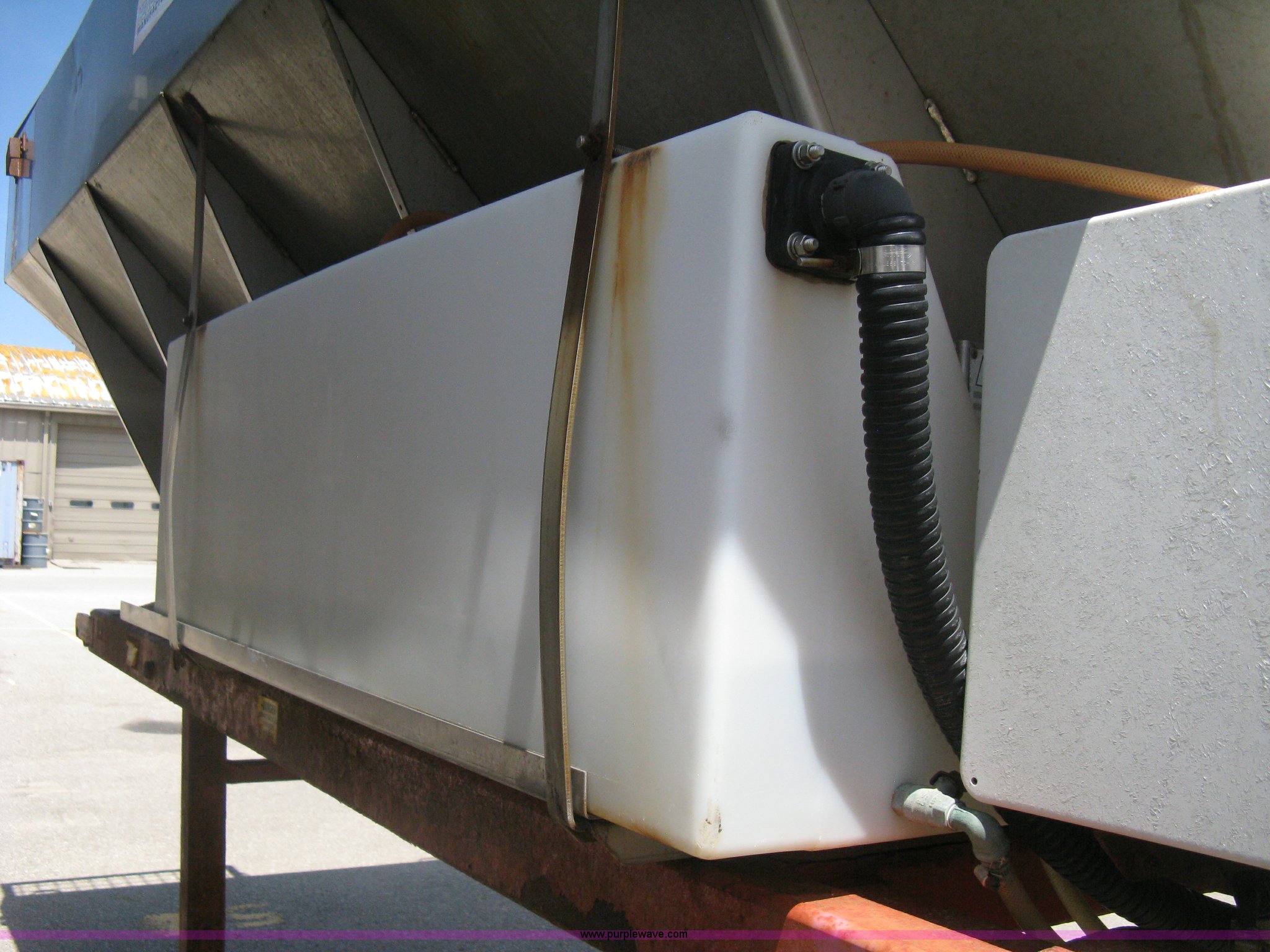Henderson slide-in salt/sand spreader. Model WSHX14X60X304, 13.5 cu. yd. capacity, Stainless steel, Hydraulic drive spinner, (2) poly side mount brine tanks, Stand alone frame stand Front slide-in roller, Top grates, Serial WSH21438, Unit 1370. Sedgwick County. 1021 Stillwell St. Wichita, KS 67213