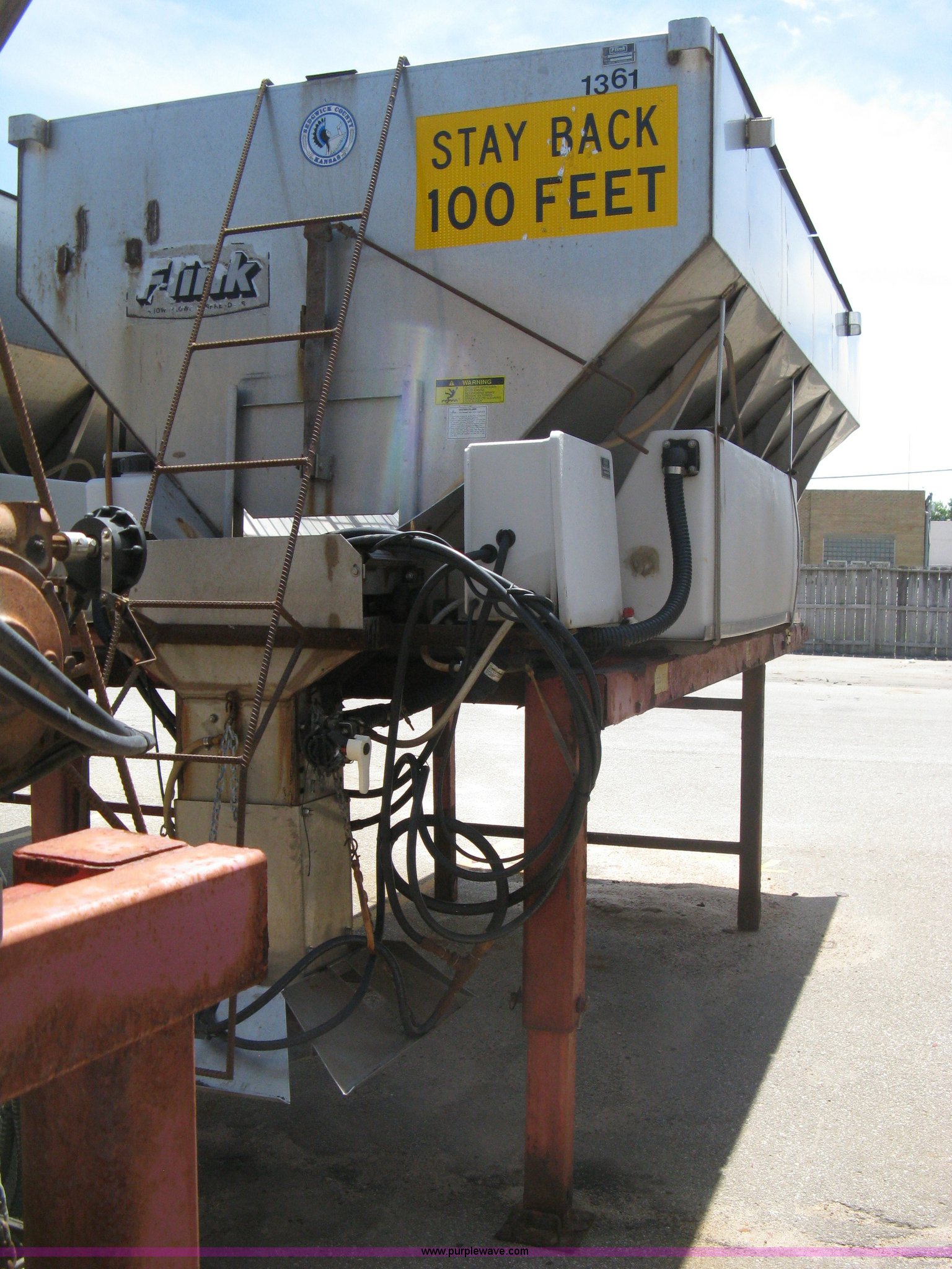 Purple Wave is selling a used Truck Part and Attach. in Kansas. This item is a Flink slide-in salt/sand spreader with the following: Model 8615-S4, 13.5 cu. yd. capacity, Stainless steel, Hydraulic drive spinner, (2) poly side mount brine tanks, Stand alone frame stand, Front slide-in roller, Top grates, Serial 8236, Unit 1361