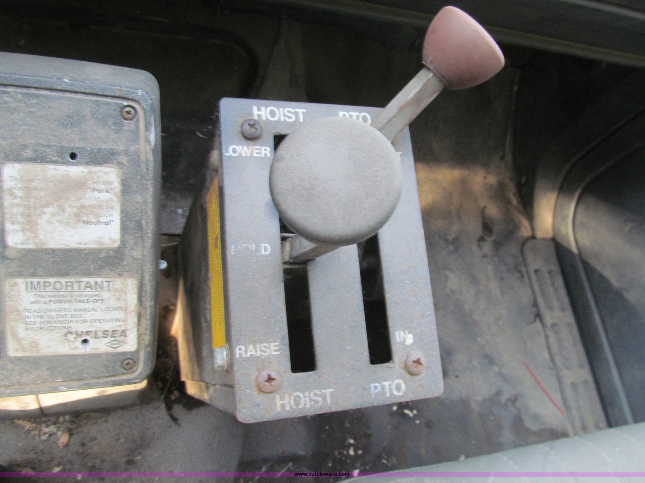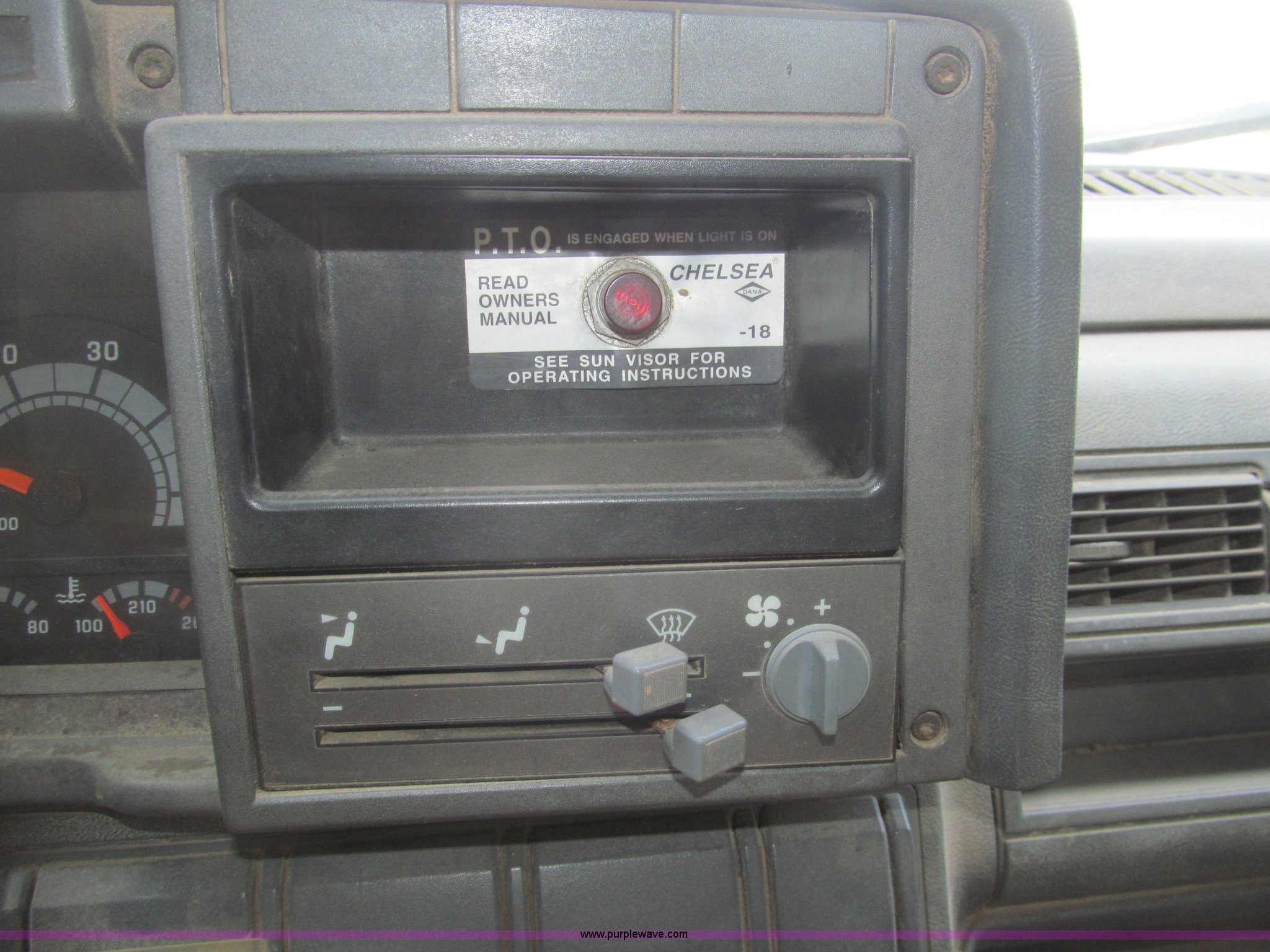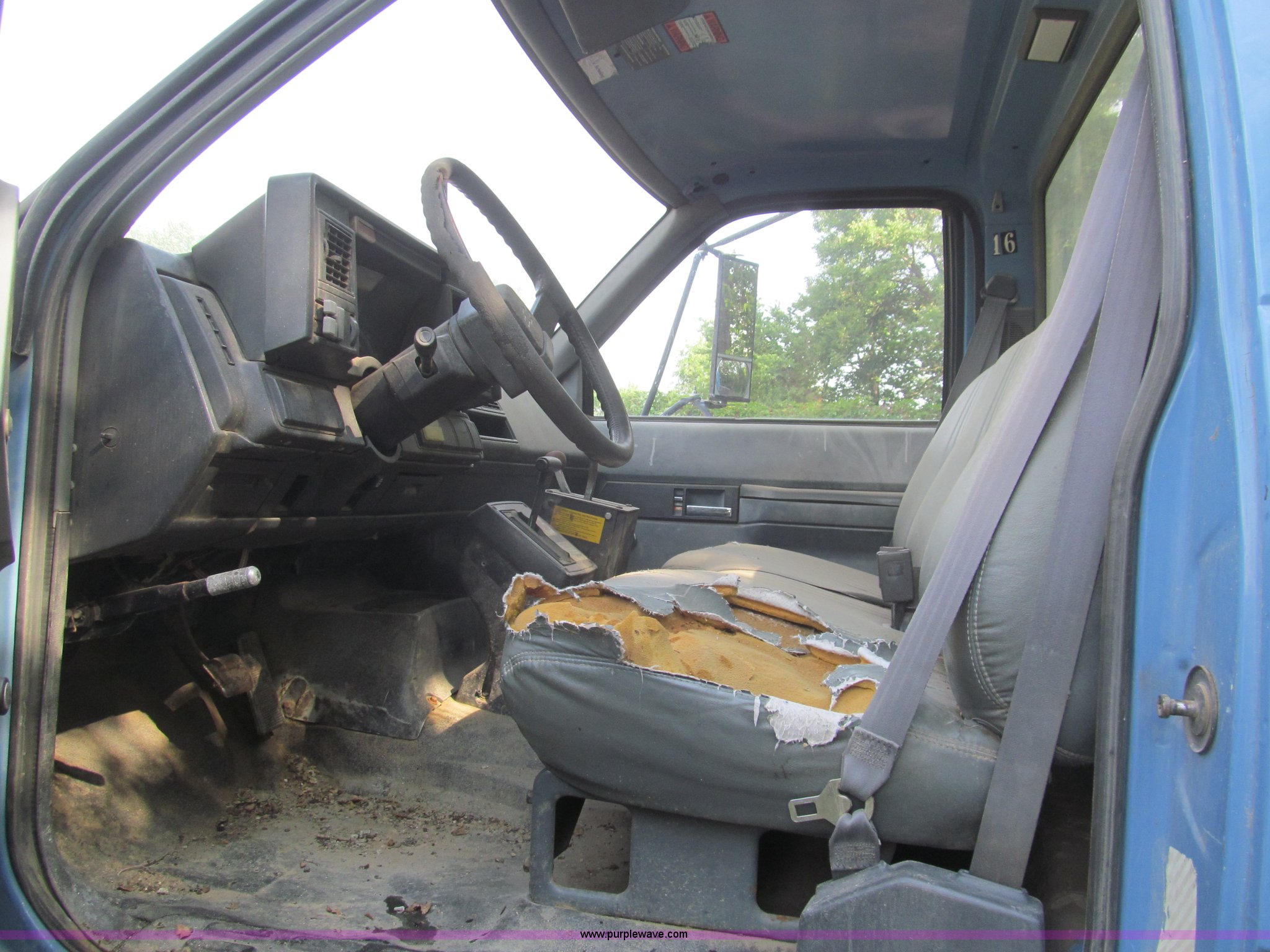 Purple Wave is selling a used Truck Chassis in Kansas. This item is a 1997 Chevrolet C6500 truck cab and chassis with the following: 41,271 miles on odometer, 7.4L V8 diesel engine, Automatic transmission, Manual windows and locks, Chelsea PTO, No pump, 50 gallon fuel tank, Spring suspension, 11R22.5 tires, Driver's window broken, Interior seat damage