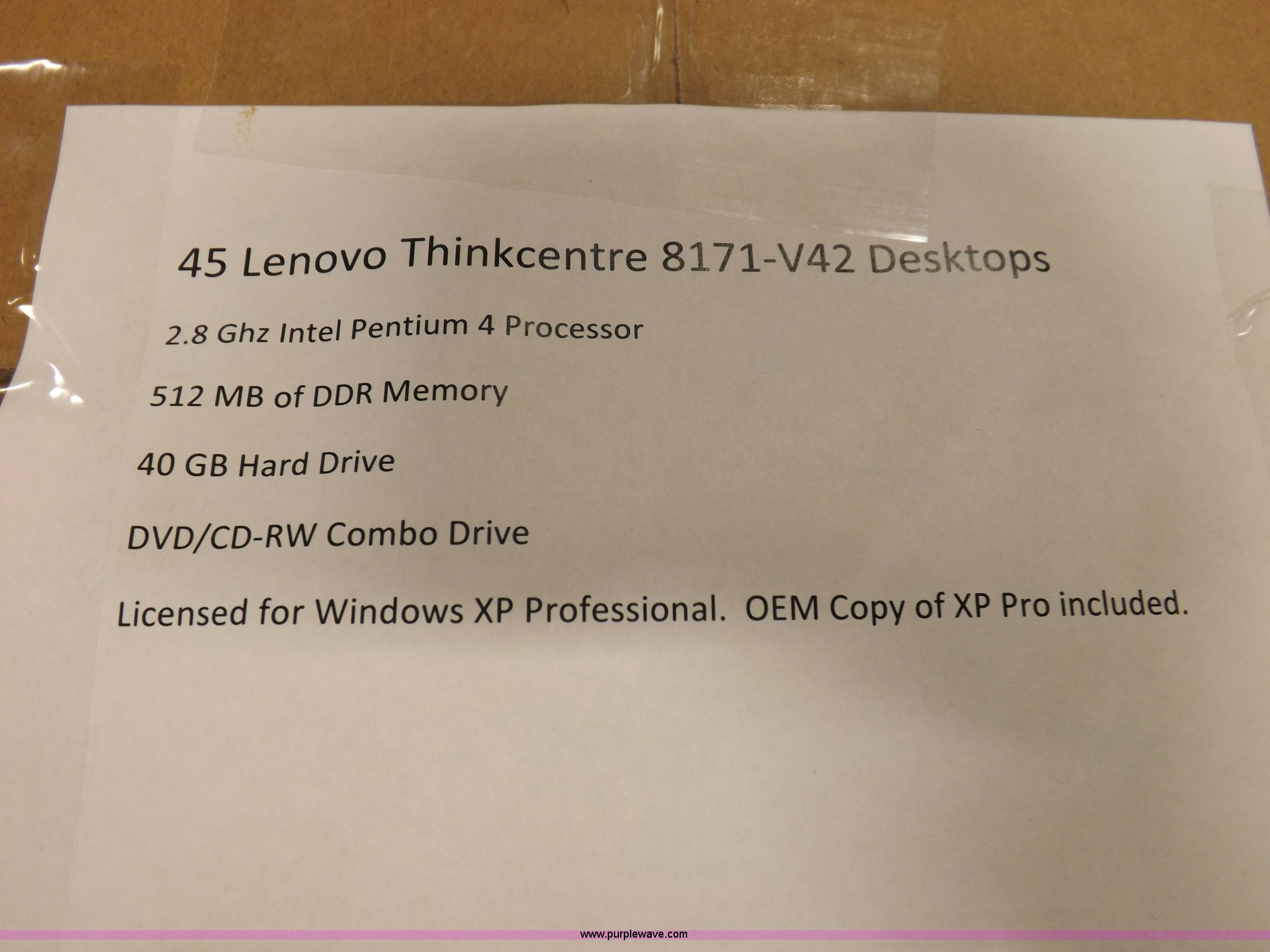 Purple Wave is selling a used Computers in Kansas. This item is a (45) Lenovo ThinkCentre 8171-V42 desktop computers with the following: (45) Lenovo ThinkCentre 8171-V42 desktop computers. USD 457. 1312 N 7th. Garden City, KS 67846