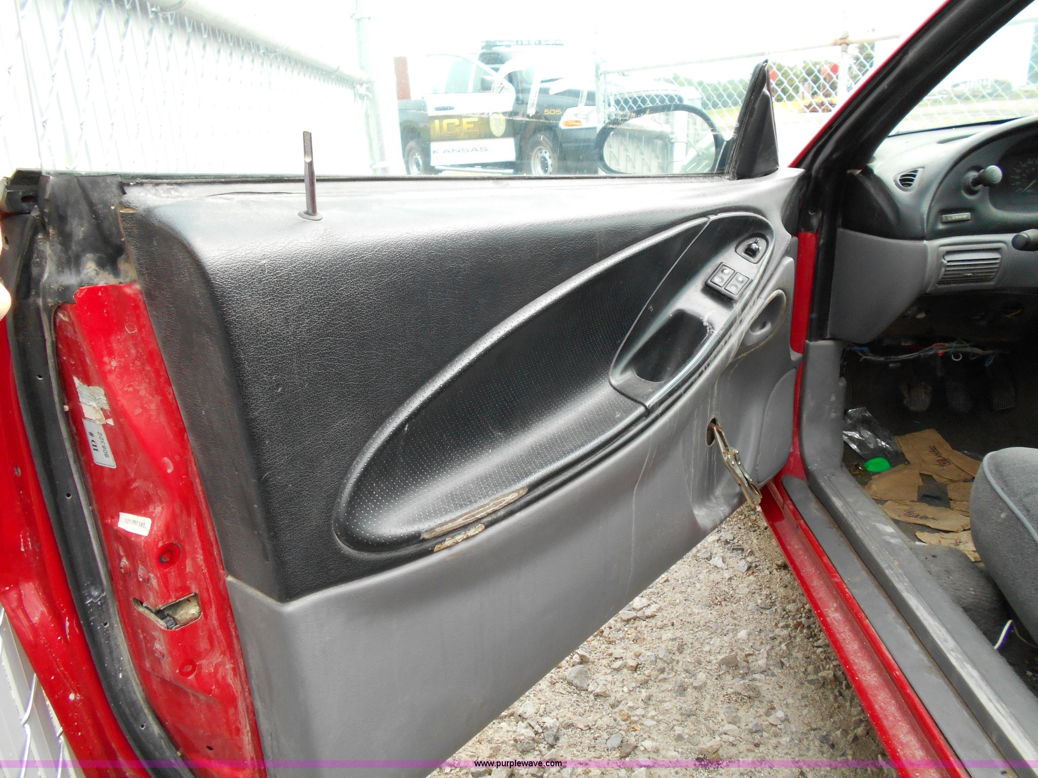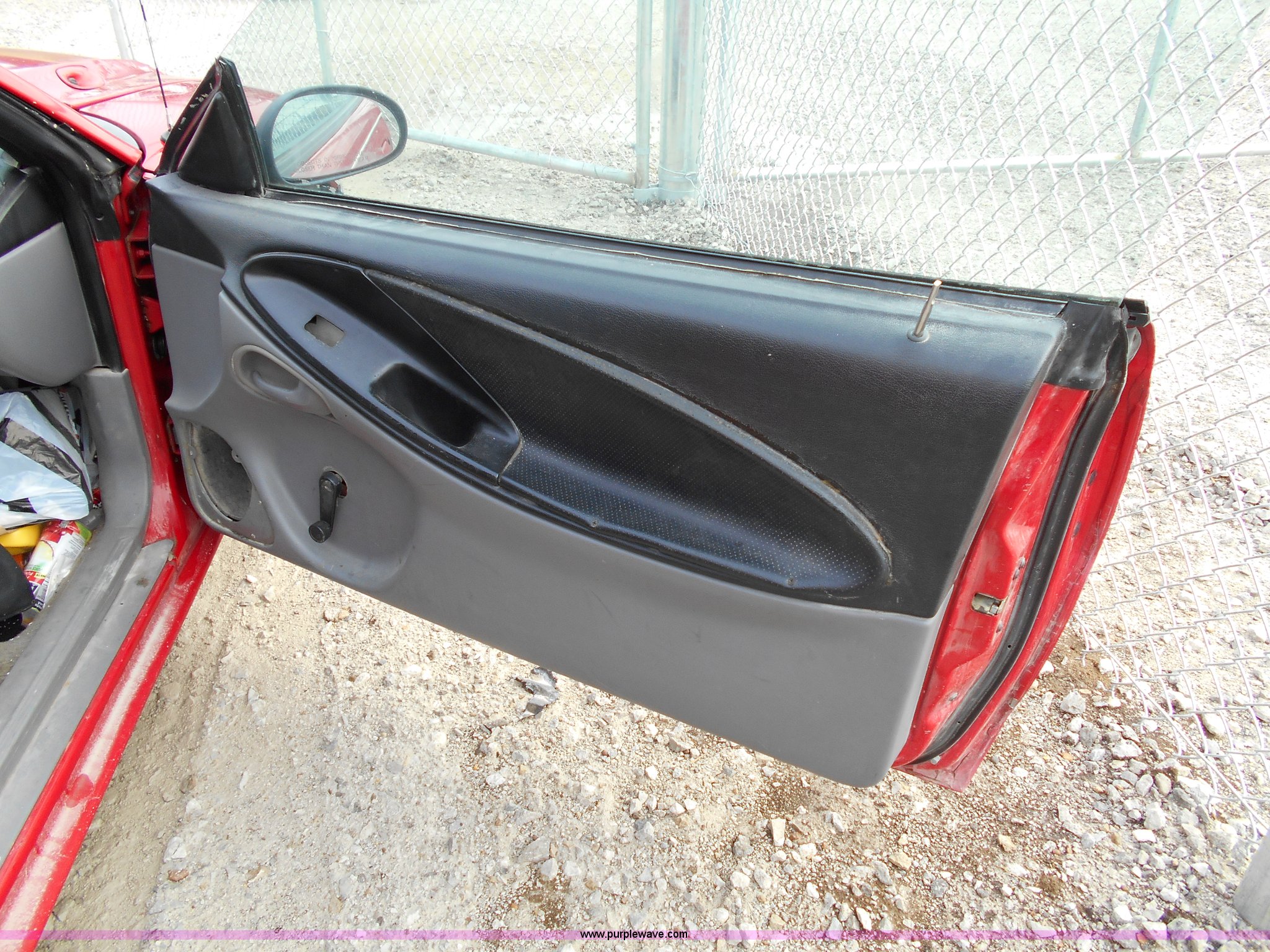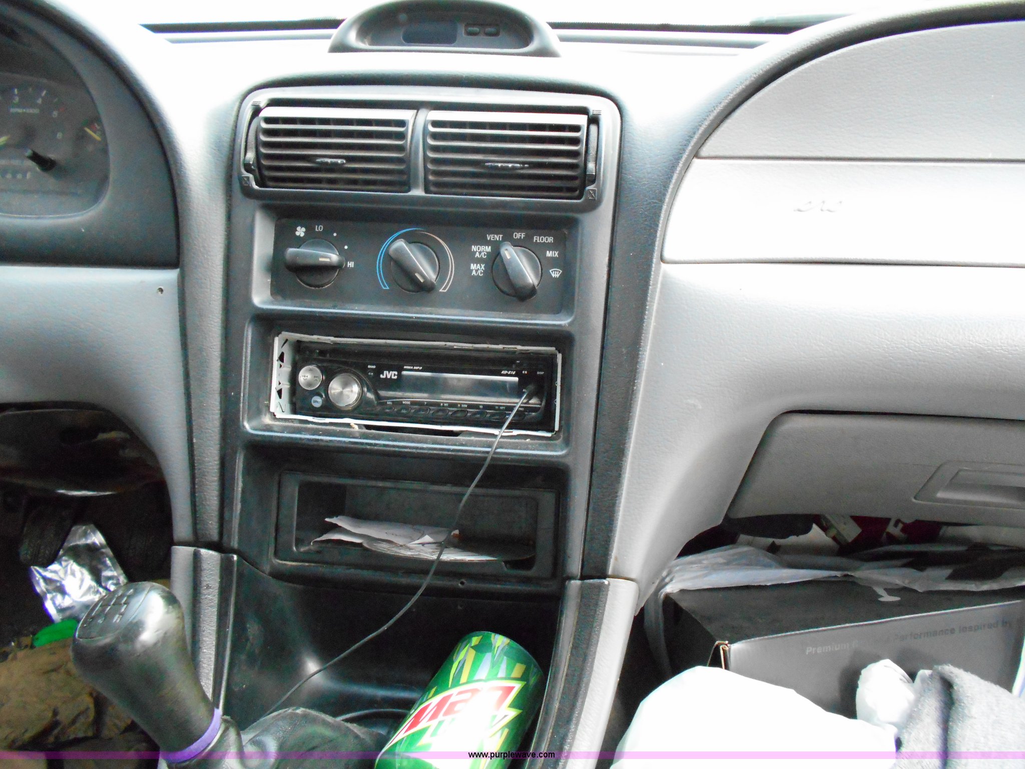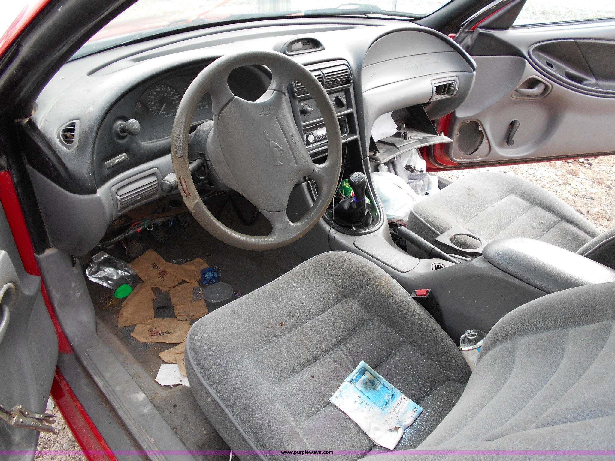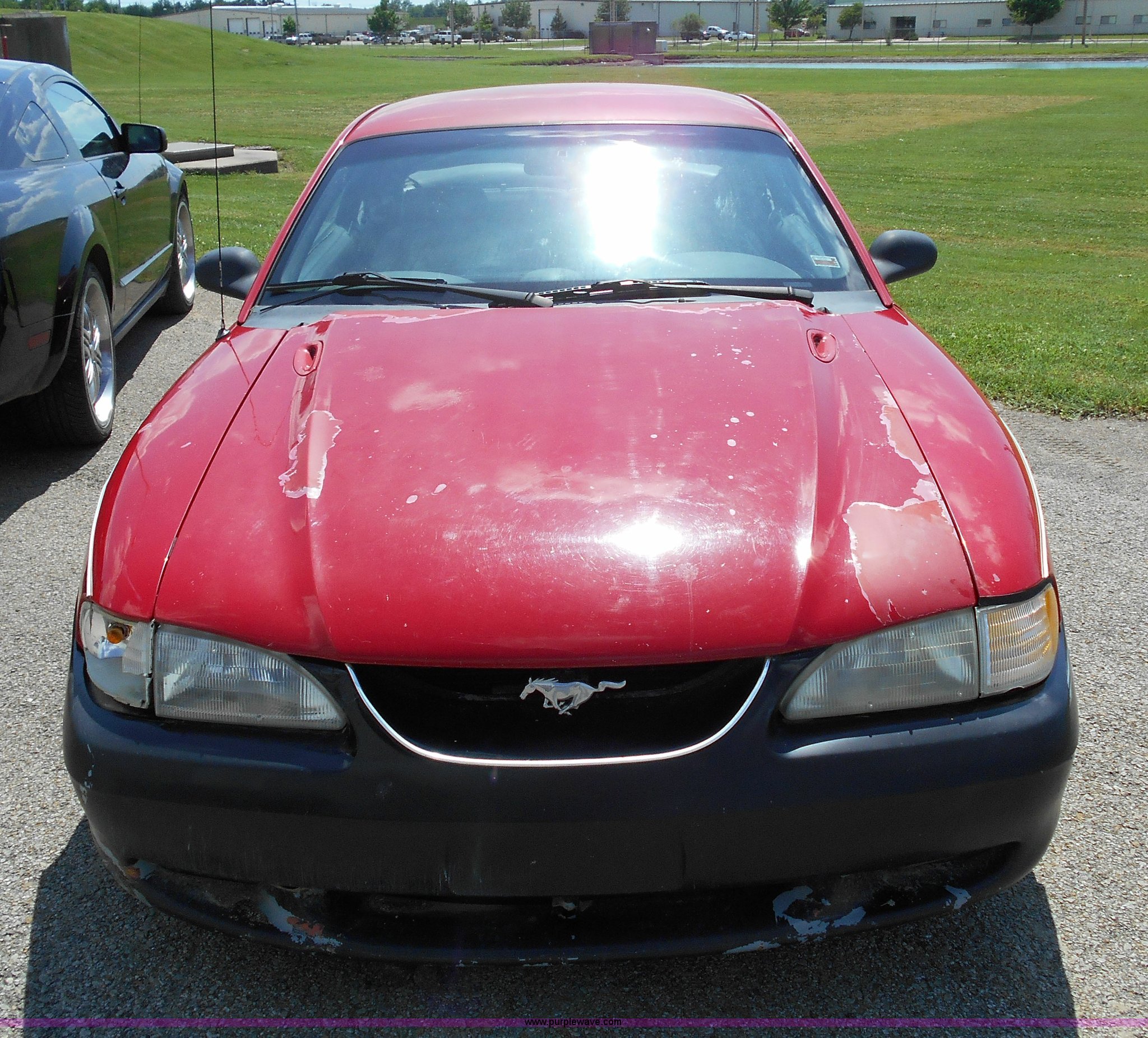 Purple Wave is selling a used Passenger Vehicle in Kansas. This item is a 1995 Ford Mustang with the following: 103,409 miles on odometer, 3.8L V6 OHV 12V gas engine, Five speed manual transmission, AC and heat, AM/FM/CD, Manual windows, Power mirrors, Cloth interior, Speaker box in rear seat, Amp included, Spoiler, 205/65R15 tires, Flat, Interior/exterior cosmetic damage, Unable to open hood to engine, Unknown operating condition, Dead battery, Paint peeling, Front passenger headlight damage, Rear driver side taillight damage