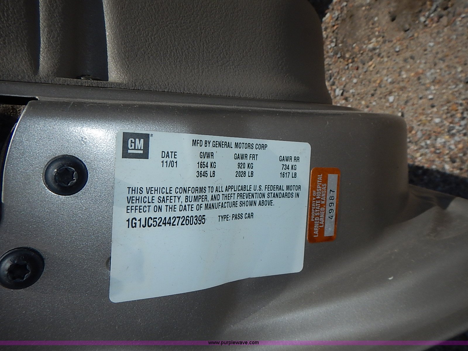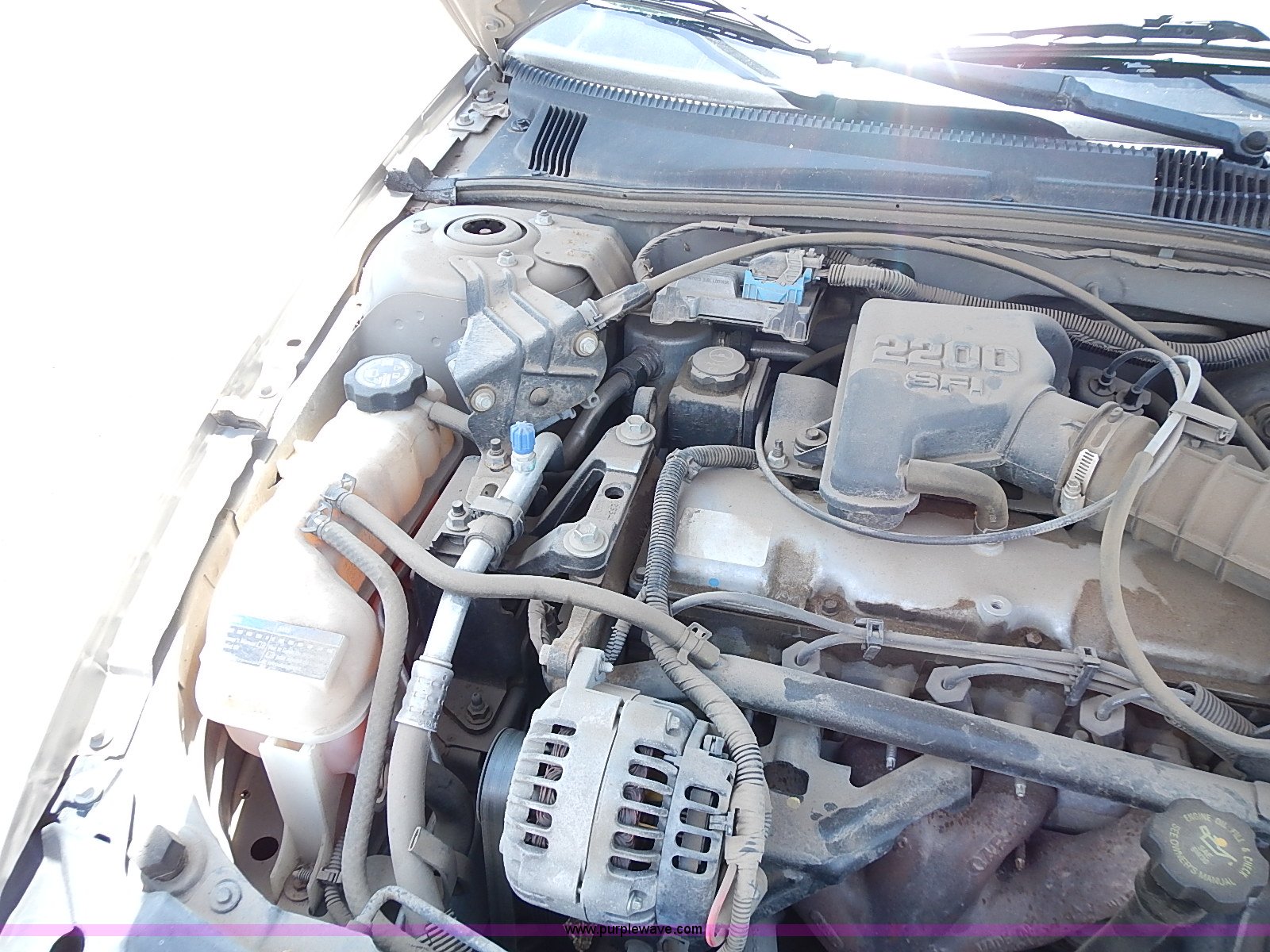 Purple Wave is selling a used Passenger Vehicle in Kansas. This item is a 2002 Chevrolet Cavalier with the following: 93,009 miles on odometer, 2.2L L4 OHV 8V gas engine, Automatic transmission, AC and heat, Tilt, Cruise, AM/FM/CD, Manual windows and locks, Cloth interior, 195/70R14 tires, Dents and scratches, Paint peeling, Cracked dash, Rust, Structural safety issue at rear tire, Frame near axle damage, Crush/crumple zone affected, Unit# 1322
