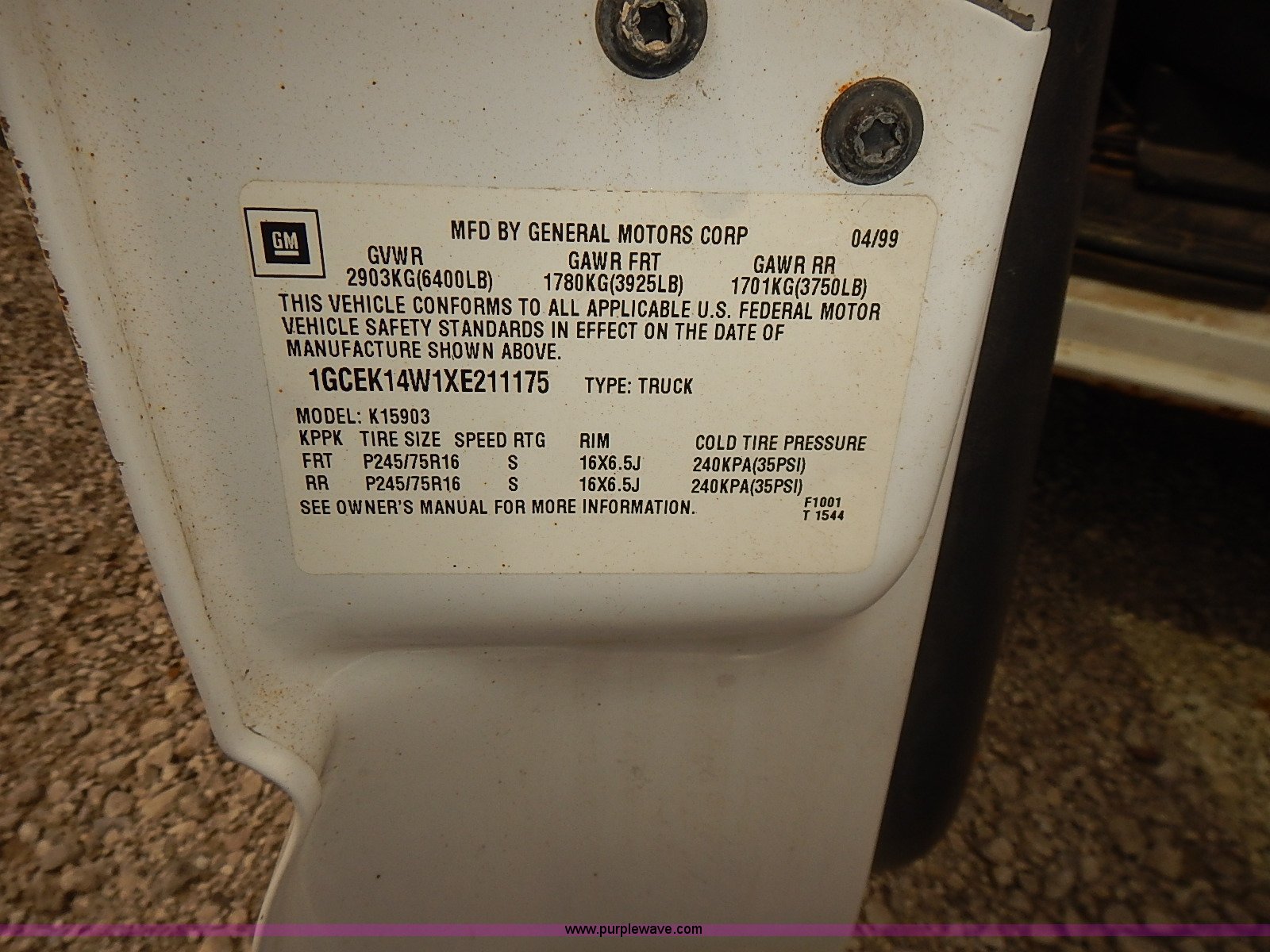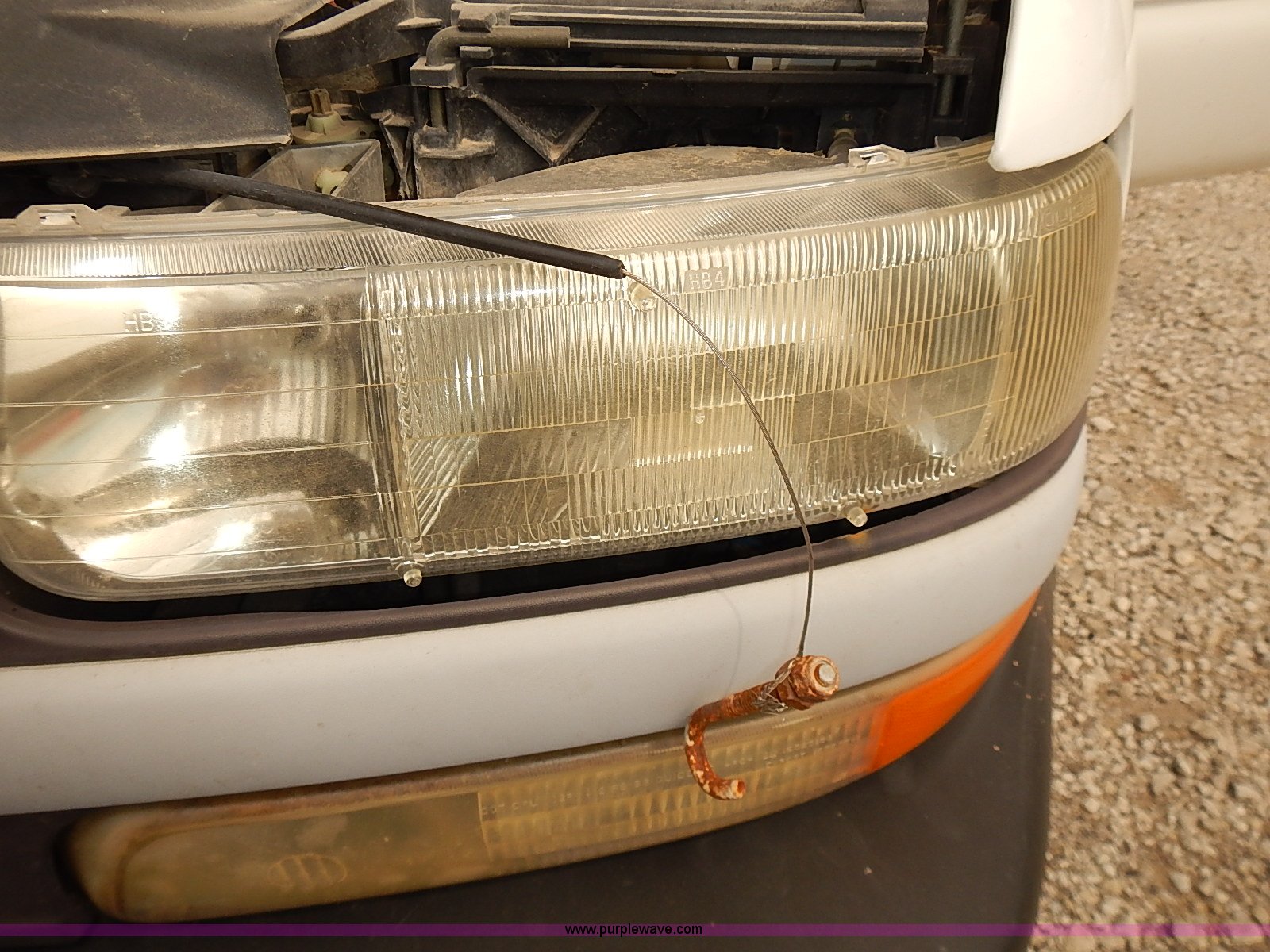 Purple Wave is selling a used 1/2 Ton Pickup or Van in Kansas. This item is a 1999 Chevrolet Silverado 1500 pickup truck with the following: 84,059 miles on odometer, 4.3L V6 OHV 12V gas engine, Automatic transmission, Four wheel drive, AC and heat, Tilt, AM/FM, Manual windows and locks, Cloth interior, Front tow hooks, Receiver hitch, 245/75R16 tires, Interior/exterior cosmetic damage, Service engine light on, Rust, Dents, Scratches, Brake line needs repaired, Hood latch needs repaired, Must be towed