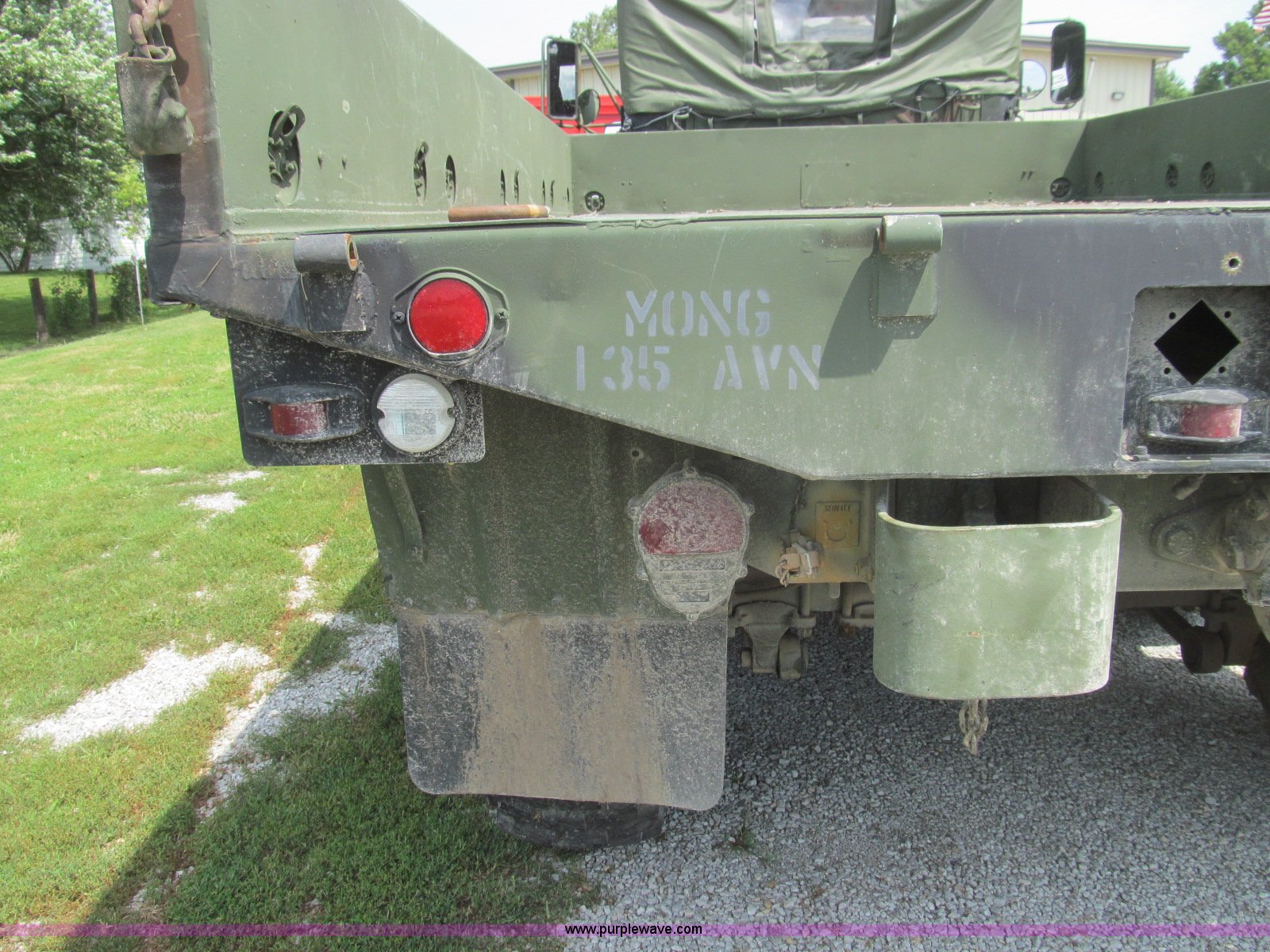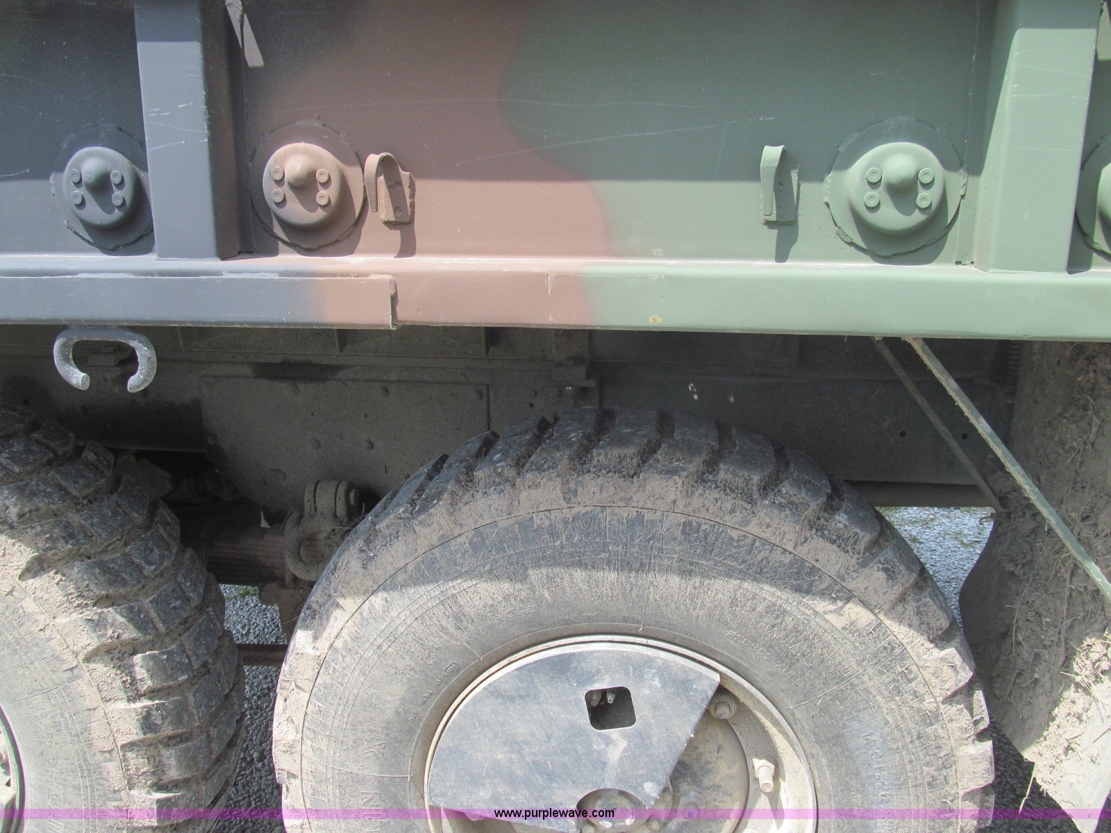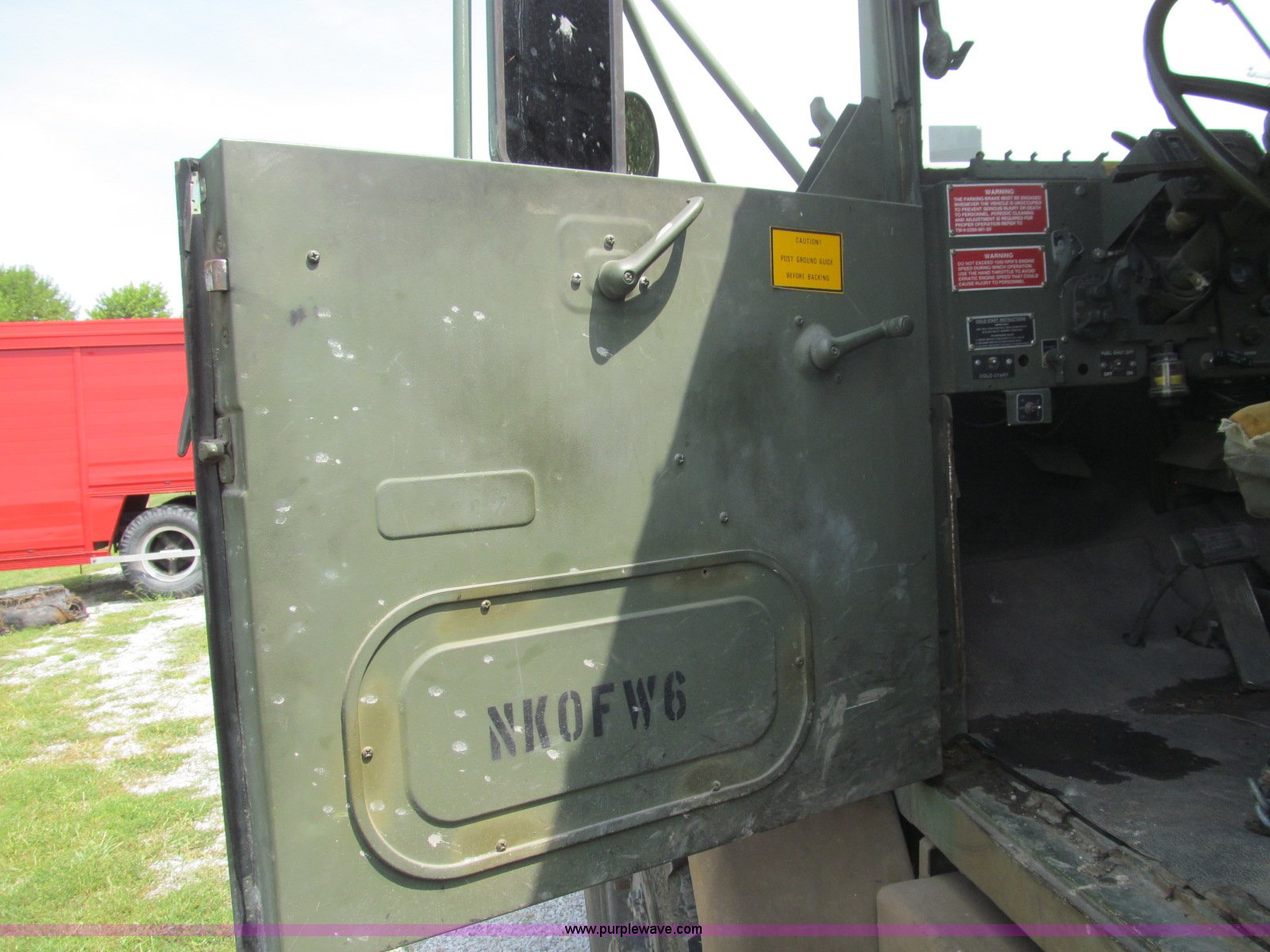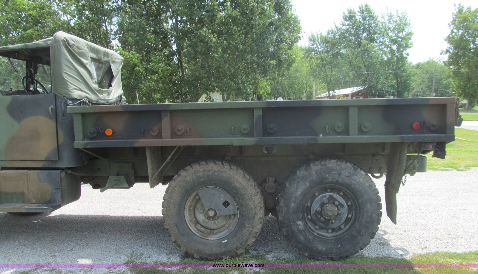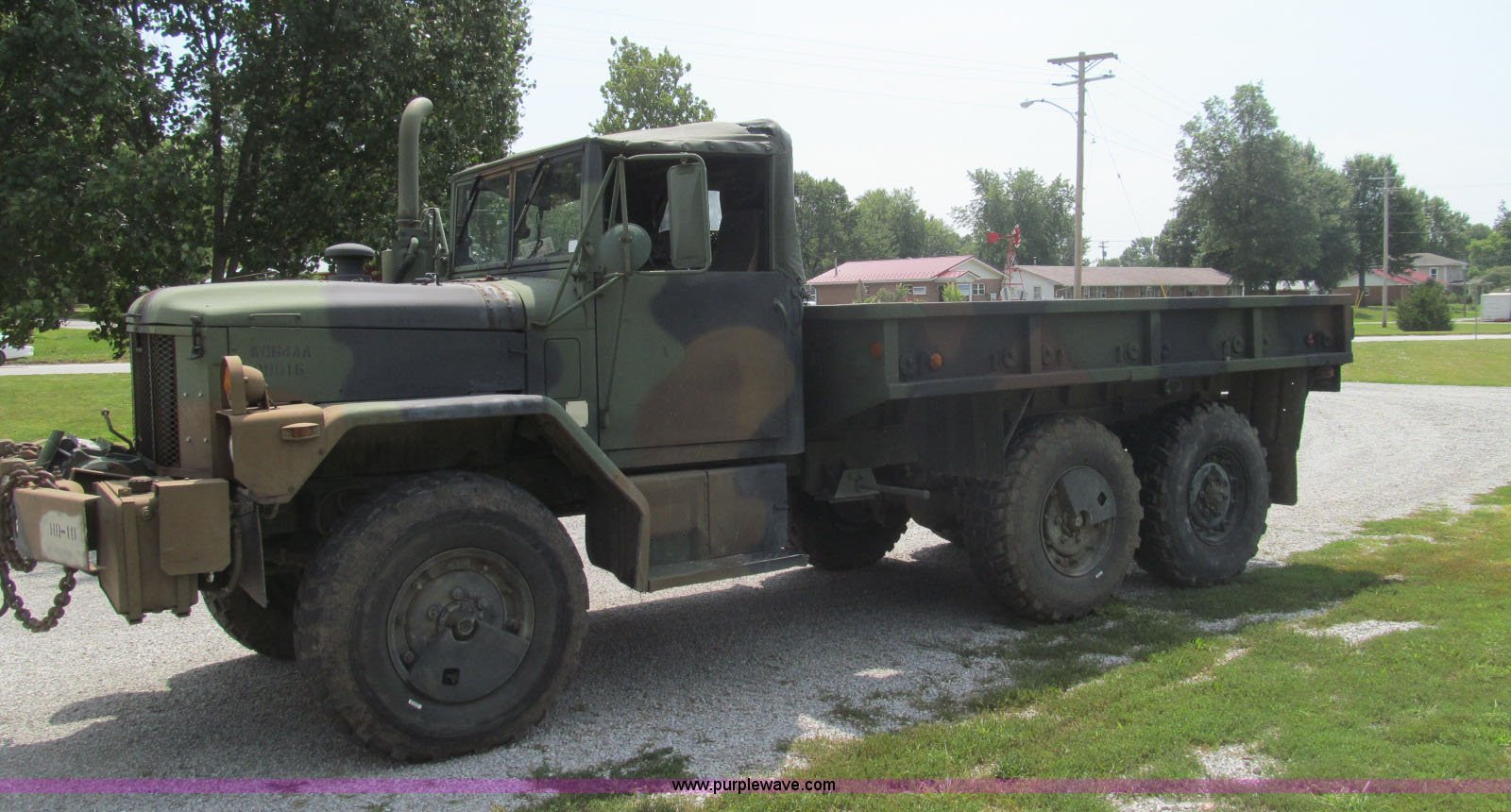 Purple Wave is selling a used Flat Bed Truck in Missouri. This item is a 1986 Am General 2.5 ton truck with the following: 16,095 actual miles, Caterpillar 3116 six cylinder diesel engine, Allison automatic transmission, Six wheel drive, Heat, Spring suspension seat, Manual windows and locks, 12 x 7.5 bed, Front mounted winch, Pintle hitch, Removable canopy cover, Pintle hitch, Air brakes, 14.5-20 tires, Seat damage