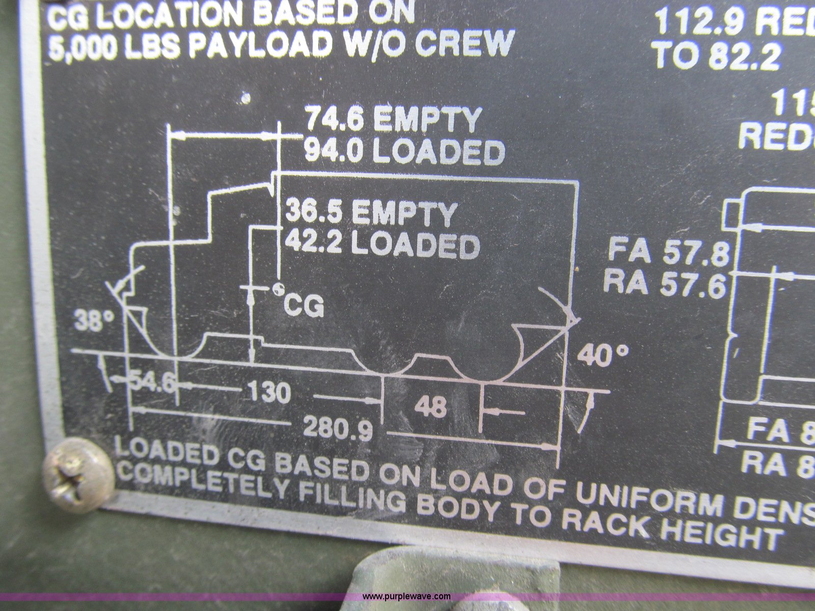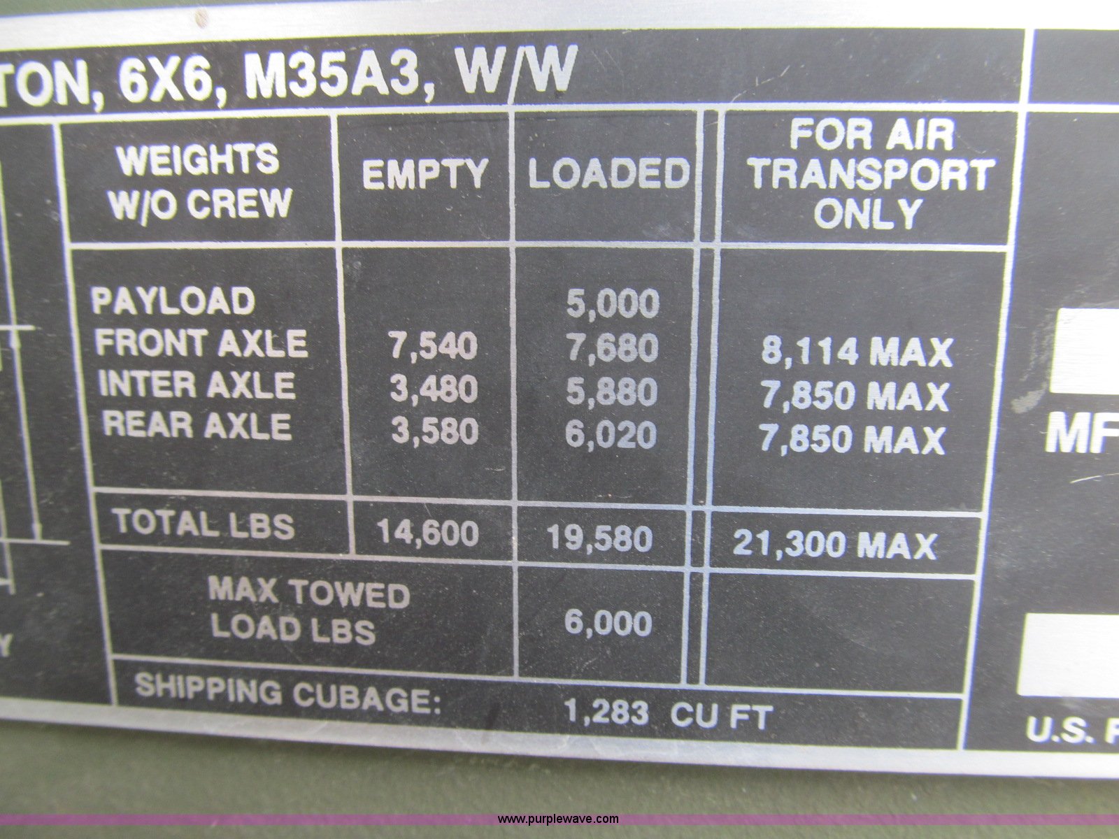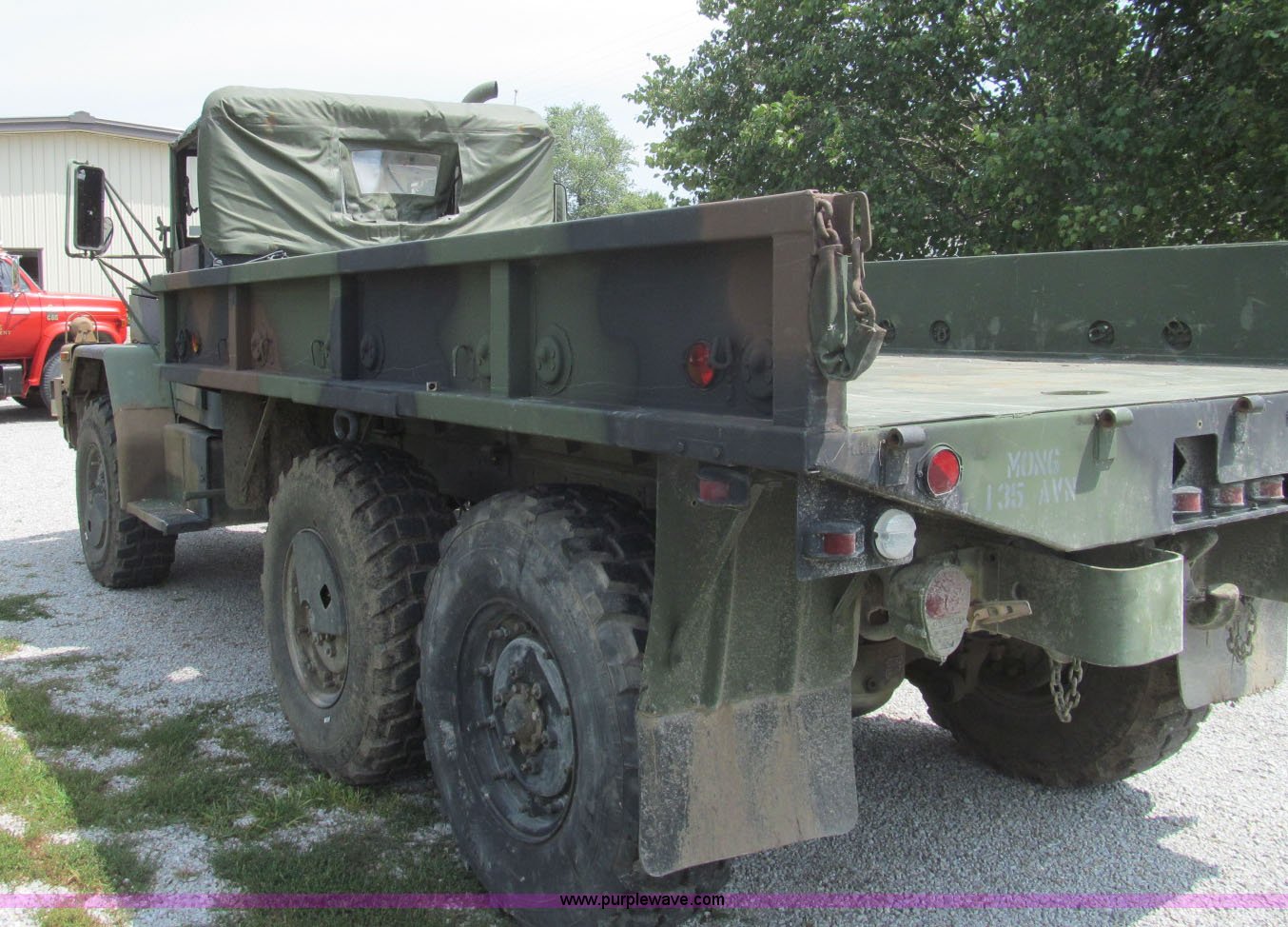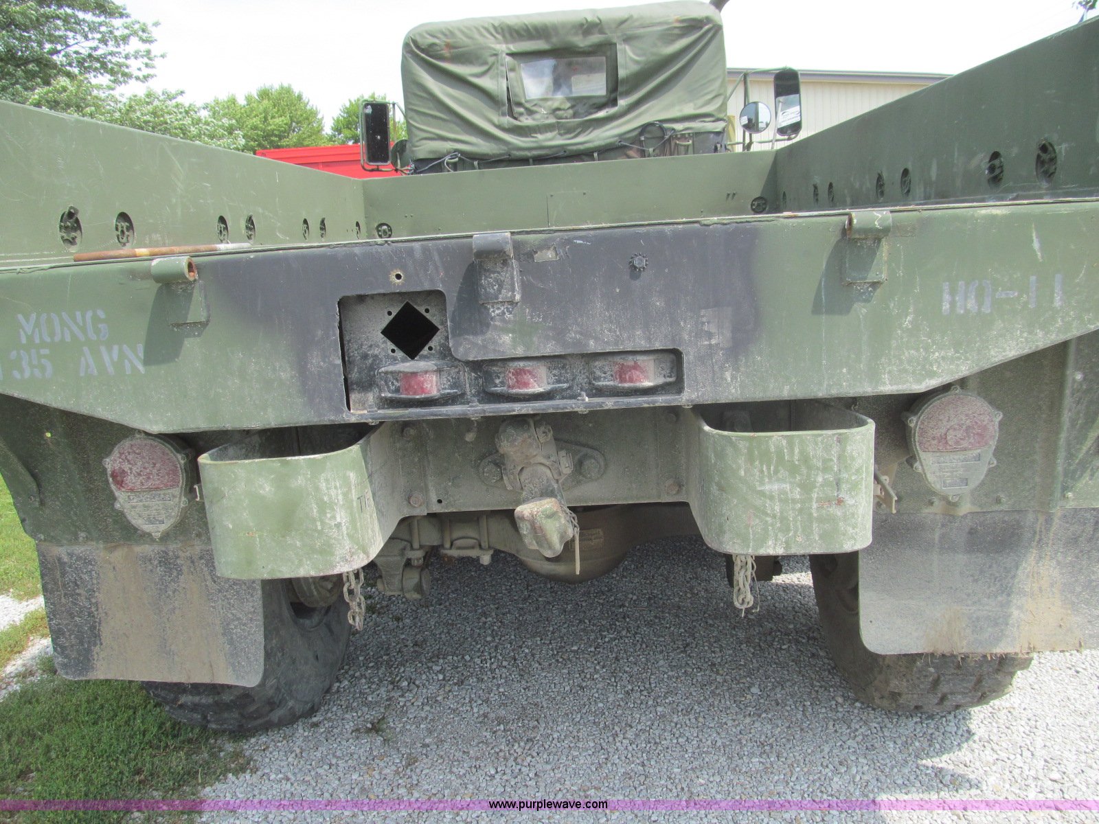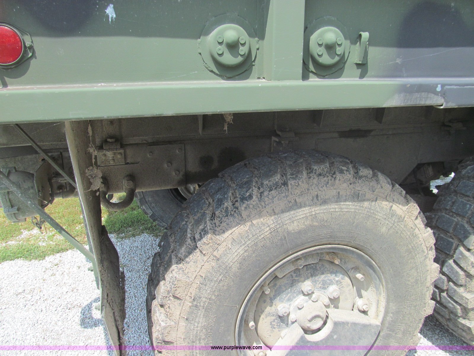 Purple Wave is selling a used Flat Bed Truck in Missouri. This item is a 1986 Am General 2.5 ton truck with the following: 16,095 actual miles, Caterpillar 3116 six cylinder diesel engine, Allison automatic transmission, Six wheel drive, Heat, Spring suspension seat, Manual windows and locks, 12 x 7.5 bed, Front mounted winch, Pintle hitch, Removable canopy cover, Pintle hitch, Air brakes, 14.5-20 tires, Seat damage