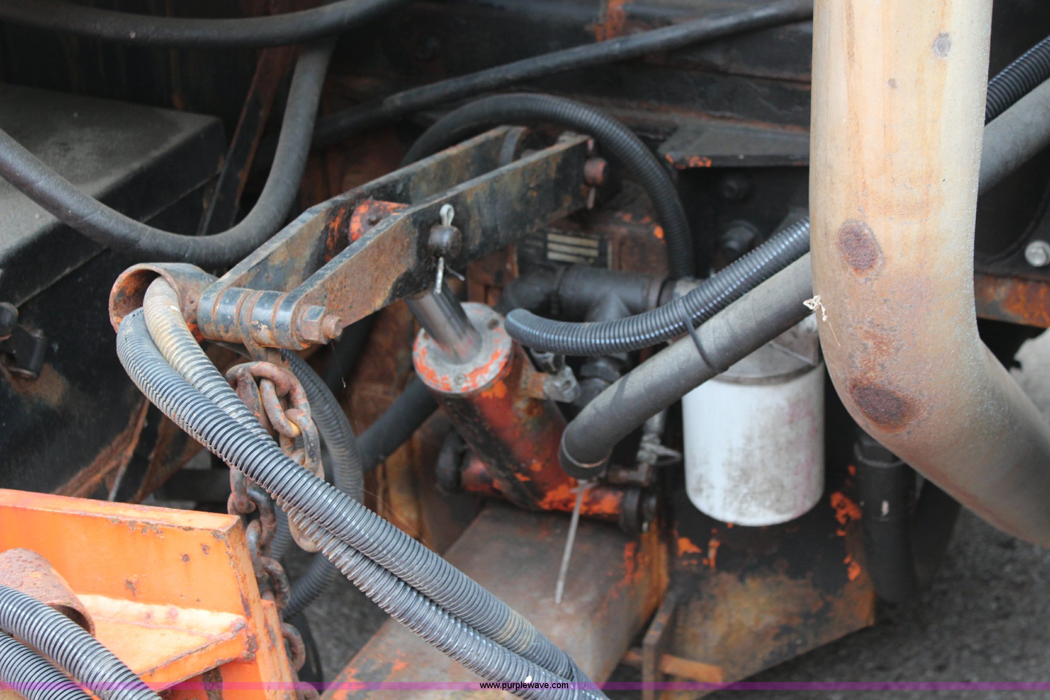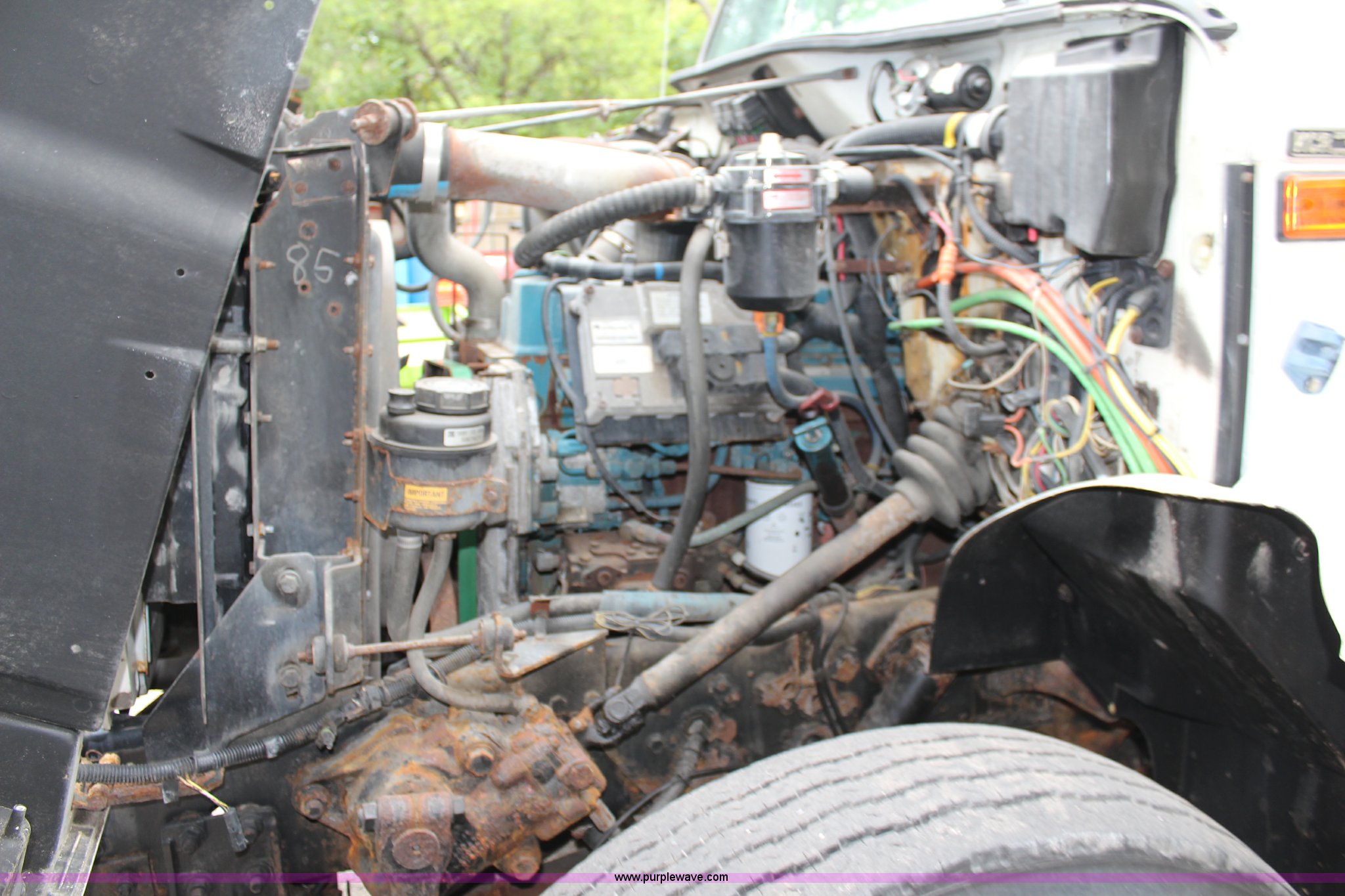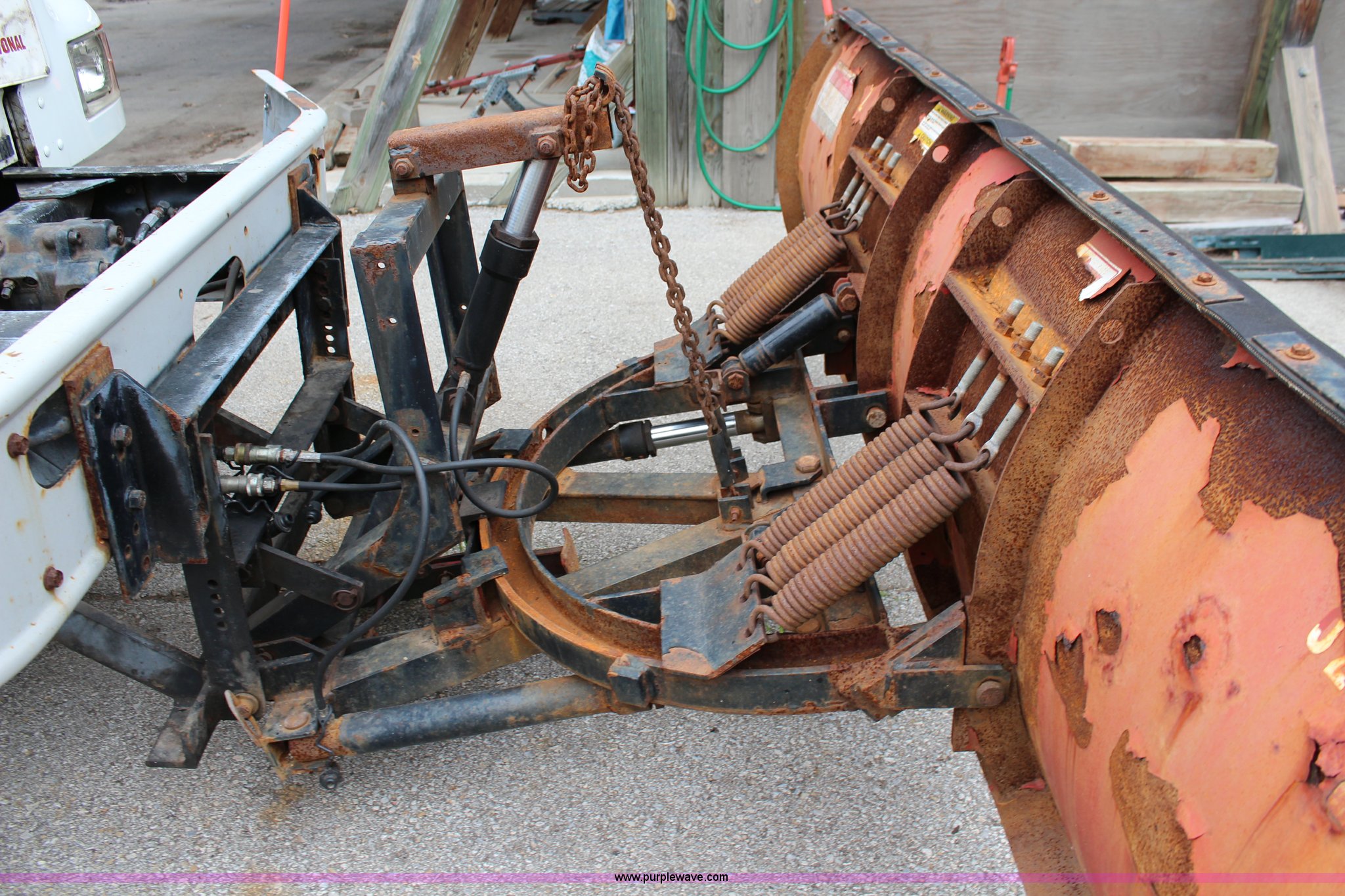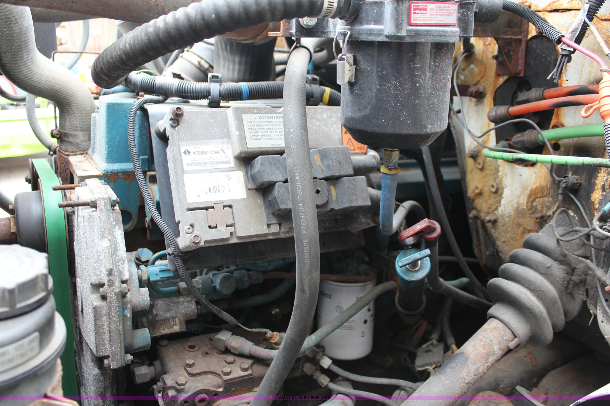 Purple Wave is selling a used Construction Dump Truck in Kansas. This item is a 2000 International 4900 dump truck with the following: 24,195 miles on odometer, 2,572 hours on meter, International DT466E 7.6L L6 diesel engine, 250 HP, Allison automatic transmission, AC and heat, Tilt, Cruise, AM/FM, Telescoping steering wheel, Air suspension seat, Heated mirrors, Backup alarm, 10'W box, Air end gate, Three stage single ram, Western 10' plow, 8'W side mount wing plow, Side discharge spreader, 70 gallon magnesium chloride tank, Bed plate included, Pintle hitch, 50 gallon fuel tank, Front mount PTO, Spring suspension, Air brakes, 12R22.5 tires, GVWR 35,000 lbs