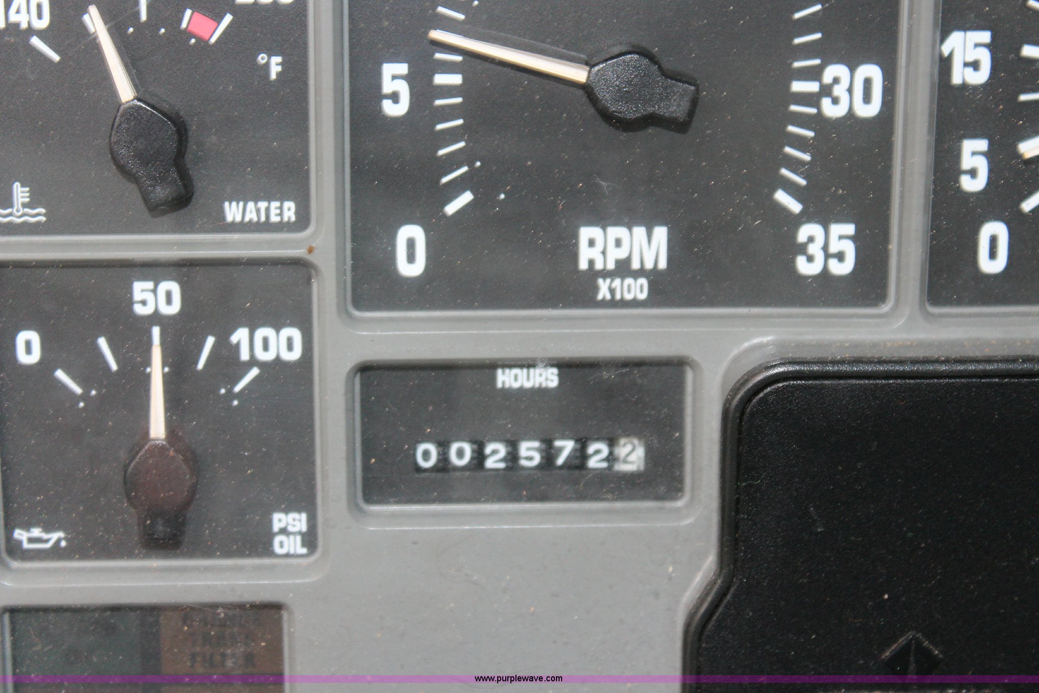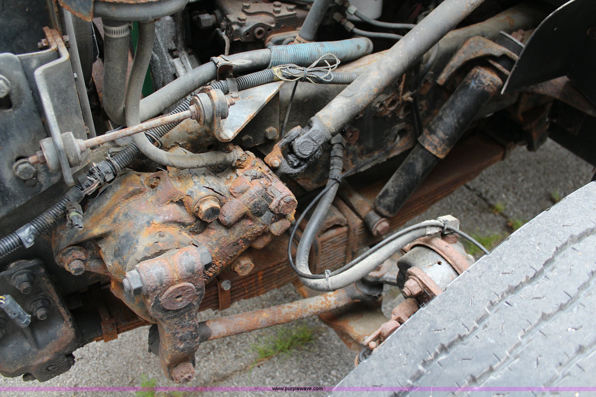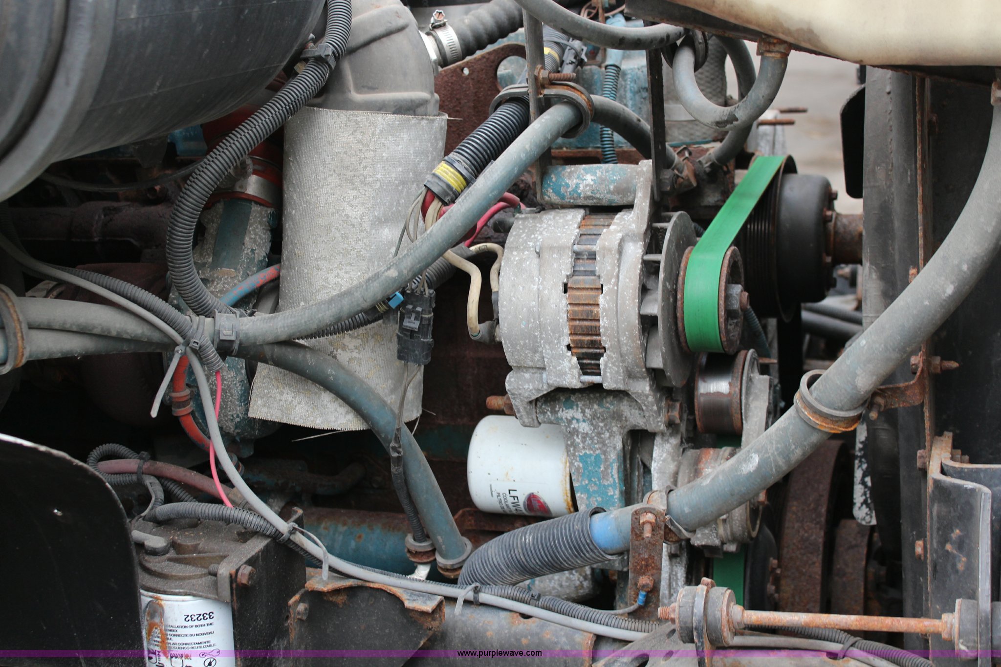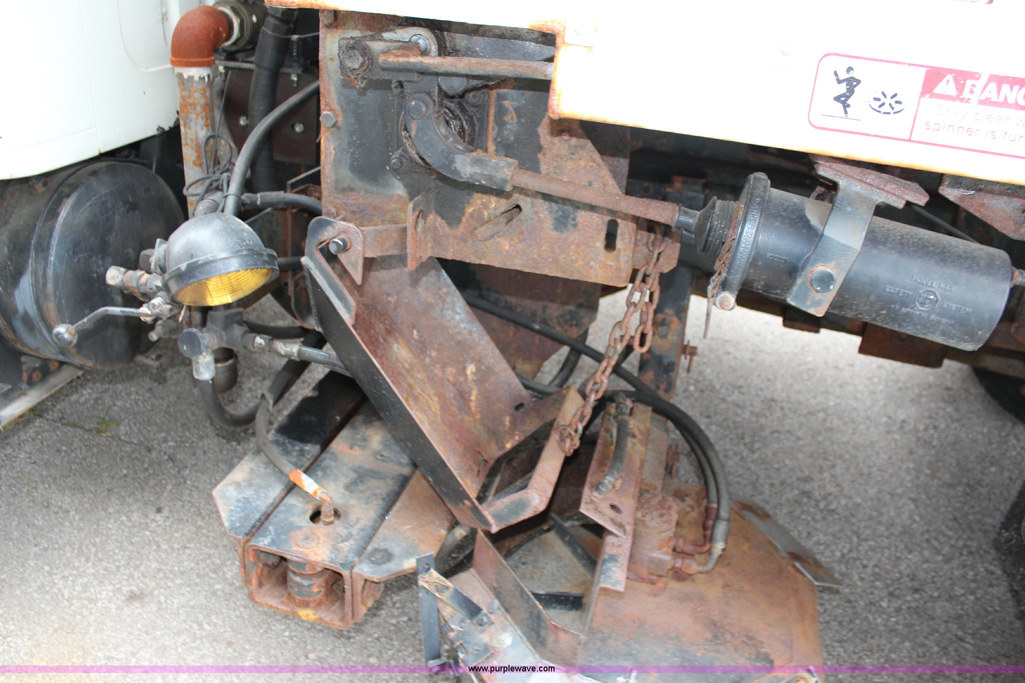 Purple Wave is selling a used Construction Dump Truck in Kansas. This item is a 2000 International 4900 dump truck with the following: 24,195 miles on odometer, 2,572 hours on meter, International DT466E 7.6L L6 diesel engine, 250 HP, Allison automatic transmission, AC and heat, Tilt, Cruise, AM/FM, Telescoping steering wheel, Air suspension seat, Heated mirrors, Backup alarm, 10'W box, Air end gate, Three stage single ram, Western 10' plow, 8'W side mount wing plow, Side discharge spreader, 70 gallon magnesium chloride tank, Bed plate included, Pintle hitch, 50 gallon fuel tank, Front mount PTO, Spring suspension, Air brakes, 12R22.5 tires, GVWR 35,000 lbs