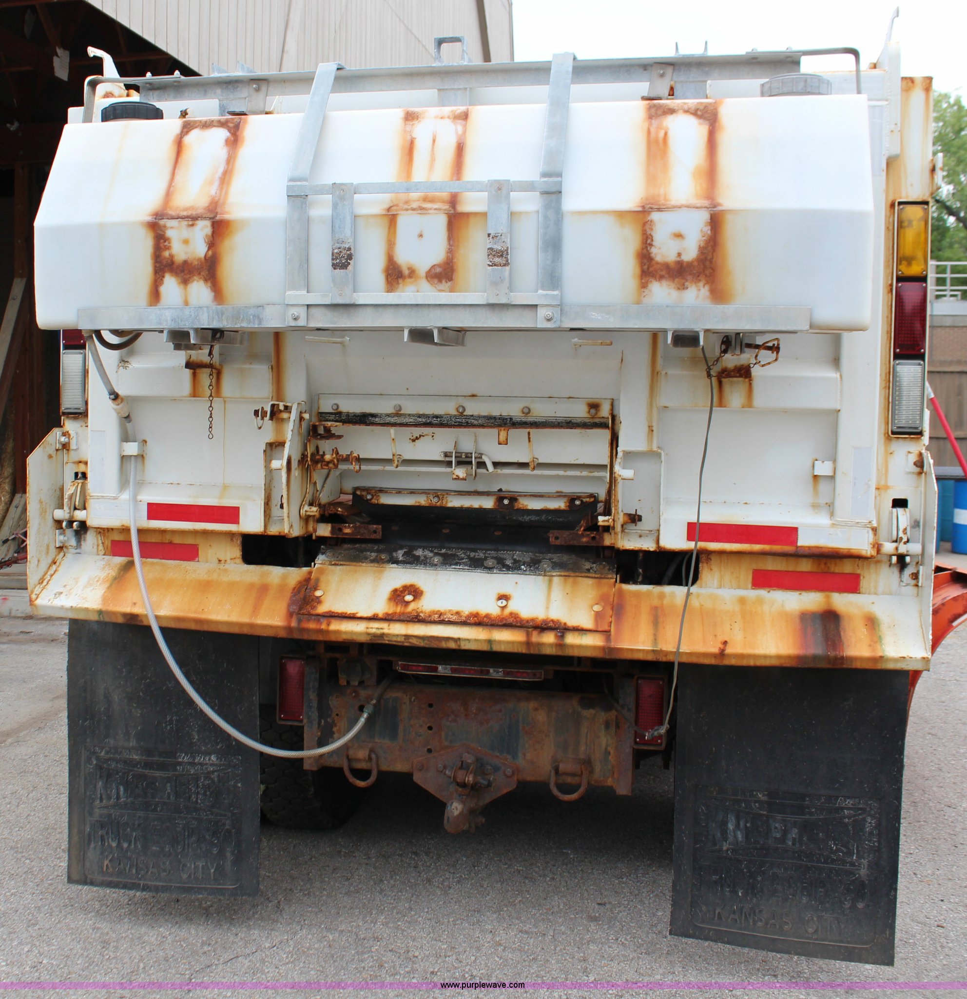 2000 International 4900 dump truck. 24,195 miles on odometer, 2,572 hours on meter, International DT466E 7.6L L6 diesel engine 250 HP, Allison automatic transmission, AC and heat, Tilt, Cruise, AM/FM, Telescoping steering wheel, Air suspension seat, Heated mirrors, Backup alarm, 10'W box Air end gate, Three stage single ram, Western 10' plow, 8'W side mount wing plow, Side discharge spreader, 70 gallon magnesium chloride tank, Bed plate included, Pintle hitch, 50 gallon fuel tank, Front mount PTO, Spring suspension, Air brakes, 12R22.5 tires, GVWR 35,000 lbs. 1HTSDAAR7YH264980. View equipment video. City of Prairie Village. 3533 Somerset Dr. Prairie Village, KS 66208