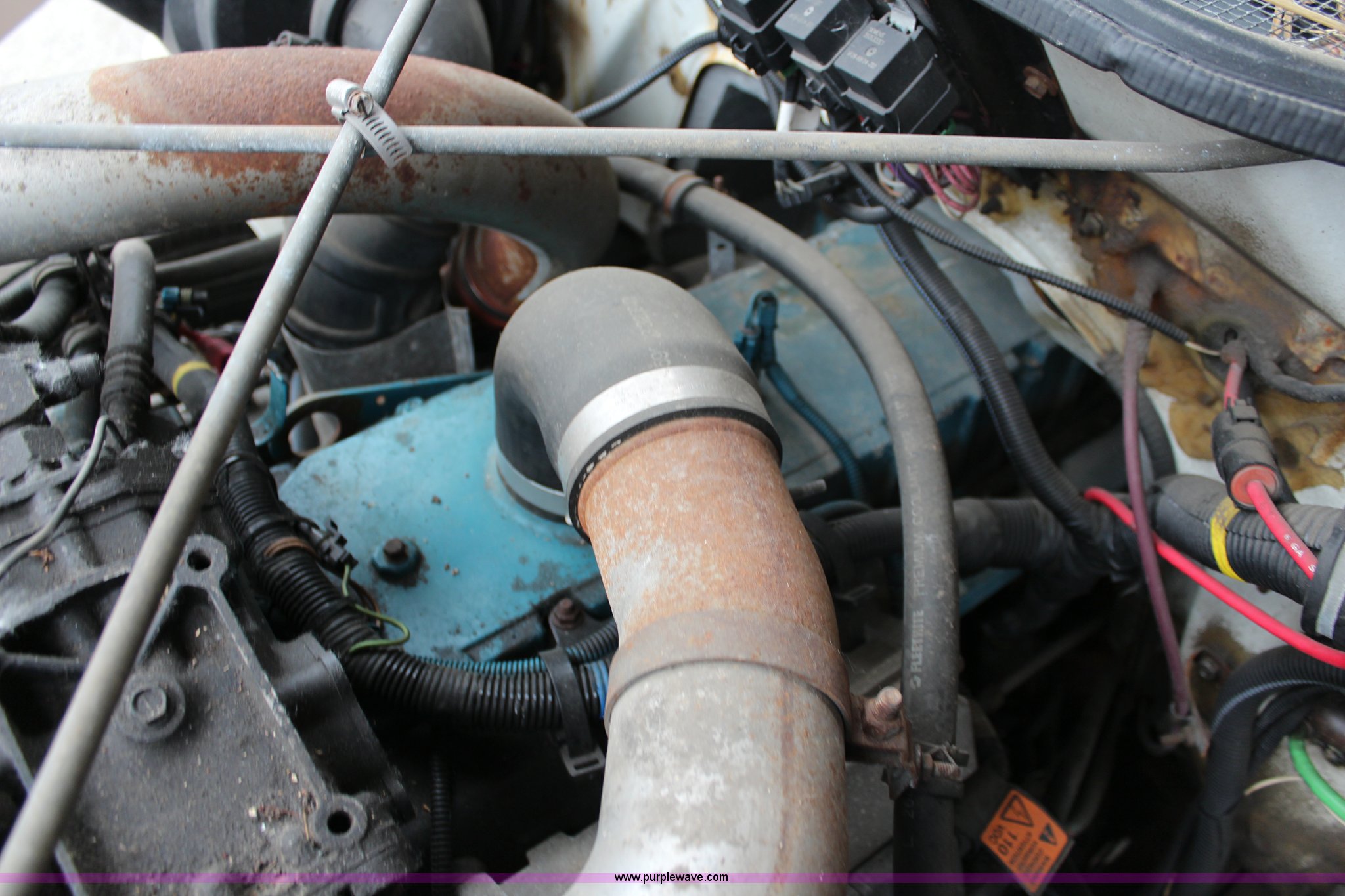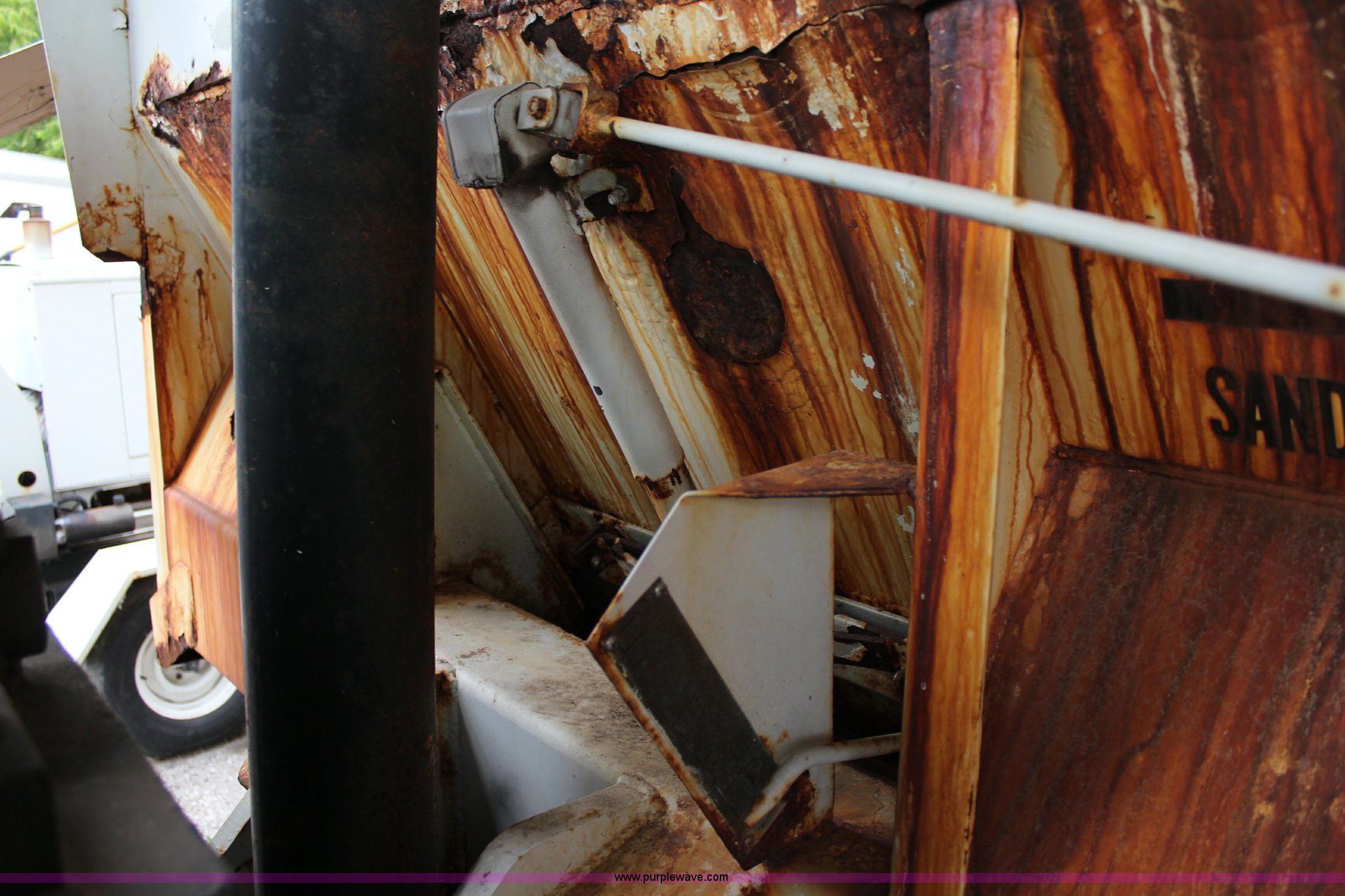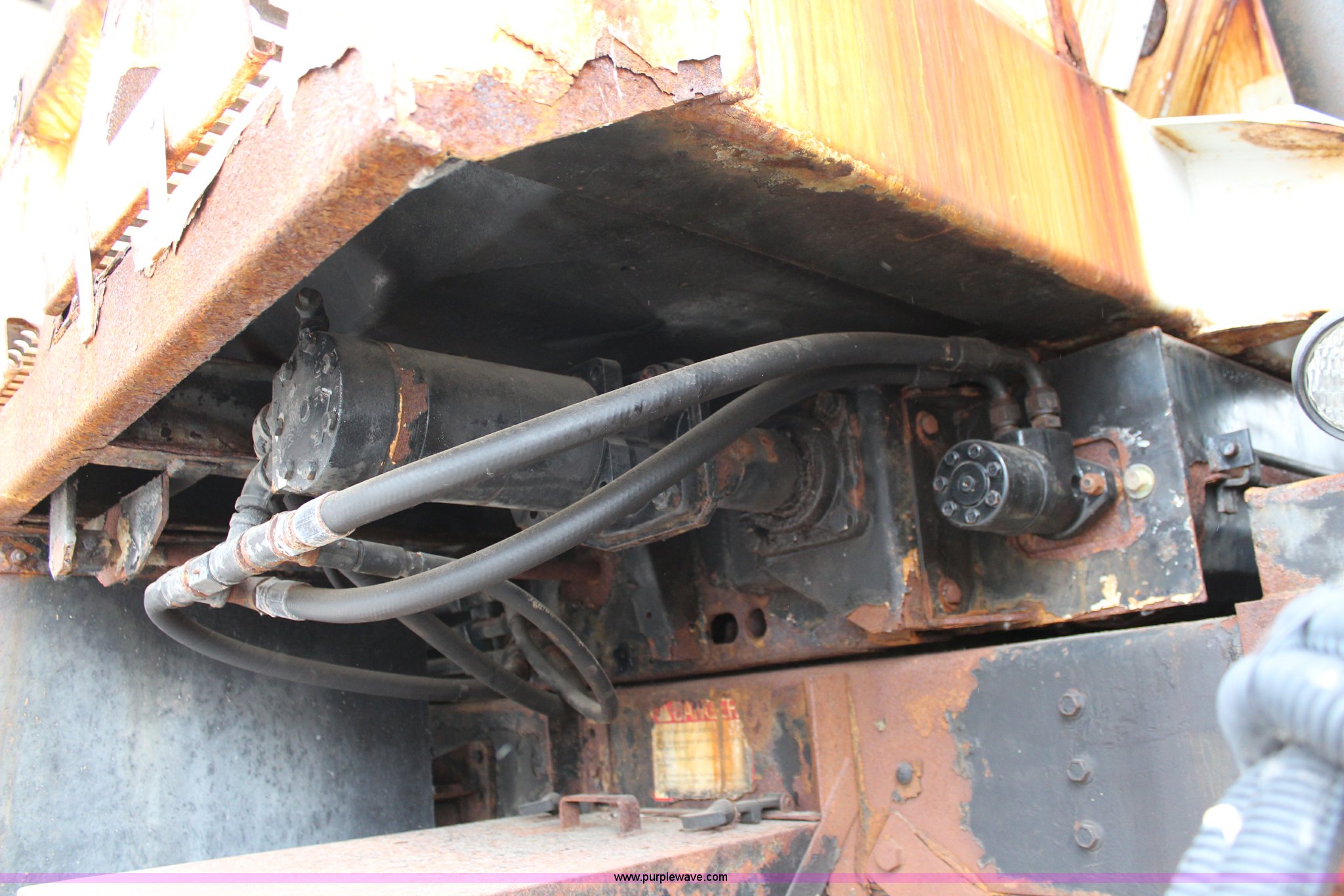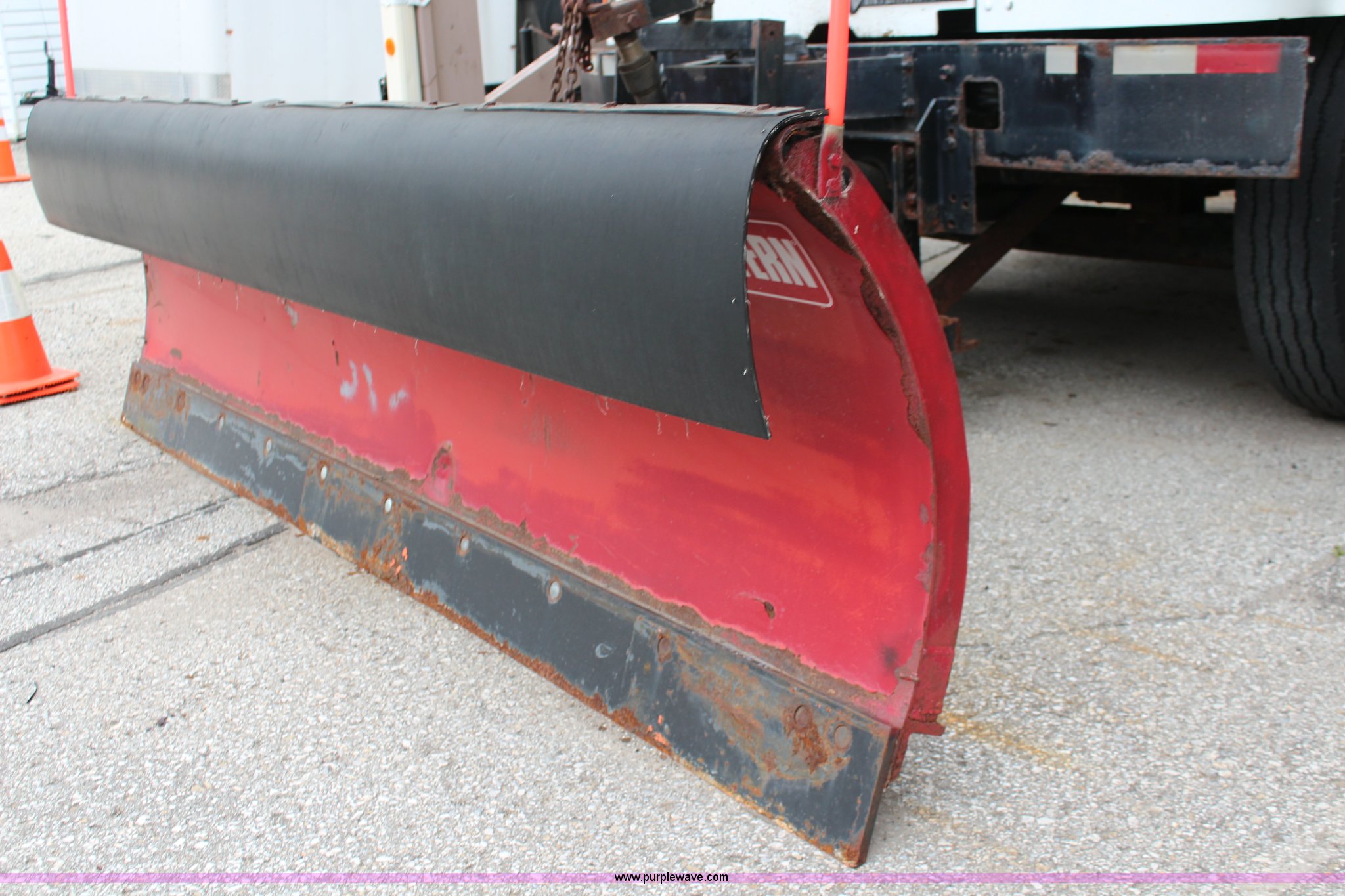 Purple Wave is selling a used Construction Dump Truck in Kansas. This item is a 2001 International 4900 dump truck with the following: 72,899 miles on odometer, 2,256 hours on meter, International DT466 7.6L L6 diesel engine, 250 HP, Allison automatic transmission, AC and heat, Tilt, Cruise, AM/FM, Telescoping steering wheel, Air suspension seat, Heated mirrors, 10' dump bed, Air end gate, Three stage single ram hoist, Western 10' plow, Command All plow control, 8'W wing plow, Side discharge spreader, 70 gallon magnesium chloride tank, Pintle hitch, 50 gallon fuel tank, Front mount PTO, Spring suspension, Air brakes, Brake controller, 12R22.5 tires, GVWR 35,000 lbs, Rust, Starter needs replaced, Hydraulic tank leaks, Has sat for two years