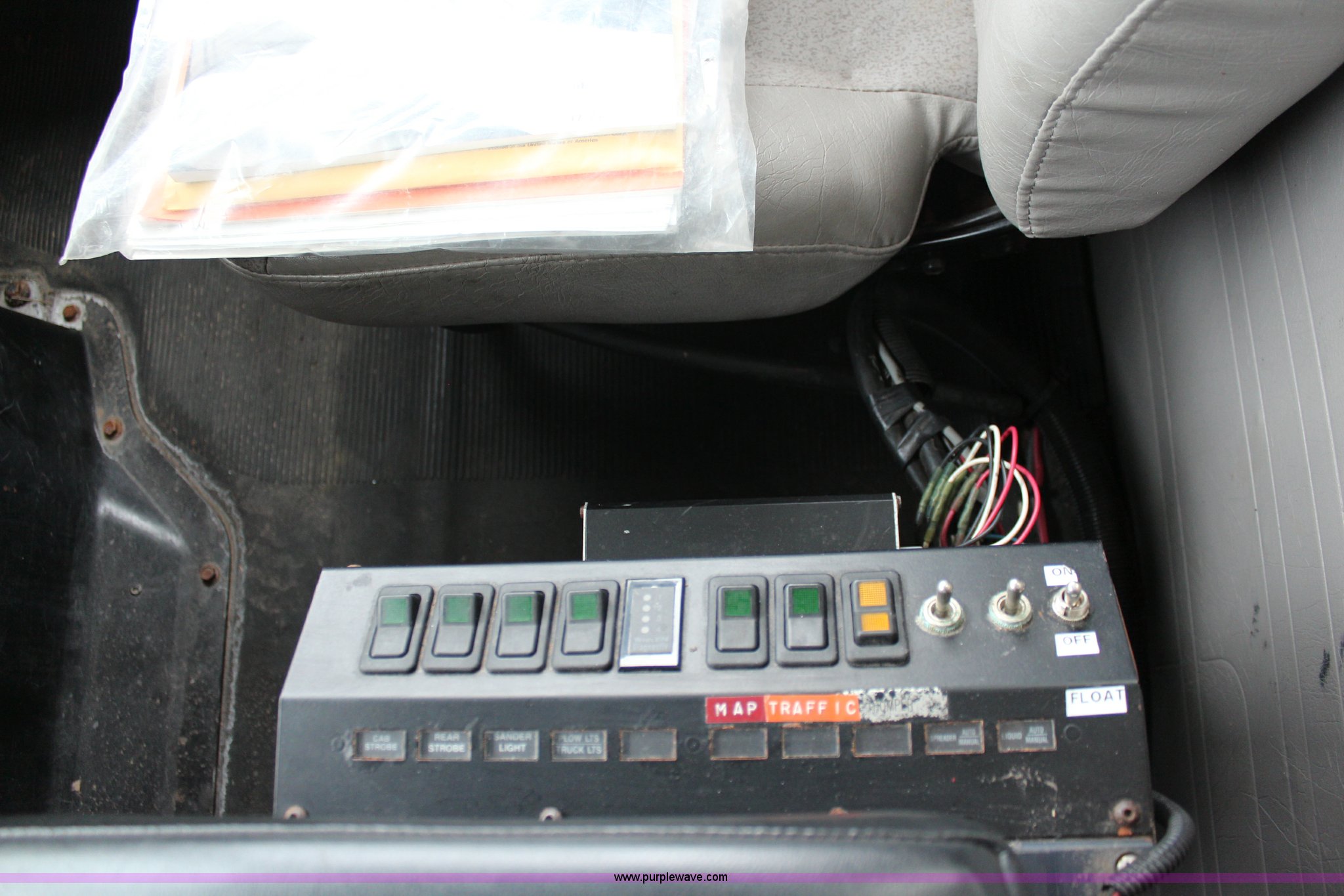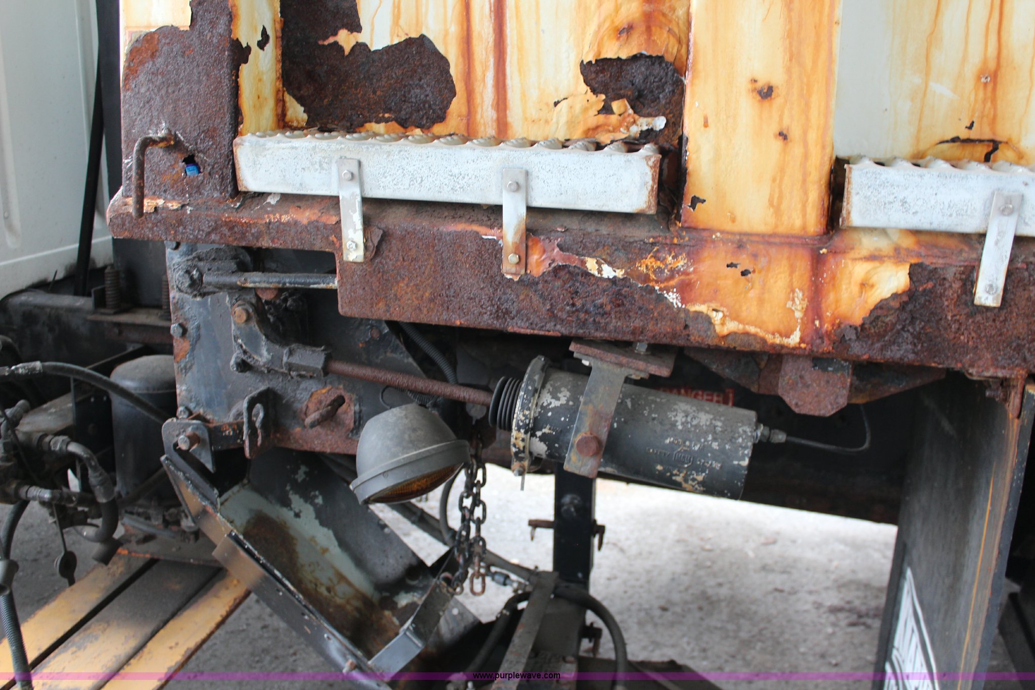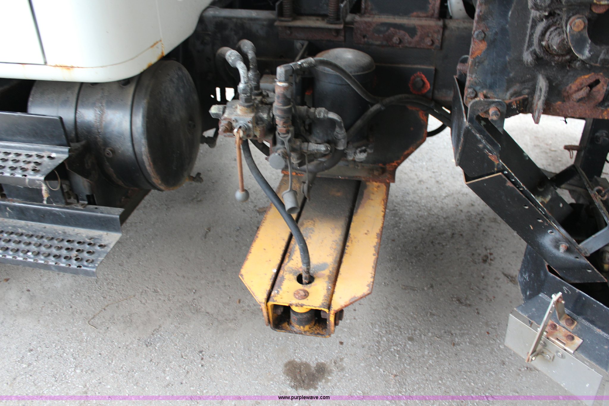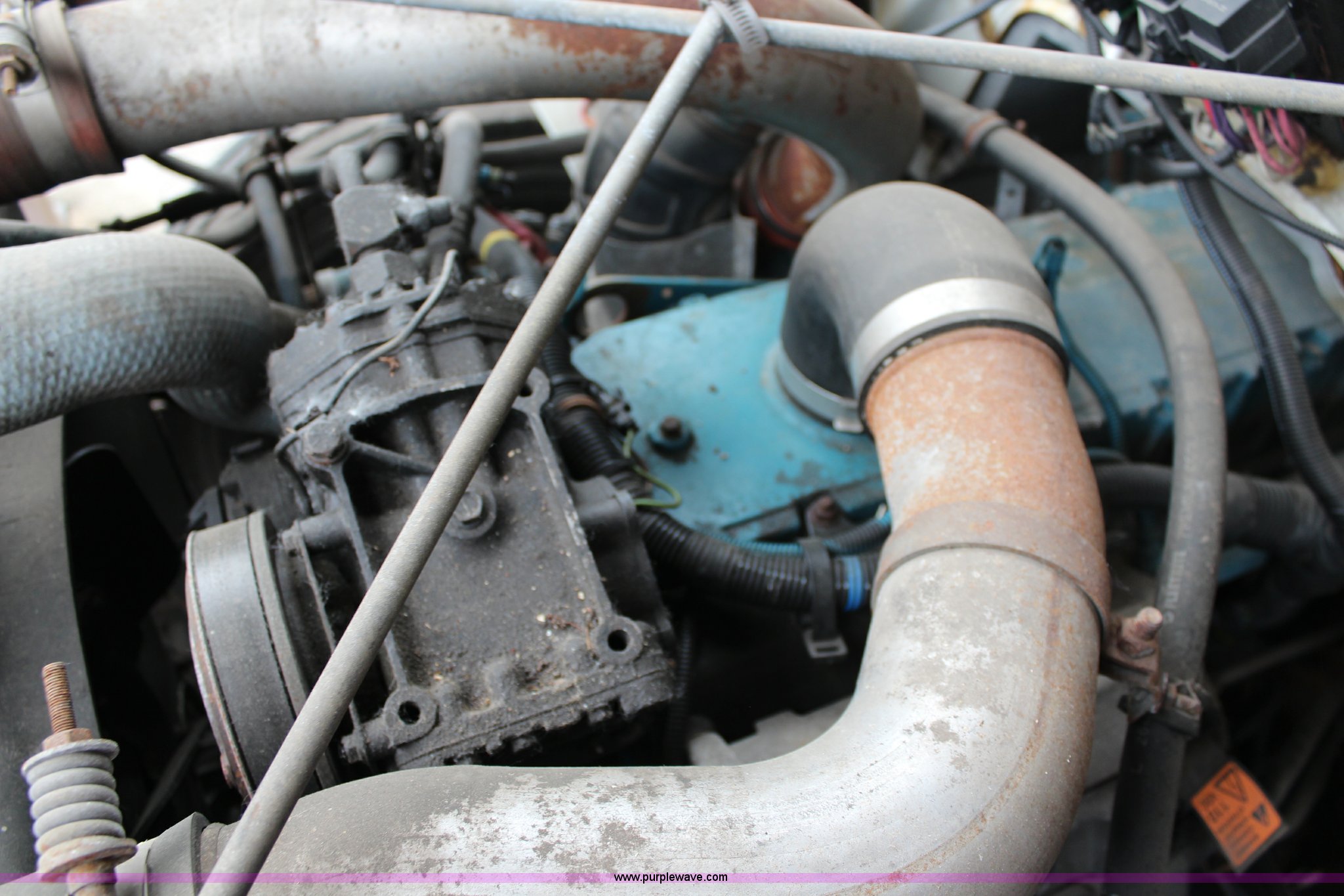 Purple Wave is selling a used Construction Dump Truck in Kansas. This item is a 2001 International 4900 dump truck with the following: 72,899 miles on odometer, 2,256 hours on meter, International DT466 7.6L L6 diesel engine, 250 HP, Allison automatic transmission, AC and heat, Tilt, Cruise, AM/FM, Telescoping steering wheel, Air suspension seat, Heated mirrors, 10' dump bed, Air end gate, Three stage single ram hoist, Western 10' plow, Command All plow control, 8'W wing plow, Side discharge spreader, 70 gallon magnesium chloride tank, Pintle hitch, 50 gallon fuel tank, Front mount PTO, Spring suspension, Air brakes, Brake controller, 12R22.5 tires, GVWR 35,000 lbs, Rust, Starter needs replaced, Hydraulic tank leaks, Has sat for two years