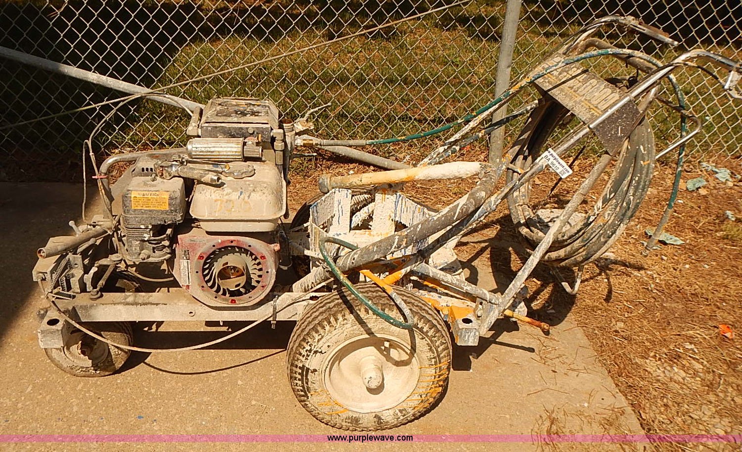 Purple Wave is selling a used Tools in Kansas. This item is a Sure Stripe Airless CO6000 paint striper with the following: Hose, Spray gun, Engine needs pull rope, Pump inoperable, Needs rebuilt