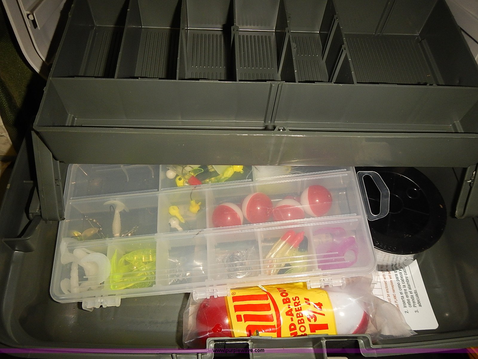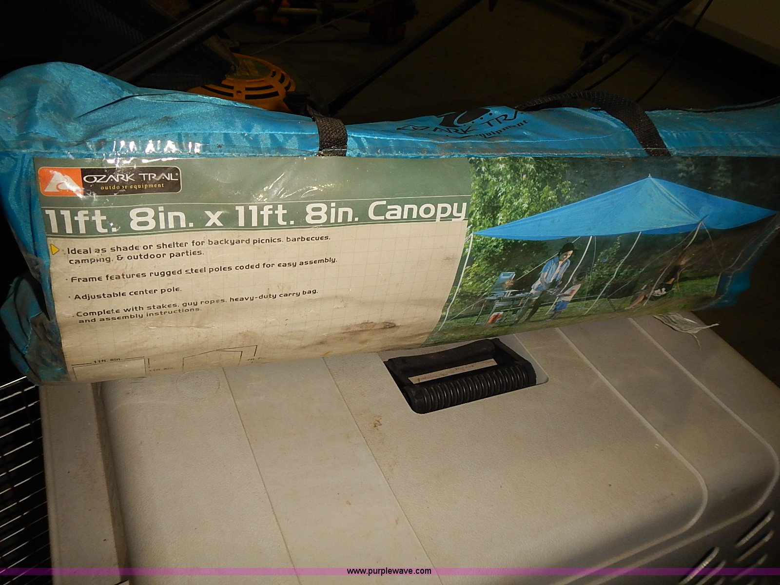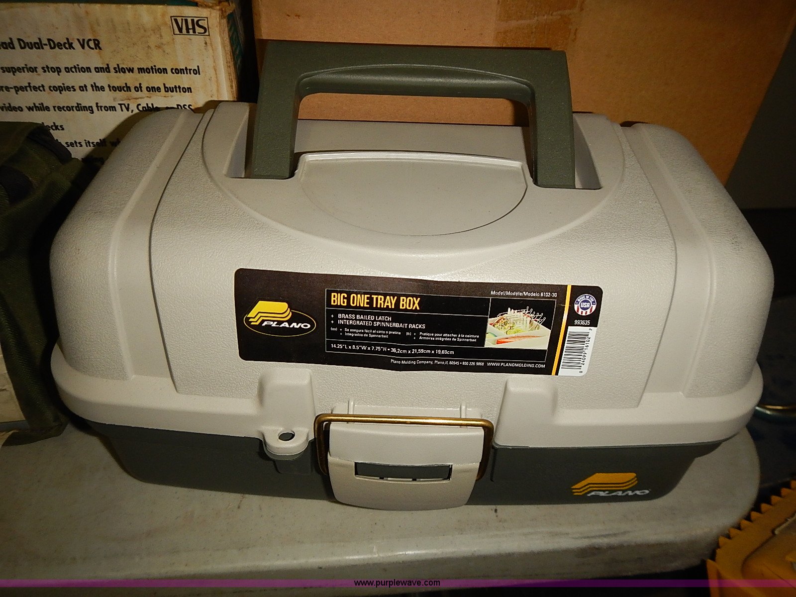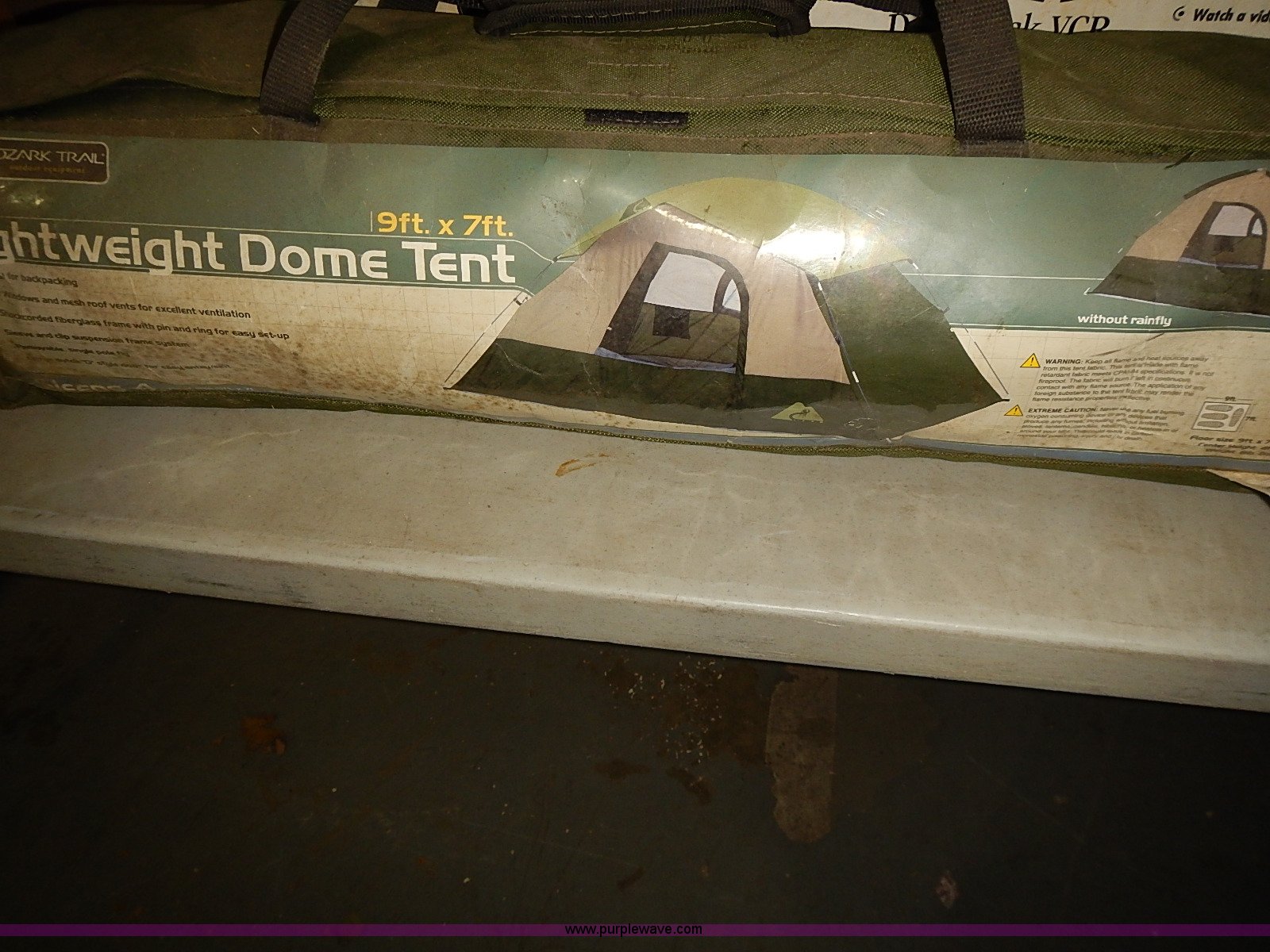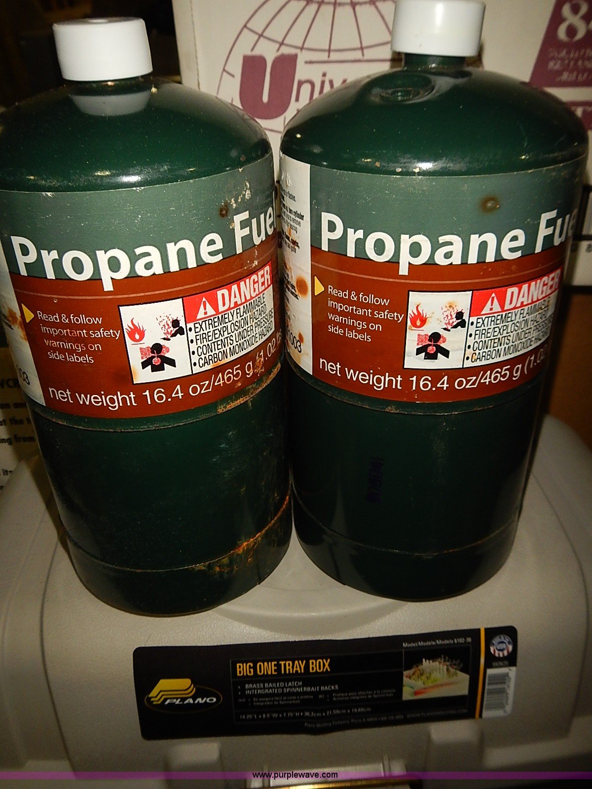Purple Wave is selling a used Sporting Goods in Kansas. This item is a Assorted sporting goods with the following: Tent, Canopy, Tackle box with supplies, (2) propane bottles, Coleman propane heater, Animal trap, Pet carrier