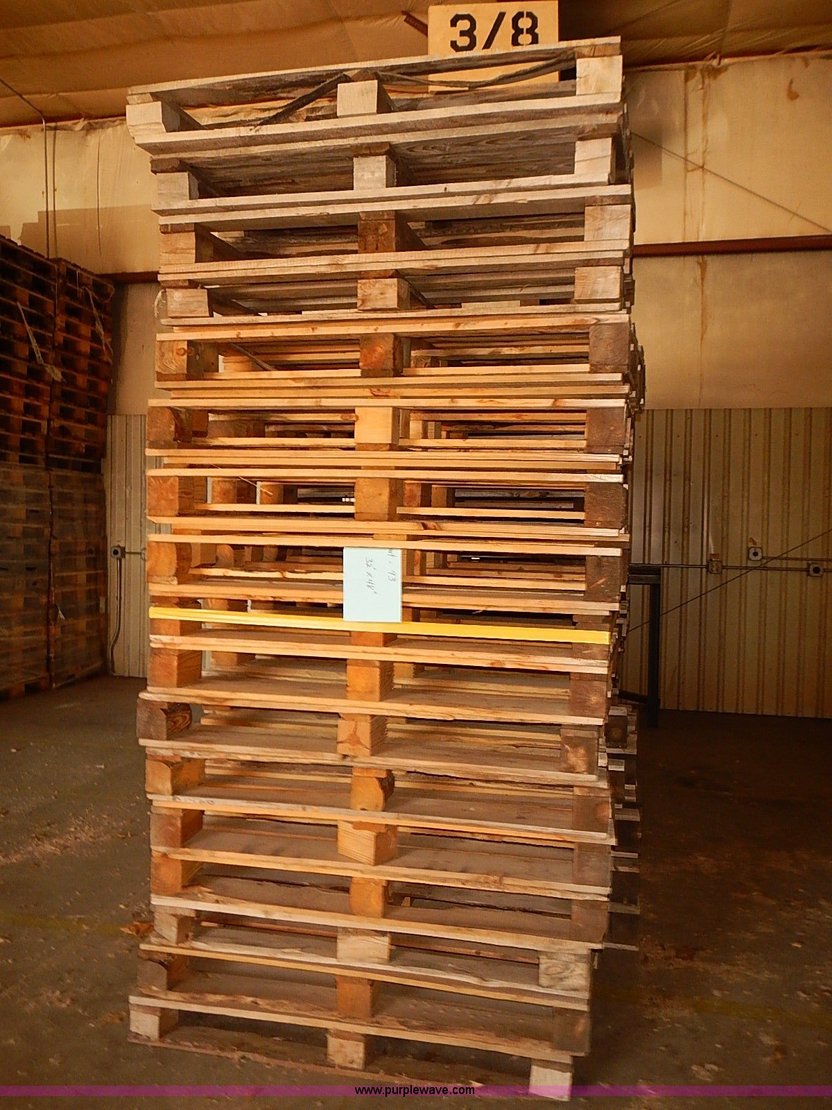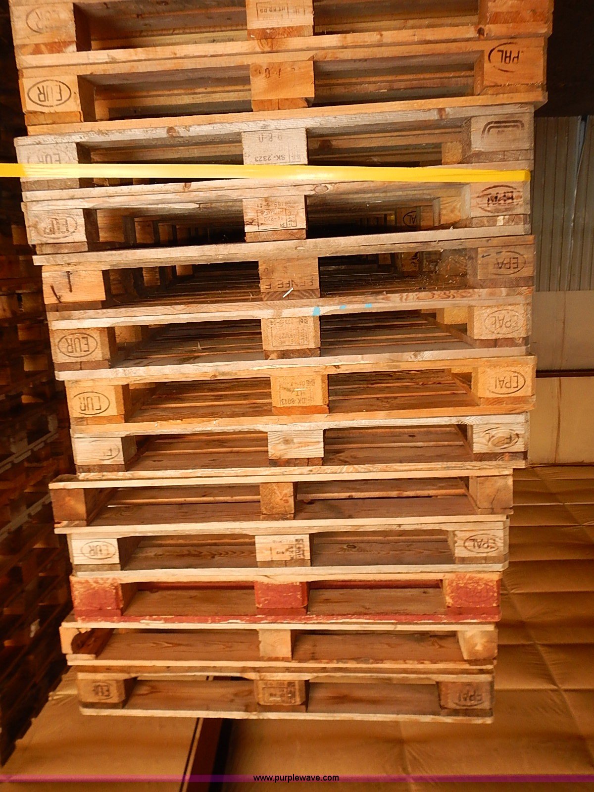 Purple Wave is selling a used Other Attach. or Equip. in Kansas. This item is a Approx 1,389 wooden European style pallets with the following: (888) 31 1/2" X 47", (79) 35" X 43", (37) 36" X 48", (10) 39" X 47, (34) 38" X 48", (44) 43" X 43", (32) 25" X 48", (93) 32" X 48", (170) 48" X 48", (2) 45" X 50"