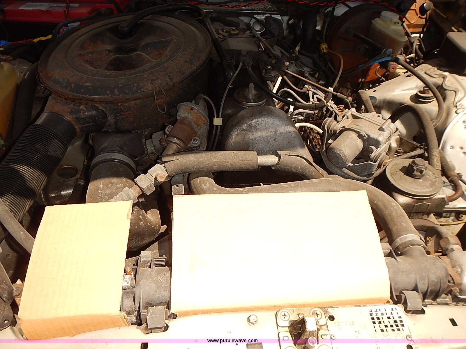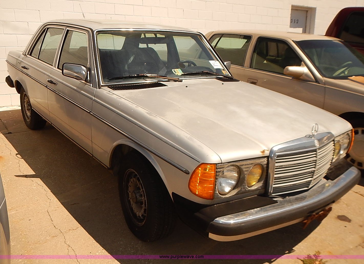 Purple Wave is selling a used Passenger Vehicle in Kansas. This item is a 1983 Mercedes Benz 300D with the following: 369,798 miles on odometer, 3.0L L5 SOHC 10V turbo diesel engine, AC and heat, Cruise, Power windows, Leather interior, Block heater, 195/70R14 tires, Paint faded, Body rust, Stereo missing, Weak battery, Cracked dash, Passenger side door does not unlock with key, Interior and exterior cosmetic damage