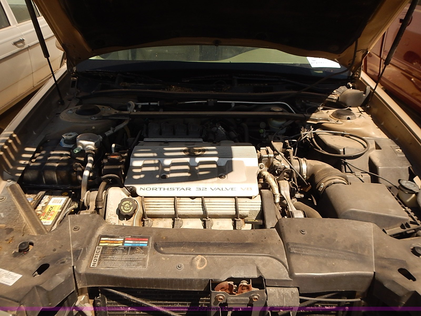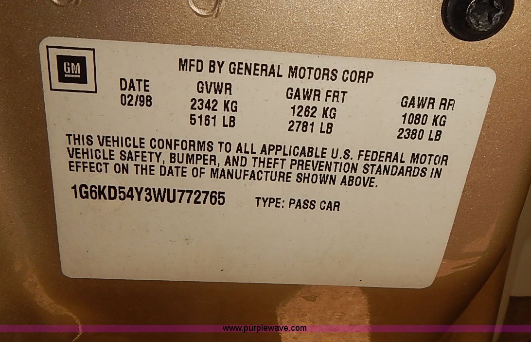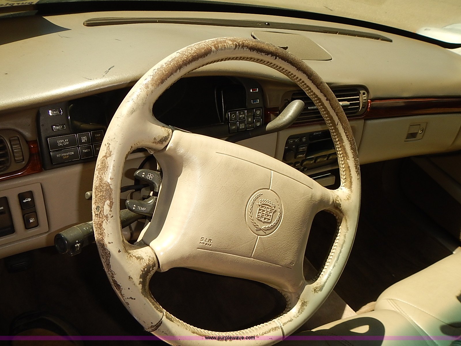 Purple Wave is selling a used Passenger Vehicle in Kansas. This item is a 1998 Cadillac DeVille with the following: Unknown miles on odometer, Last known mileage 192,848, 4.6L V8 DOHC 32V Northstar gas engine, Automatic transmission, AC and heat, Tilt, Cruise, AM/FM, Cassette, Power windows, locks, mirrors, and seats, Heated seats, Leather interior, Temp/directional unit on rear view mirror, 225/60R16 tires, Paint chipping, Passenger front headlight needs repaired, Stereo volume control on steering column, Dead battery, Unknown operating condition
