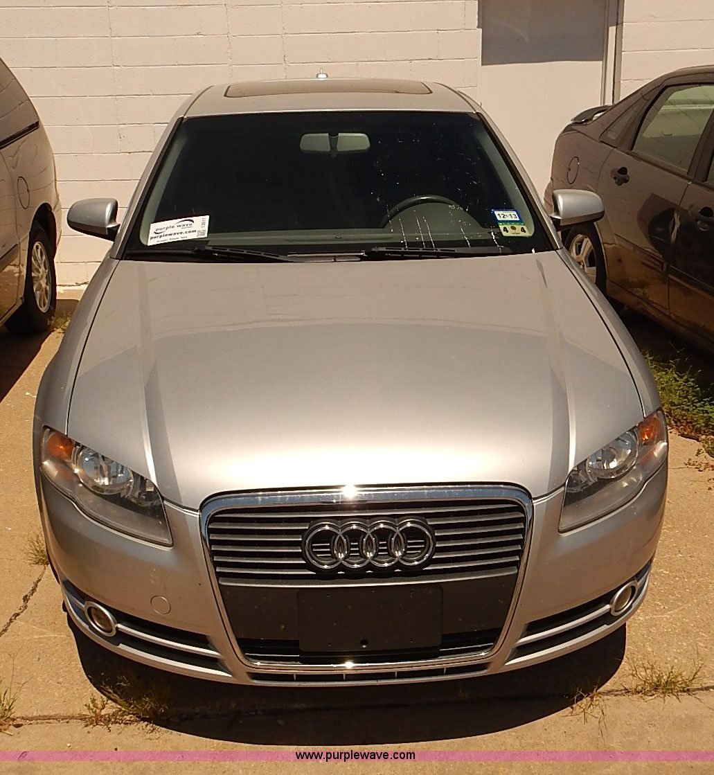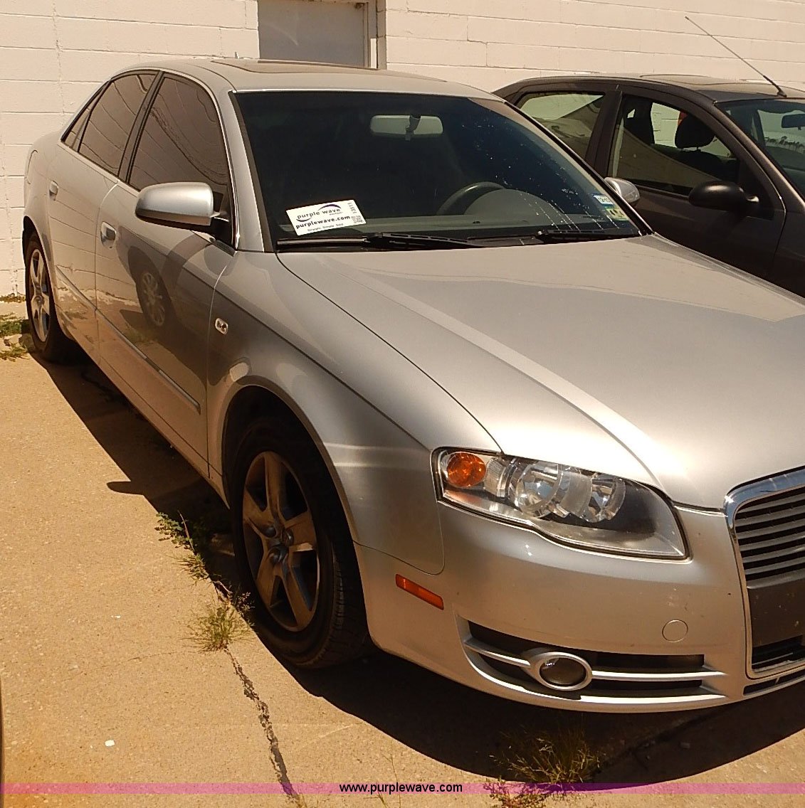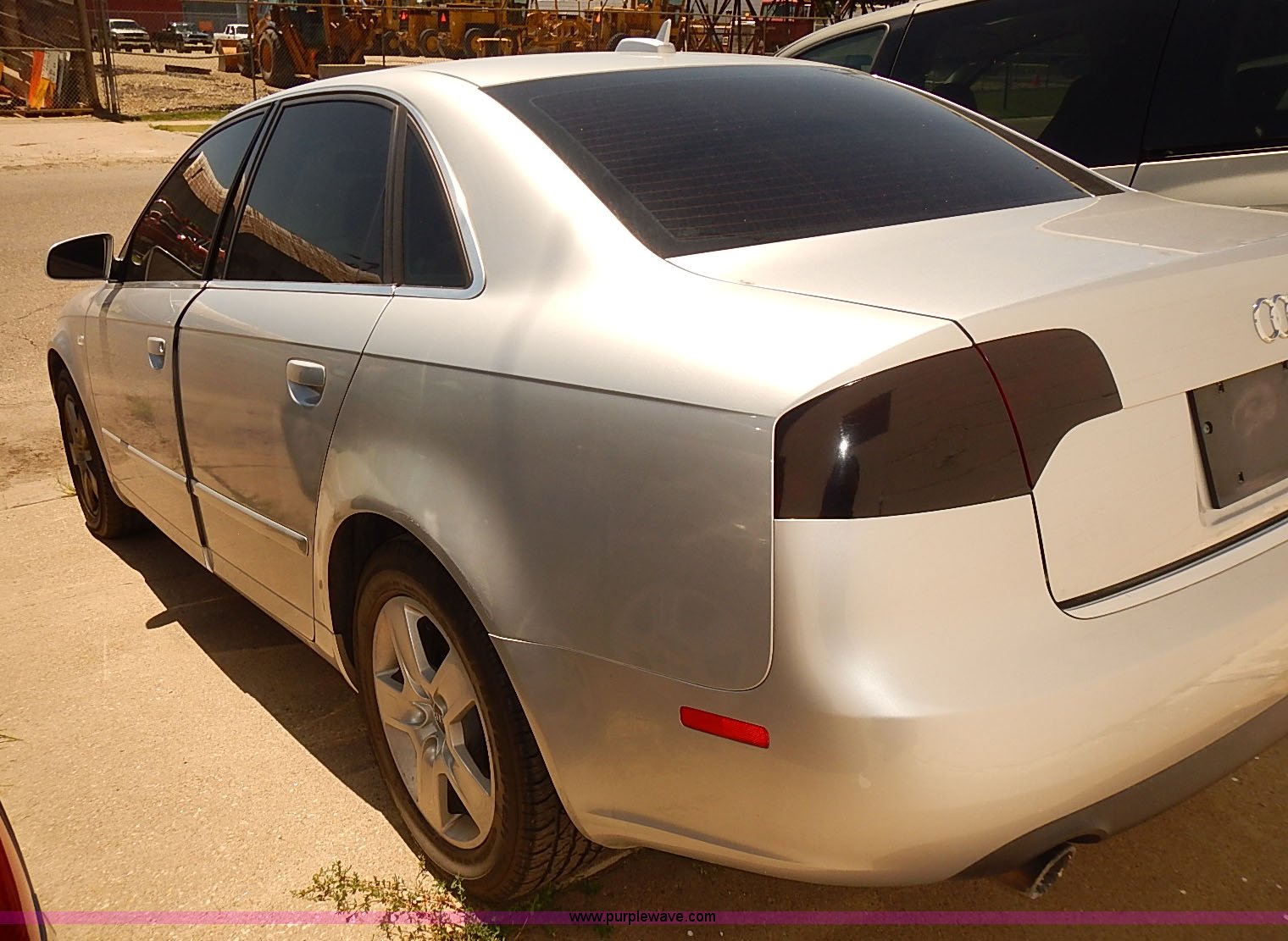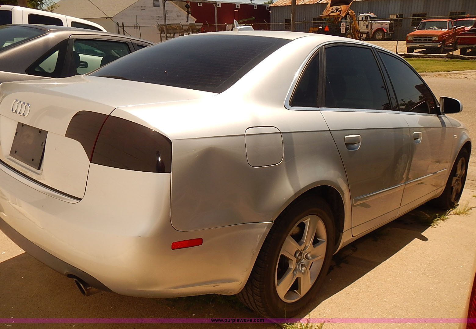 Purple Wave is selling a used Passenger Vehicle in Kansas. This item is a 2006 Audi A4 2.0T with the following: Last odometer reading 96,691 miles, 2.0L L4 DOHC 16V turbo gas engine, Automatic transmission, AC and heat, Cruise, Power windows, locks, mirrors, and seats, Vinyl interior, Moonroof, Fog lamps, 215/55R16 tires, Unknown running condition, Battery dead, Dents, Scratches