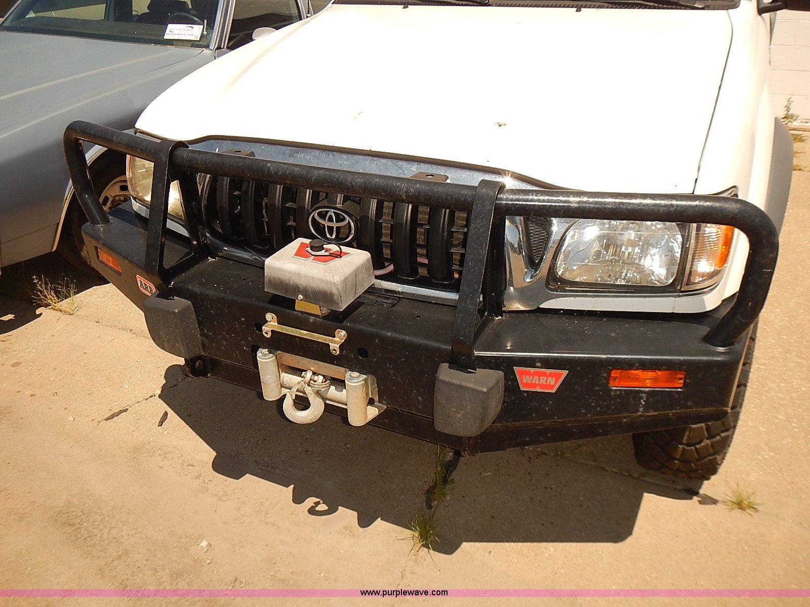 Purple Wave is selling a used 1/2 Ton Pickup or Van in Kansas. This item is a 2001 Toyota Tacoma SR5 Xtracab pickup truck with the following: 2.7L L4 DOHC 16V gas engine, Five speed manual transmission, Four wheel drive, AC and heat, Tilt, Cruise, AM/FM, Manual windows and locks, Cloth interior, Grill guard, Warn front bumper winch, Vista topper, Bed mat, Additional fuel tank in bed, ARB compressor, Front and rear air lockers, Receiver hitch, 30 x 9.50R15 tires, Unknown running condition, Paint peeling, Dents and scratches