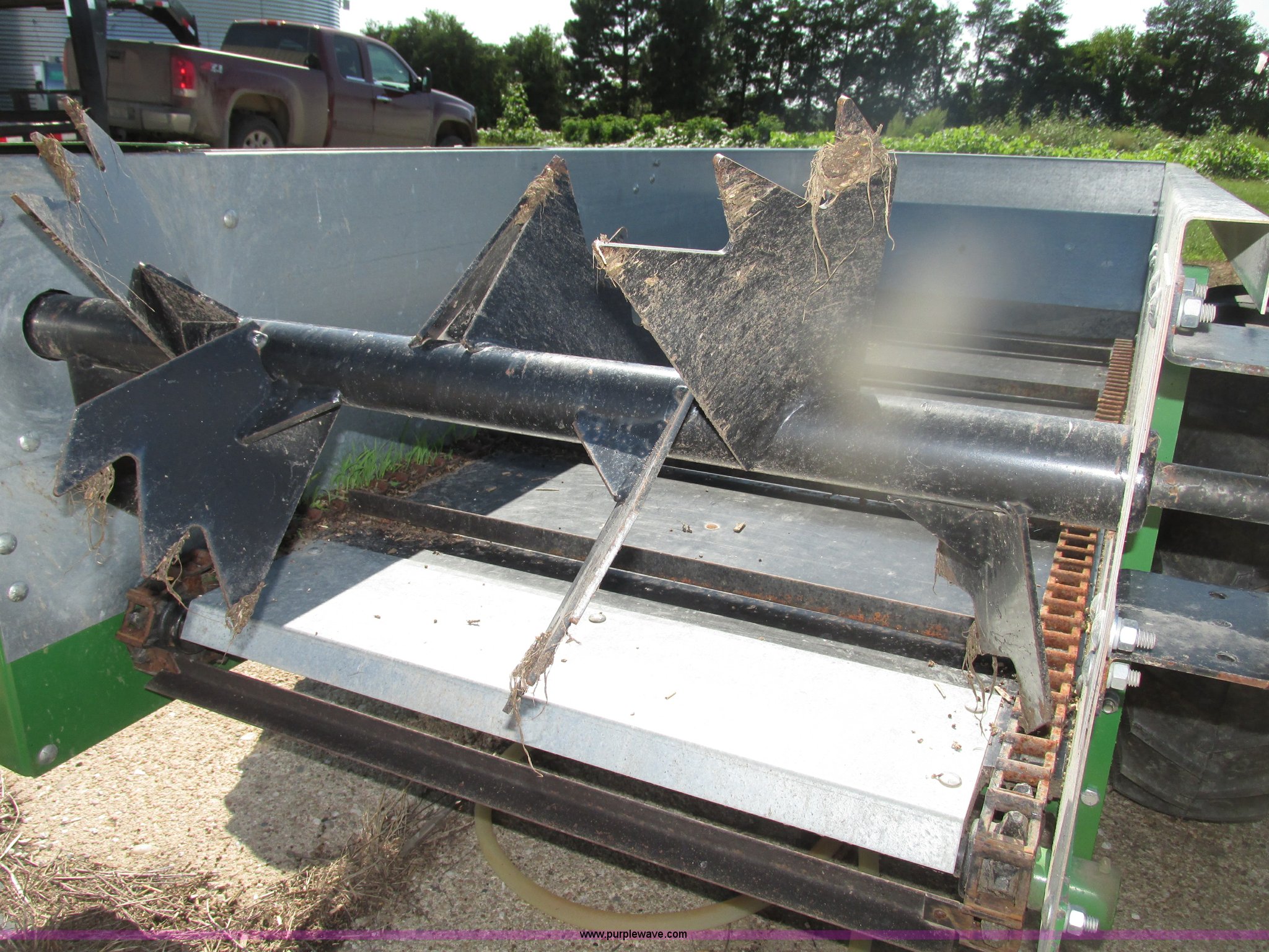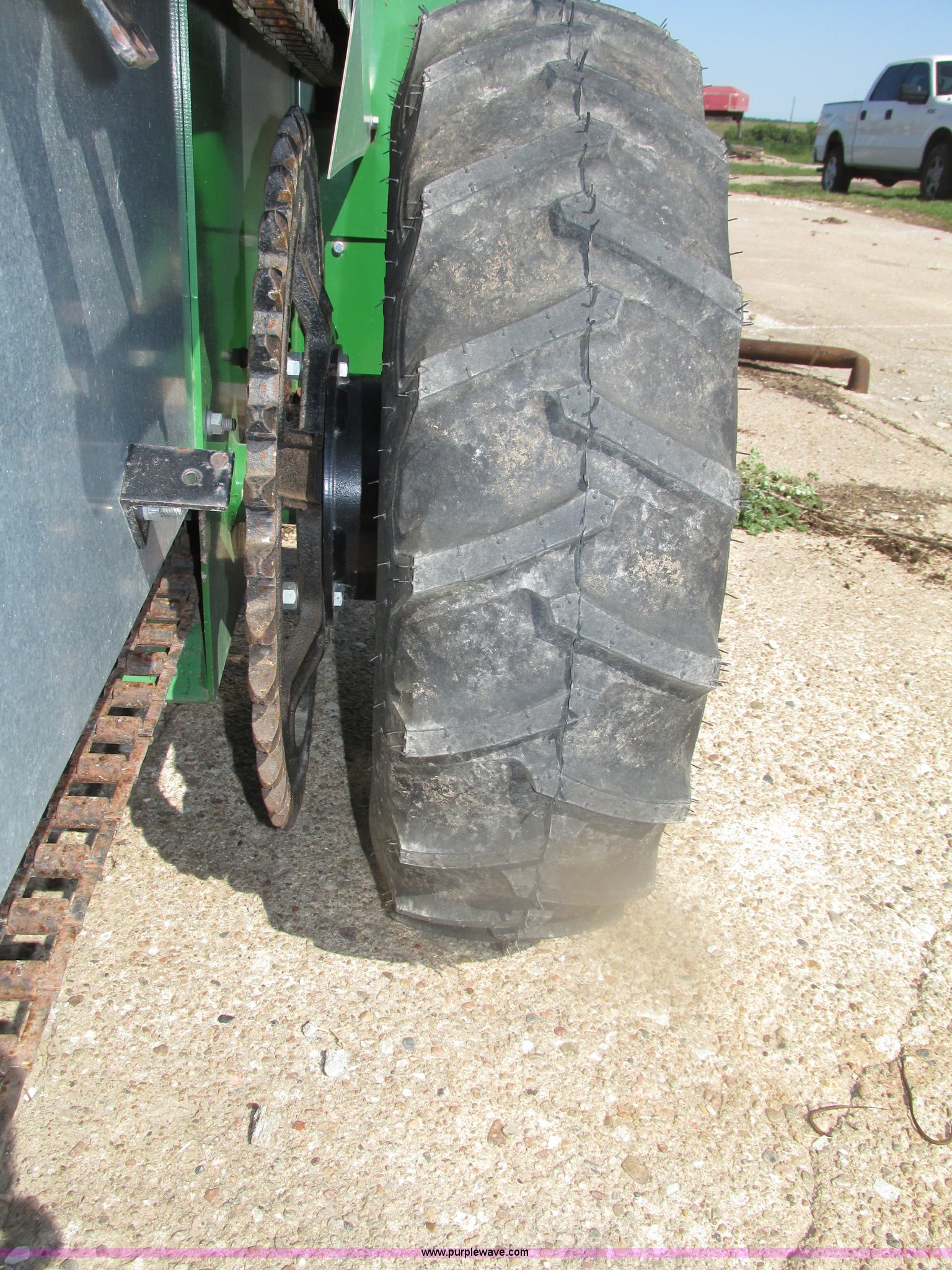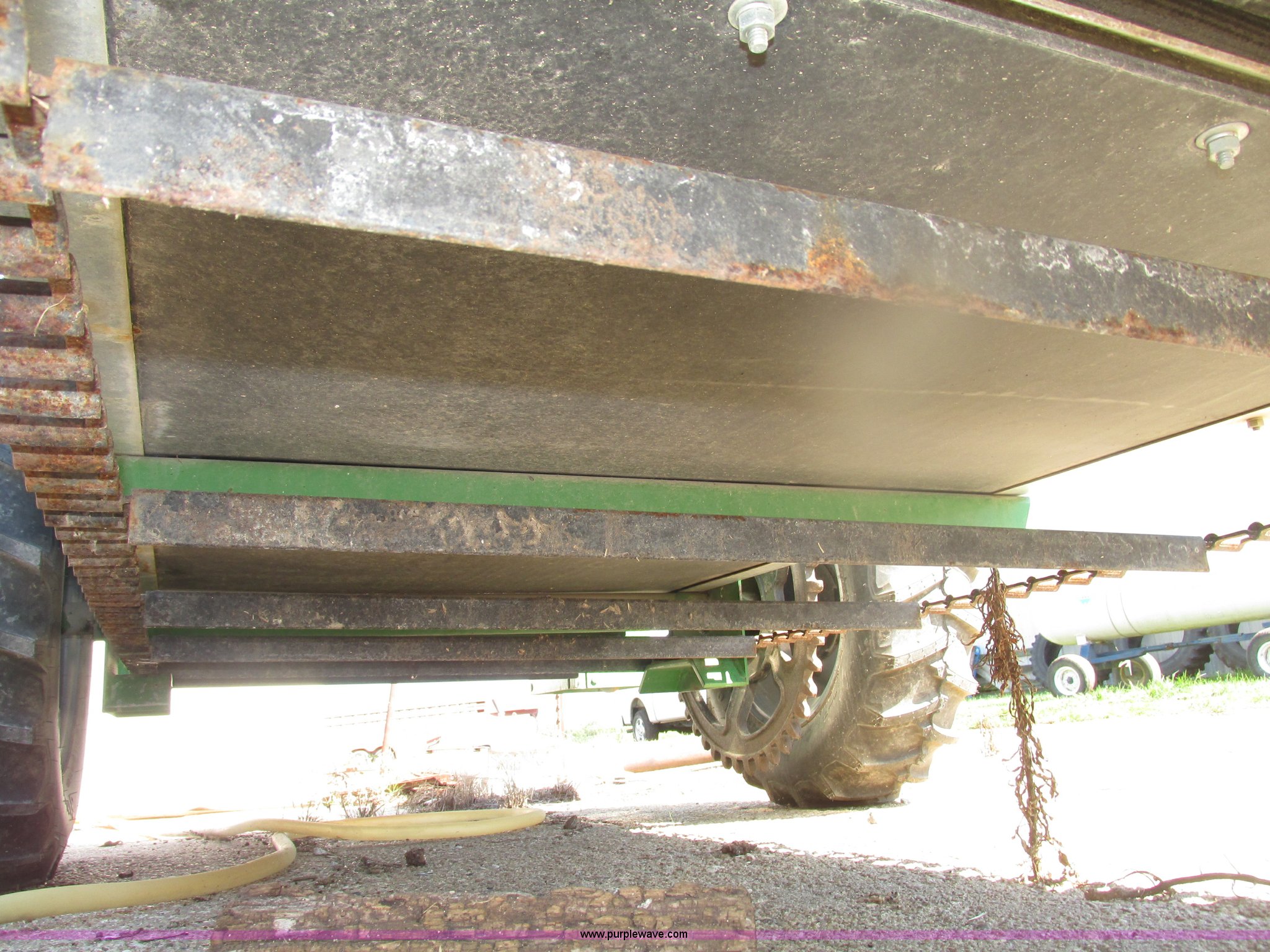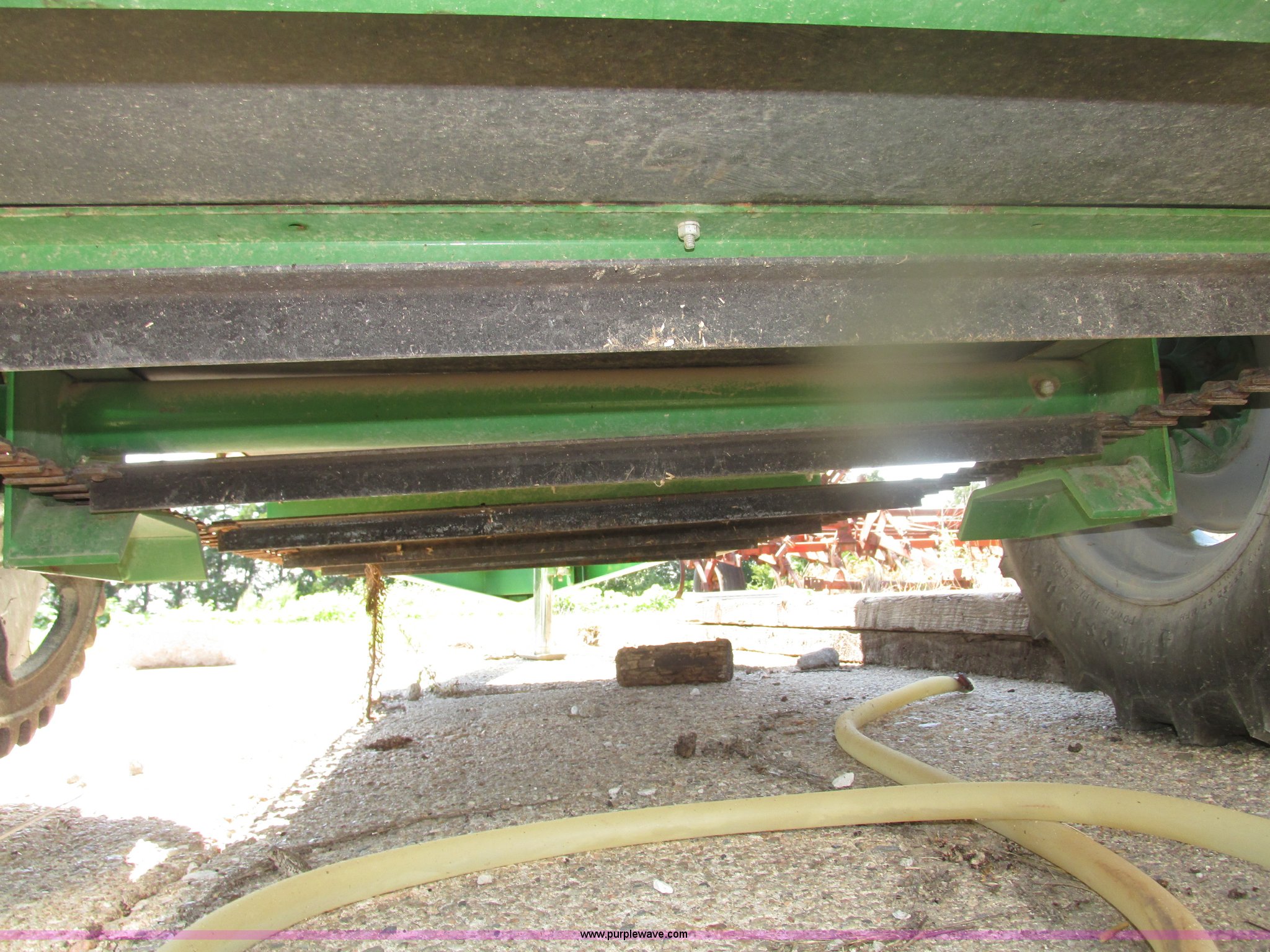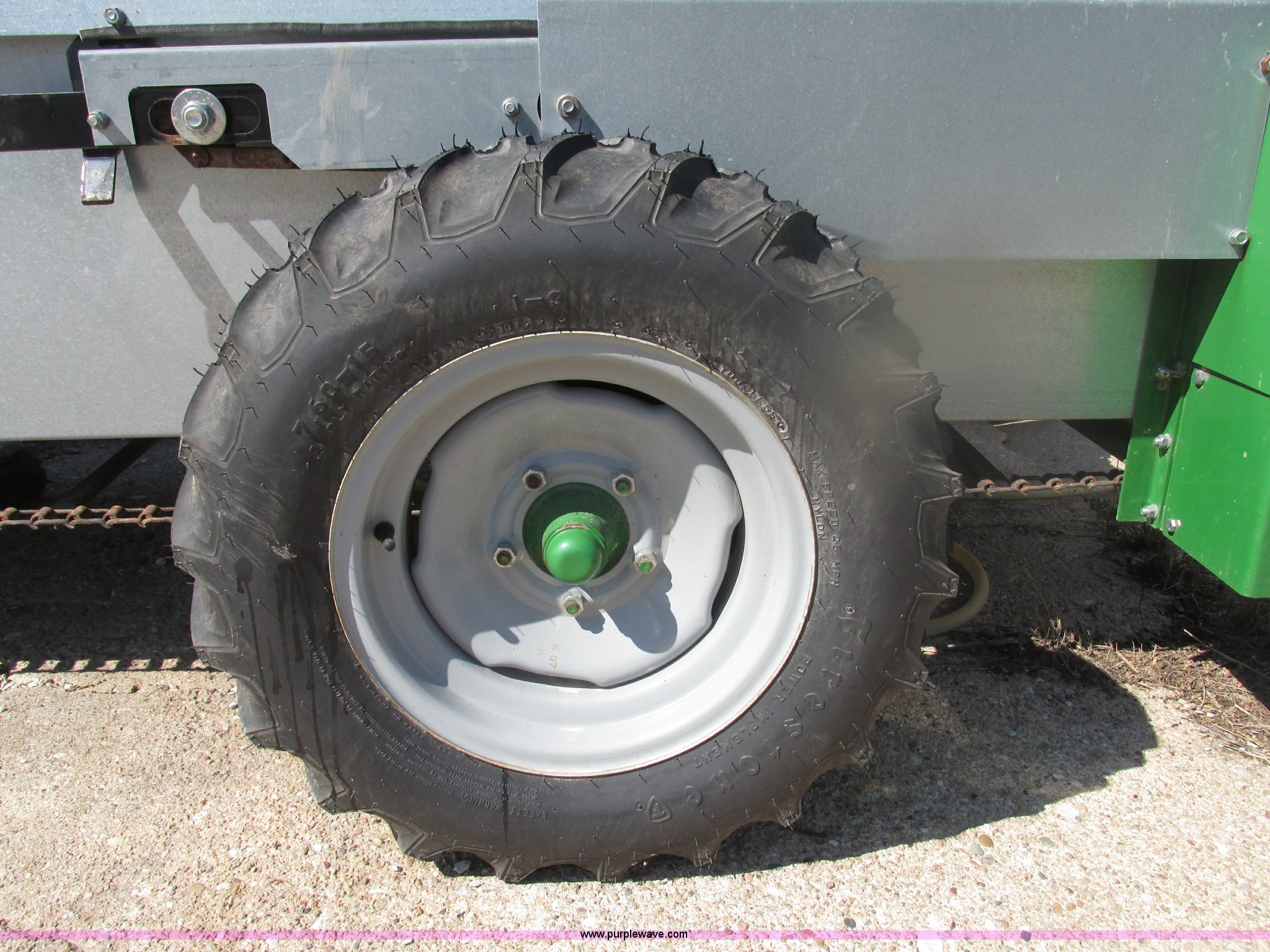 Purple Wave is selling a used Manure Spreader in Nebraska. This item is a 2013 Frontier MS1105 manure spreader with the following: 78"L x 36"W floor, 90"L front wall to front of beaters, 75 bushel capacity, Pin hitch, Eight section beater bar, Apron floor chain, Bulldog jack, 2,000 lbs capacity, Firestone 7.60-15 tires, Owner's manual, Serial HCM511056800845